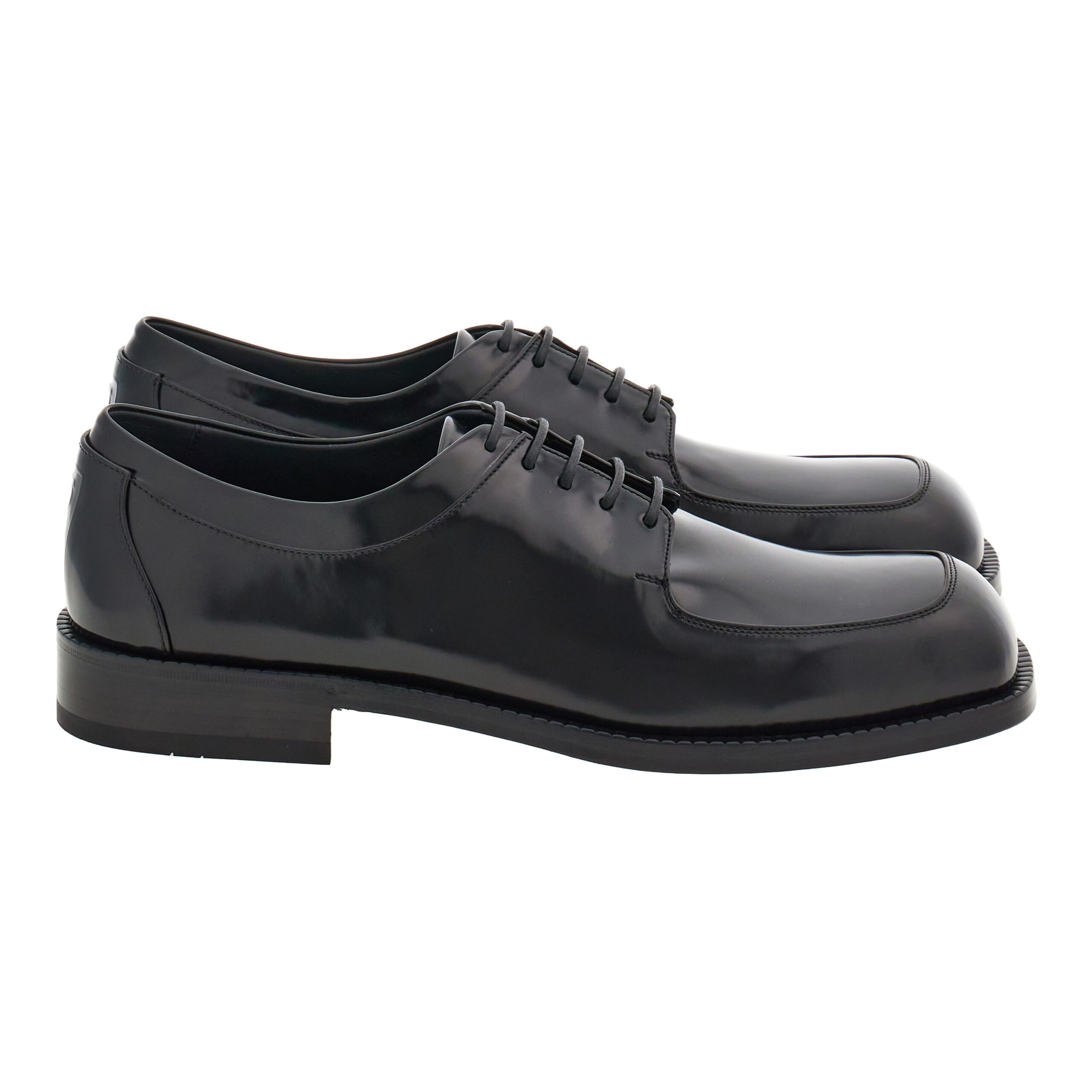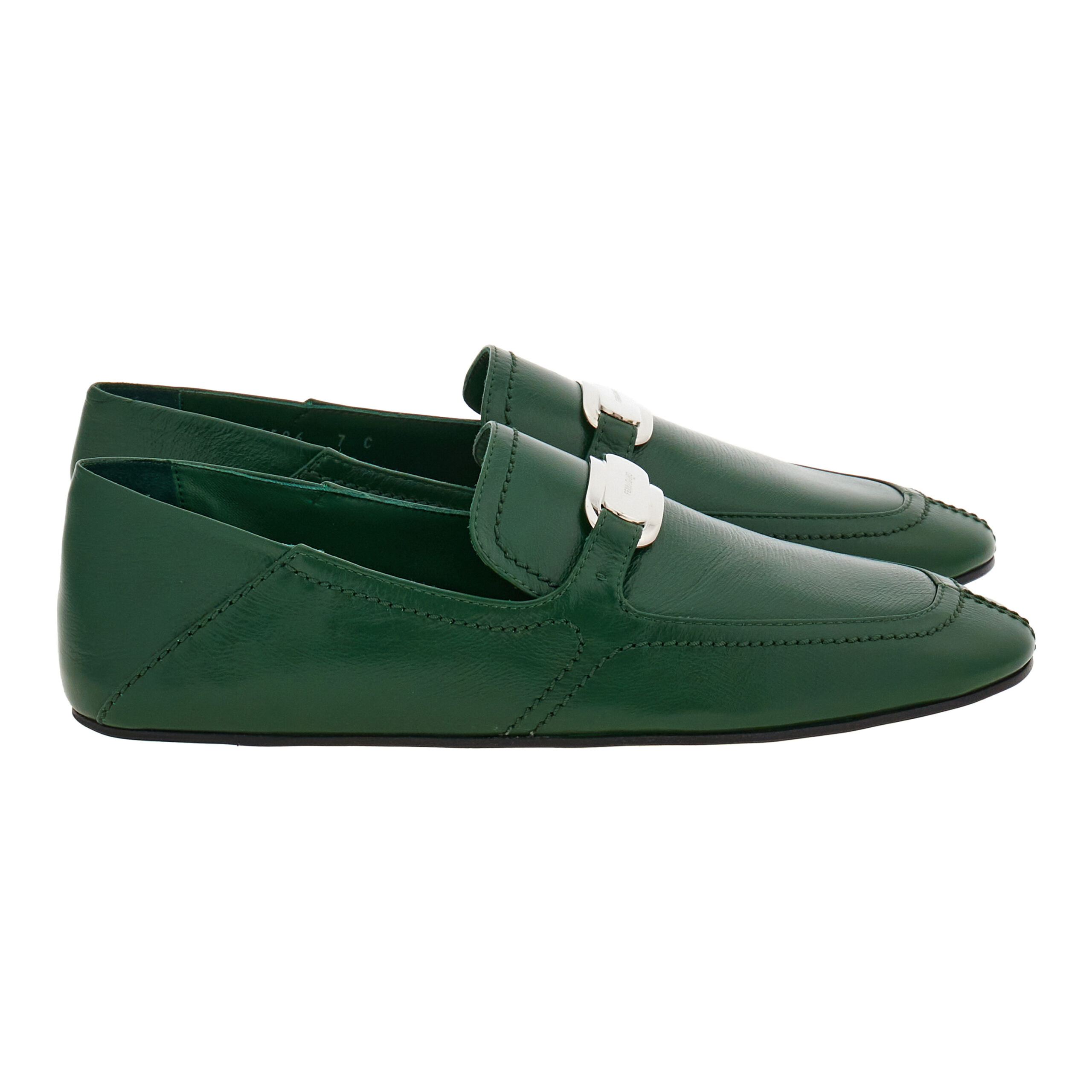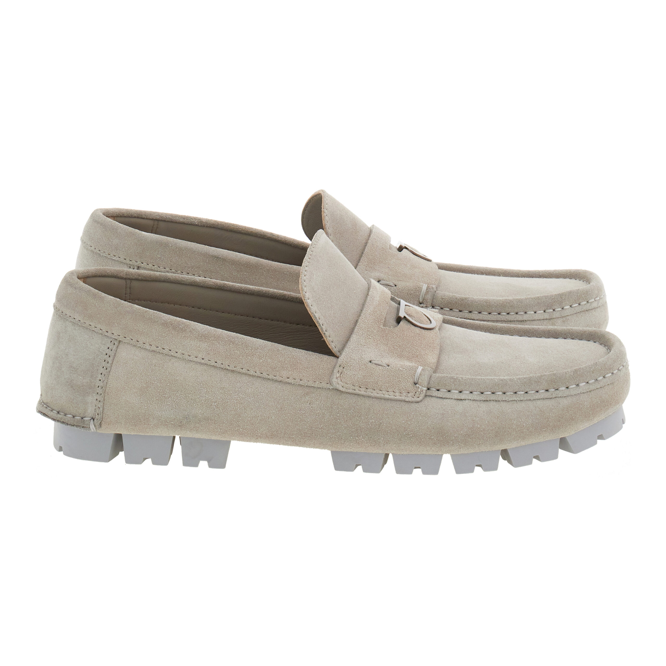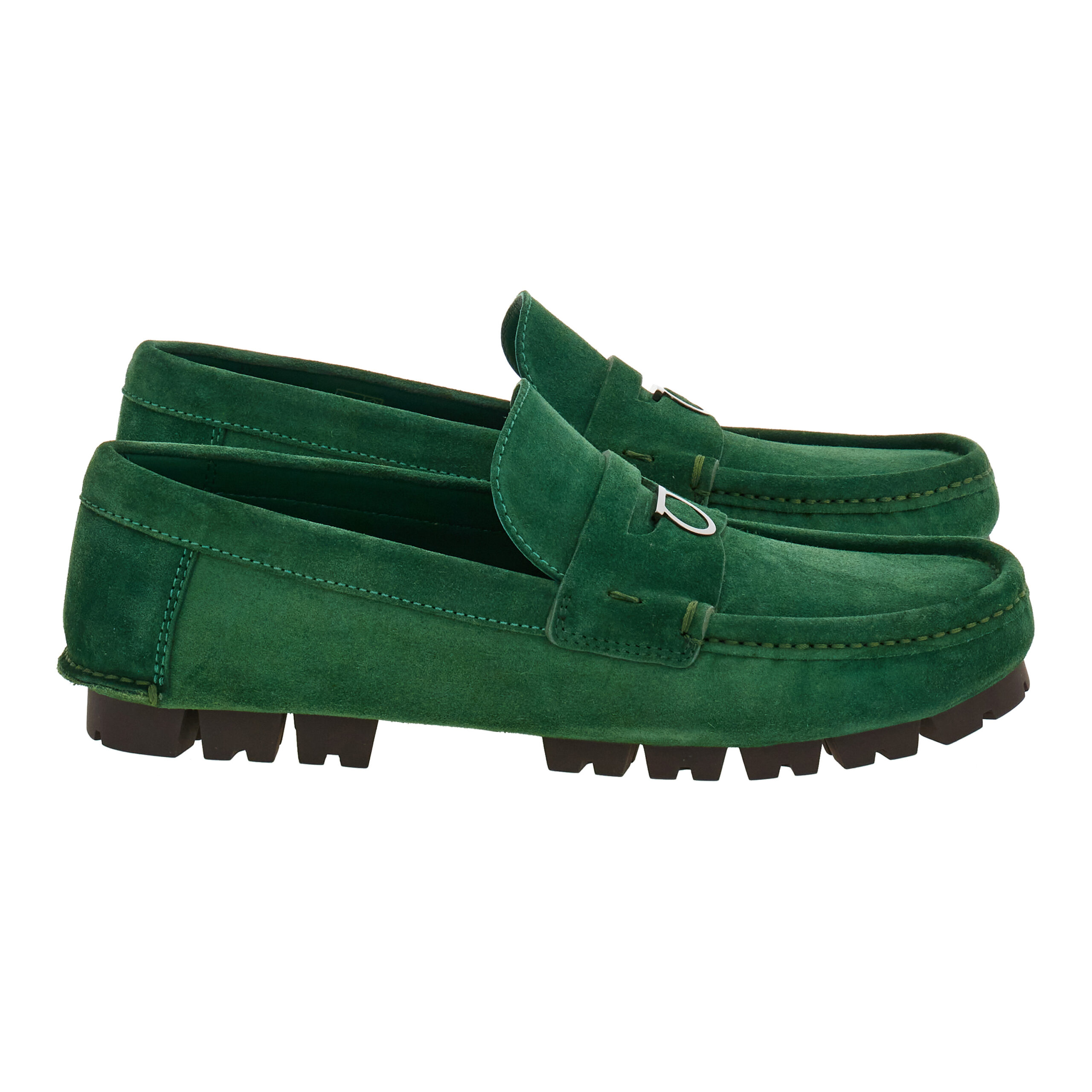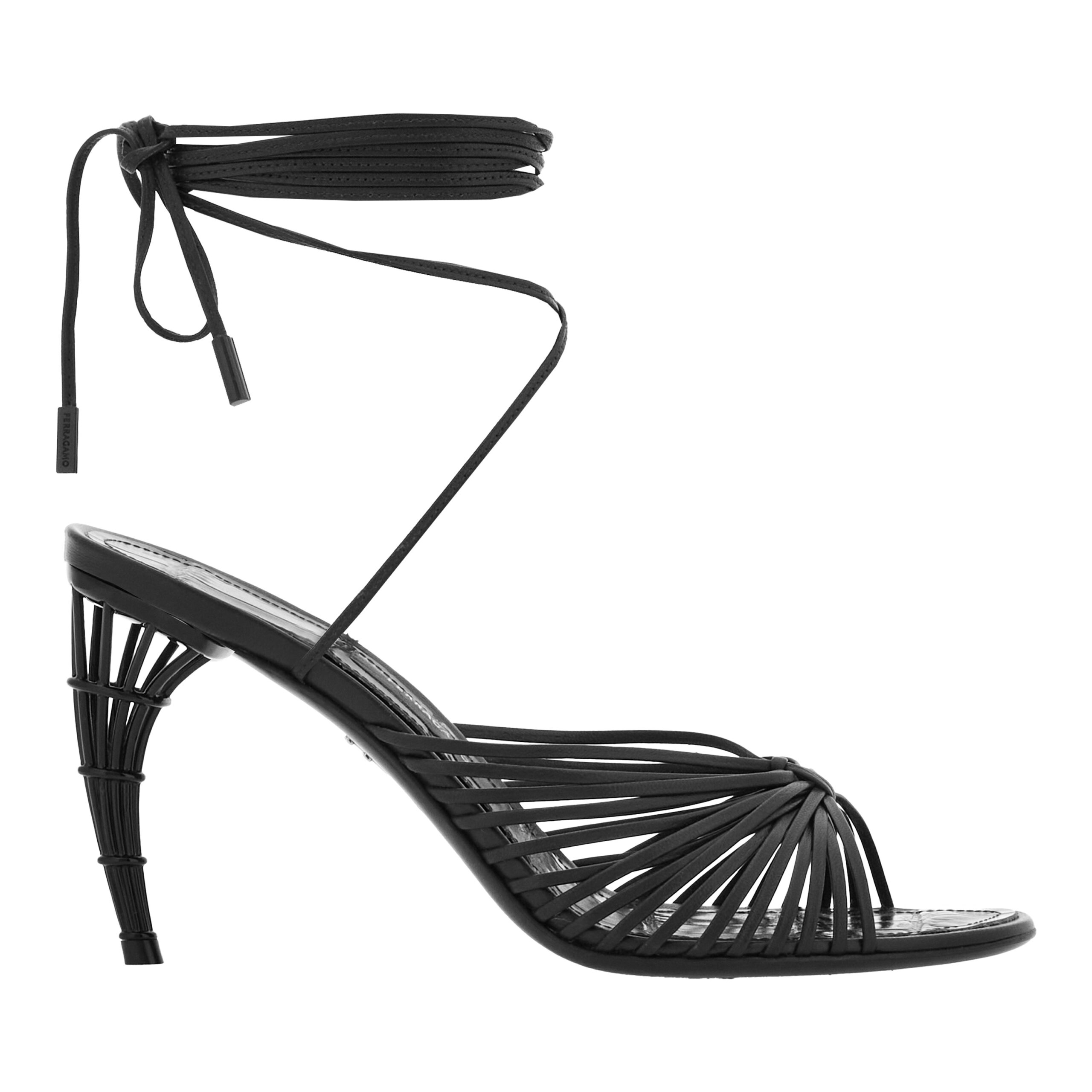 Dans les chaussures, l’approche de Davis se marie avec l’artisanat de Ferragamo : des chaussures en nappa latex et des bottes en cuir de gaucho reflètent ses inclinations esthétiques. Le talon « Calypso » de 1955 est réinterprété avec une impression 3D et une finition galvanisée. Pour les hommes, les classiques sont revisités avec une touche contemporaine.