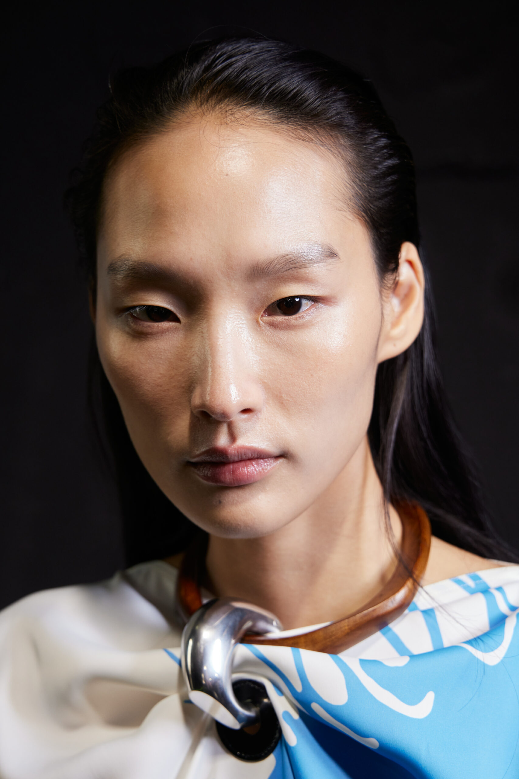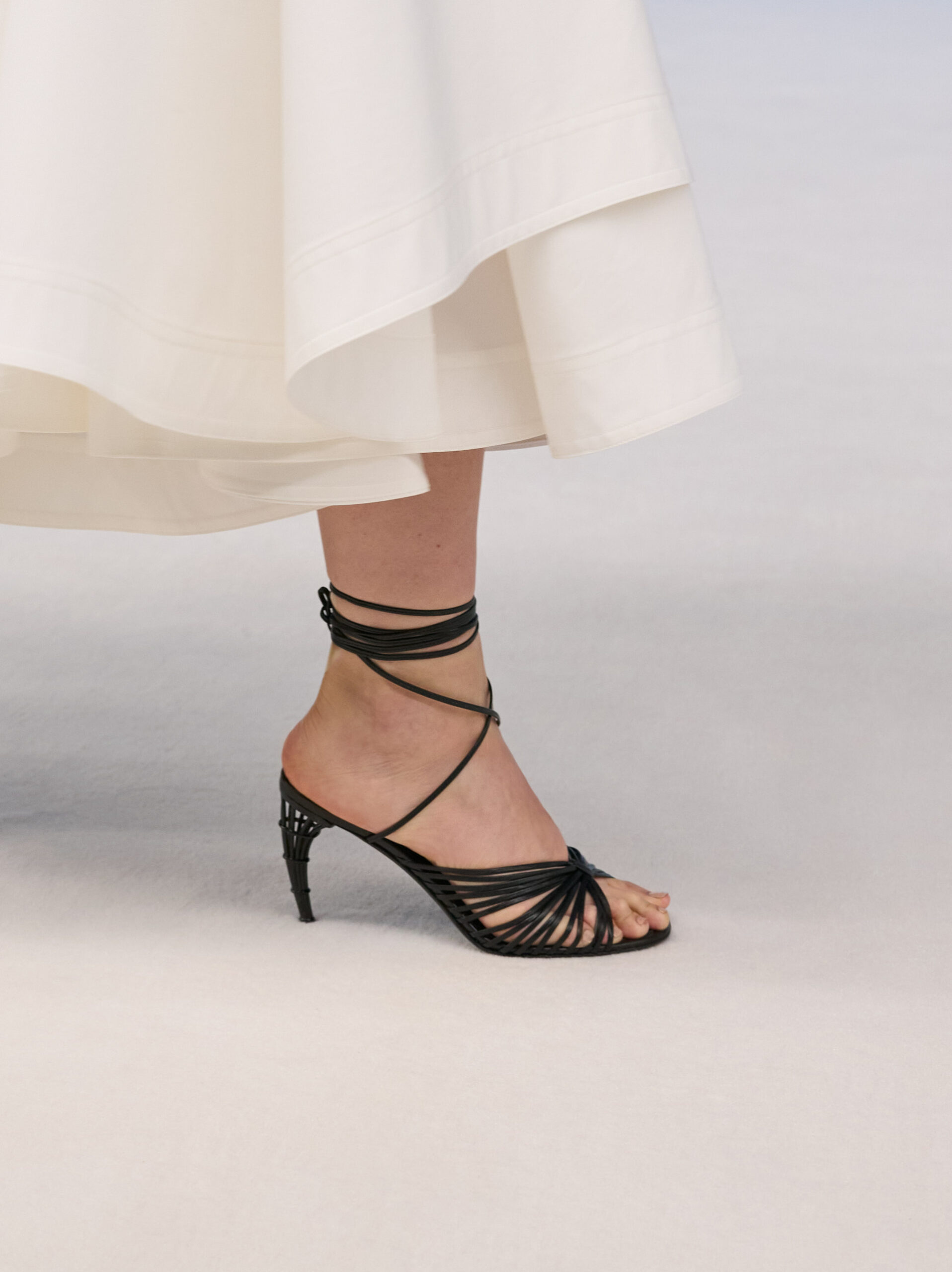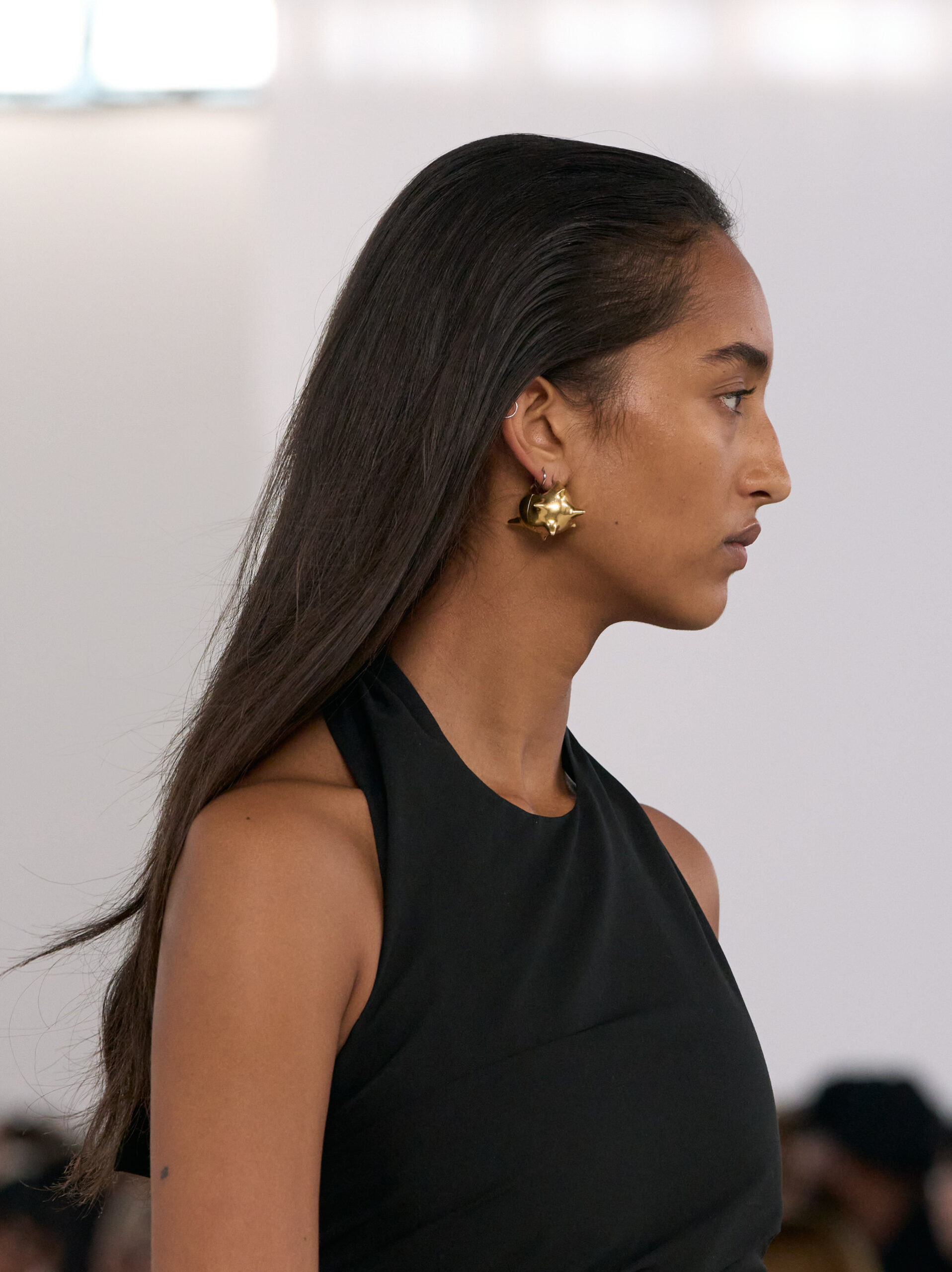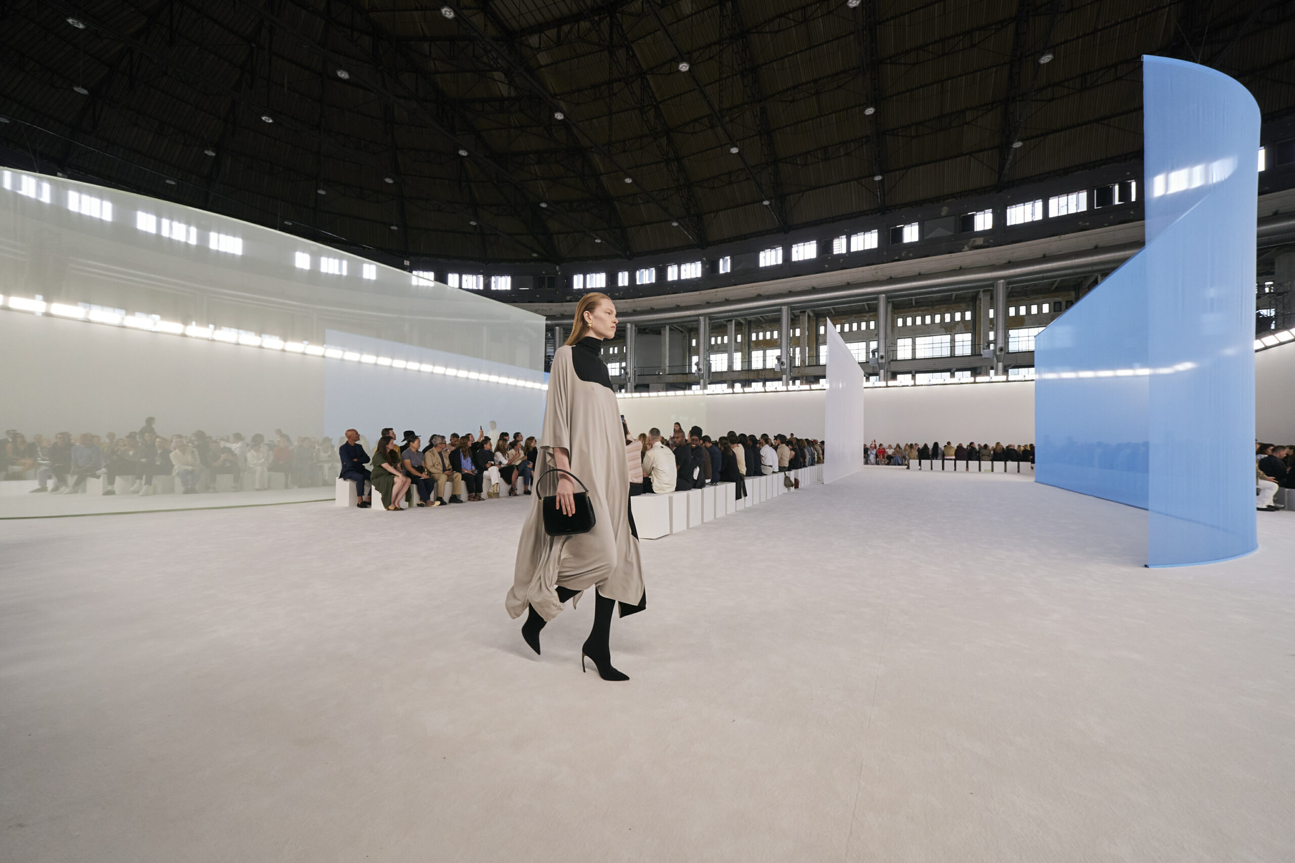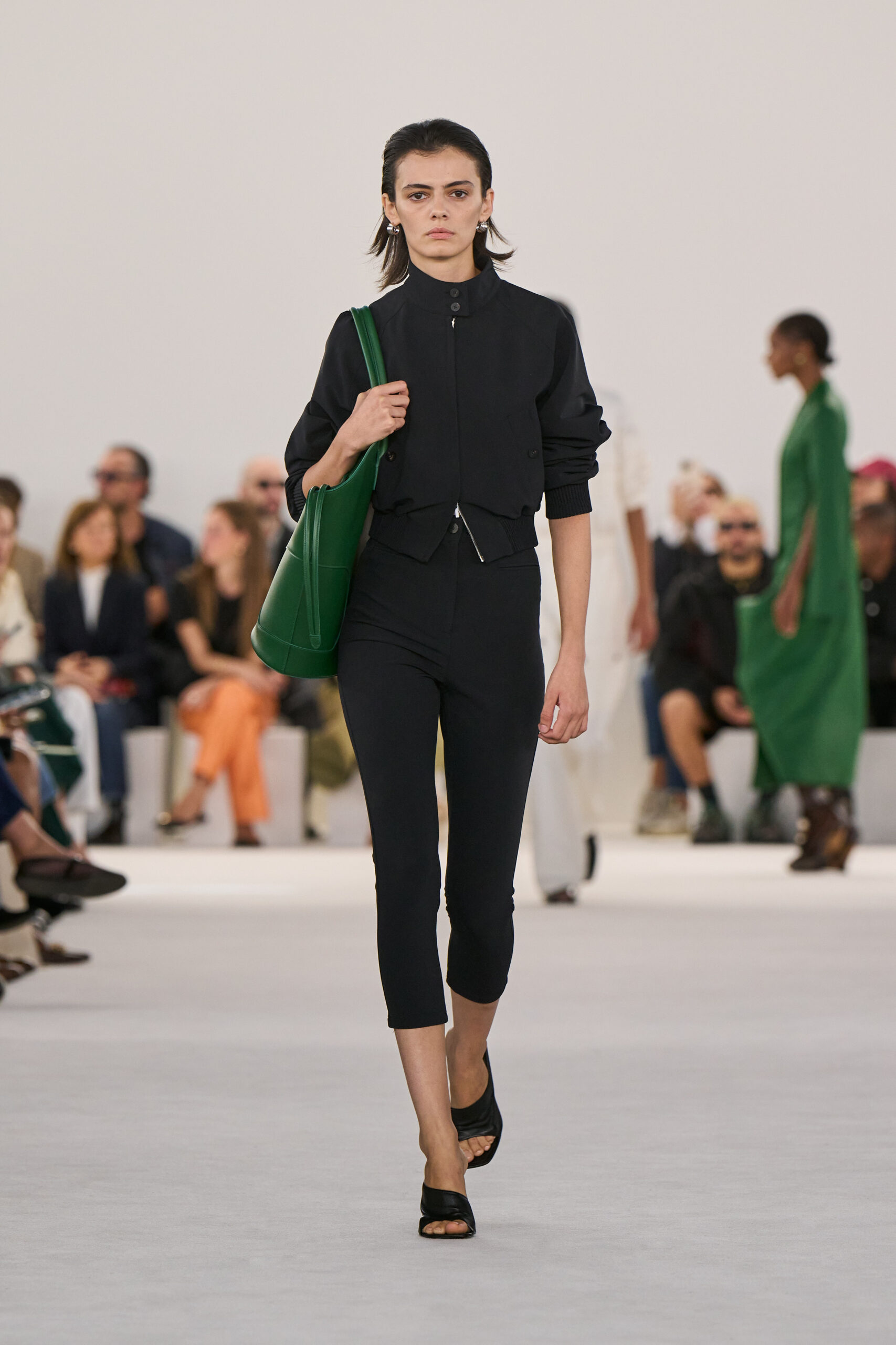La collection joue sur un équilibre entre retenue et liberté : une insouciance décontractée se manifeste dans la texture usée du cuir, tandis que la taille de haute couture du milieu du siècle est transformée en fluidité. Les drapés en jersey de viscose, ancrés dans l’héritage florentin de Ferragamo et évoquant la robe caribéenne du 18ème siècle, sont maintenant associés à l’esthétique de l’armure de la Renaissance.