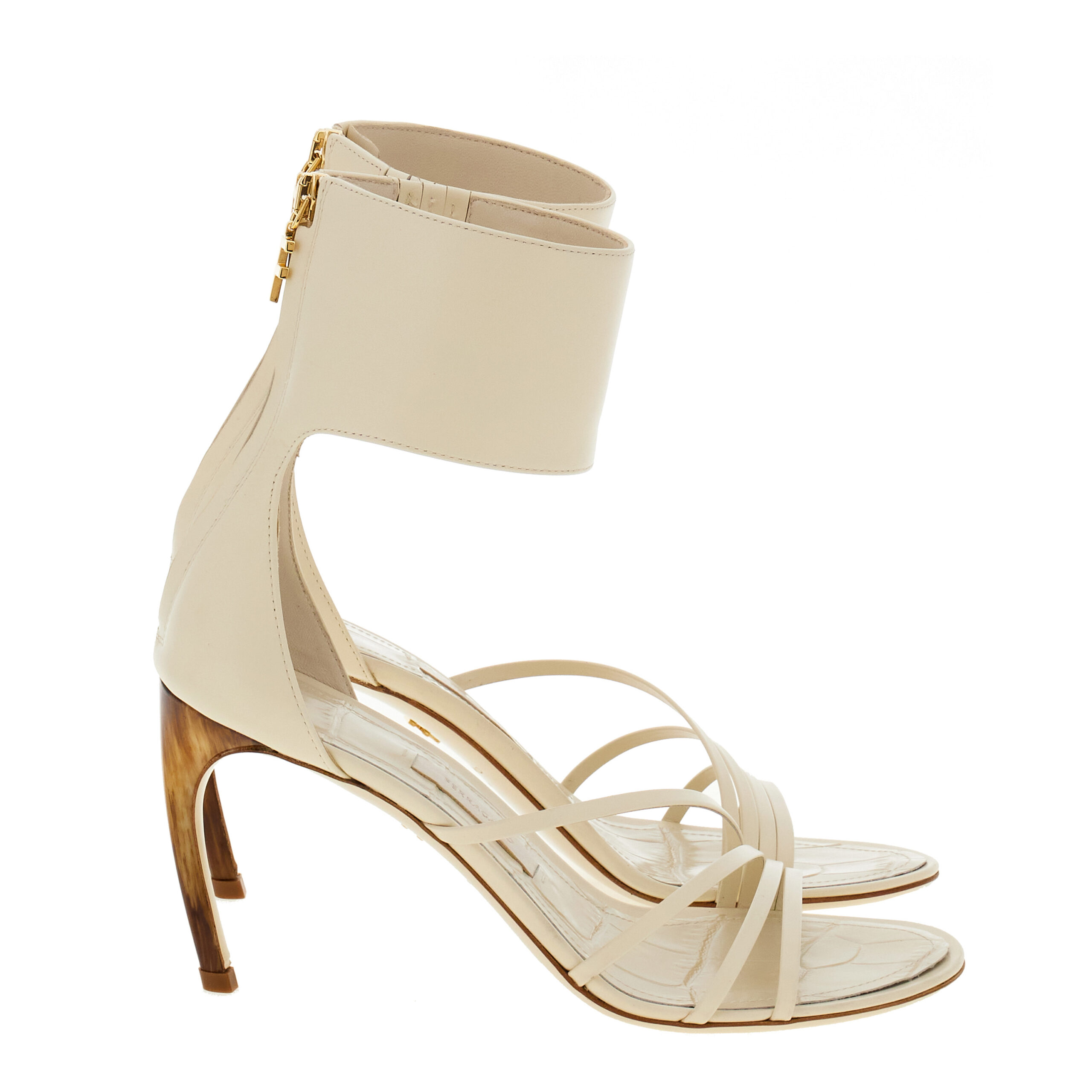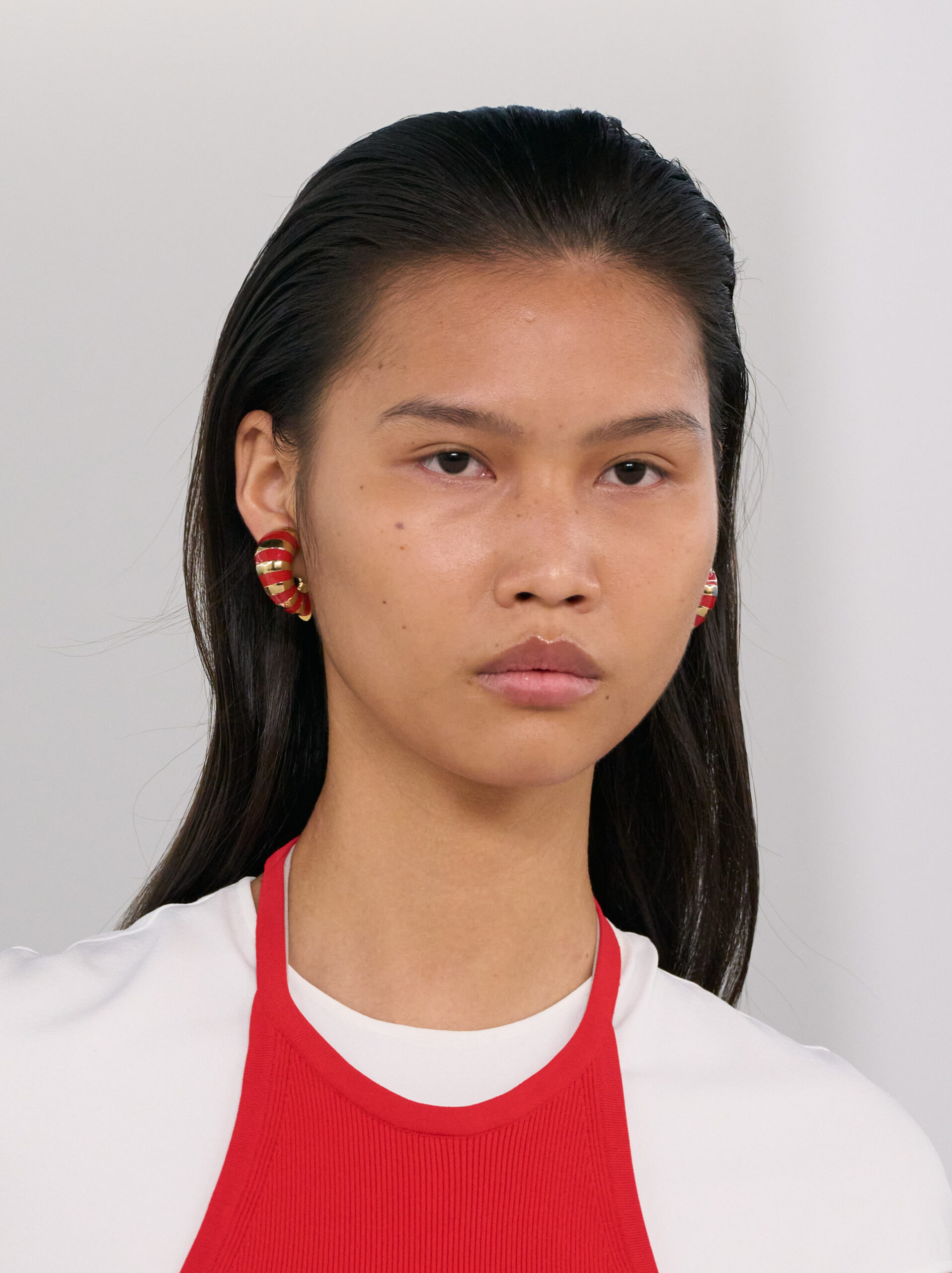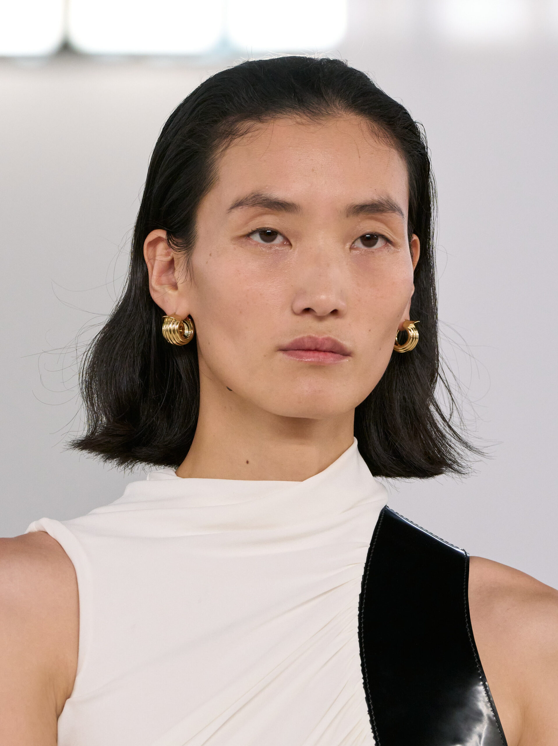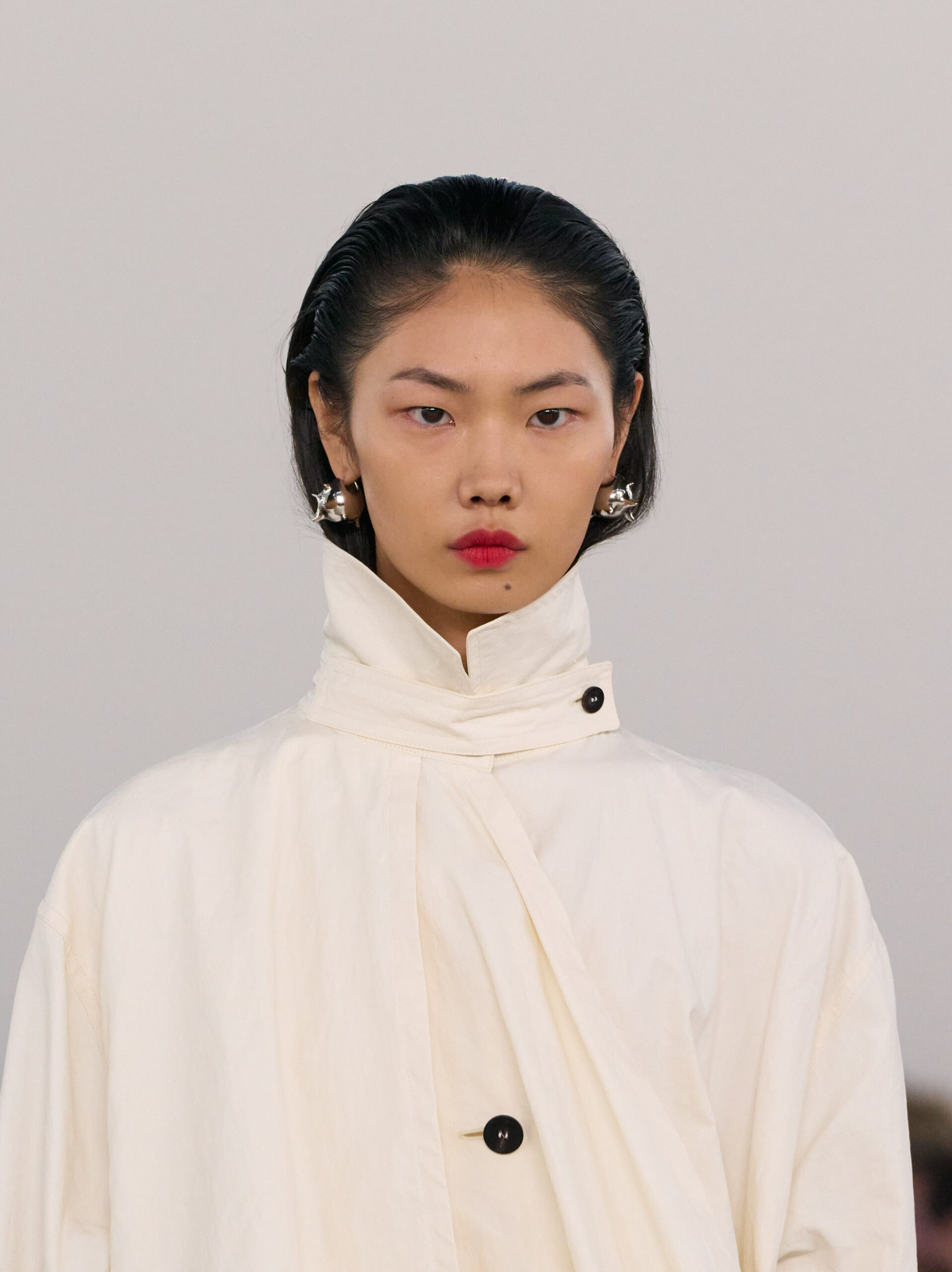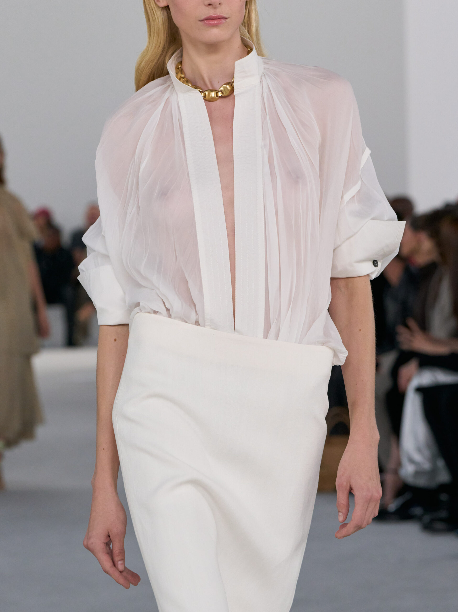 La collection joue sur un équilibre entre retenue et liberté : une insouciance décontractée se manifeste dans la texture usée du cuir, tandis que la taille de haute couture du milieu du siècle est transformée en fluidité. Les drapés en jersey de viscose, ancrés dans l’héritage florentin de Ferragamo et évoquant la robe caribéenne du 18ème siècle, sont maintenant associés à l’esthétique de l’armure de la Renaissance.