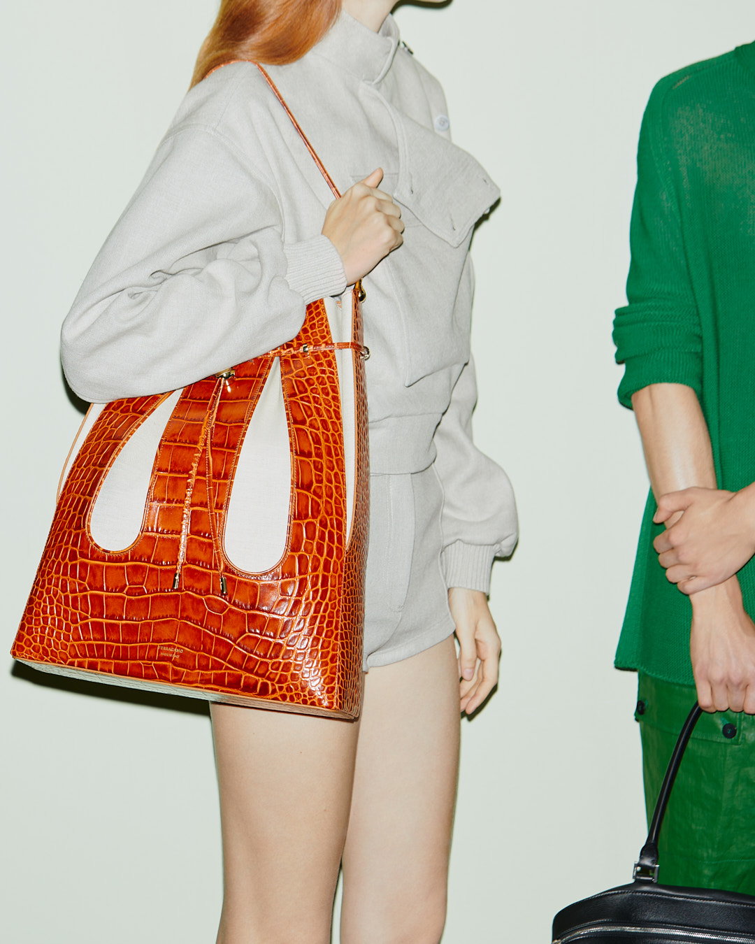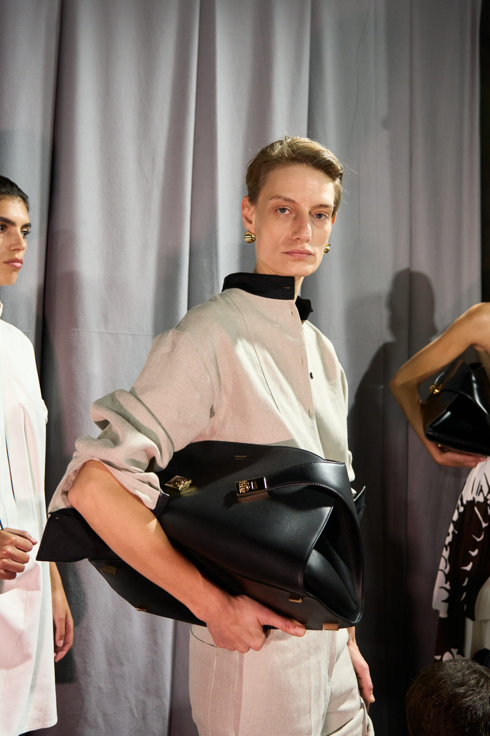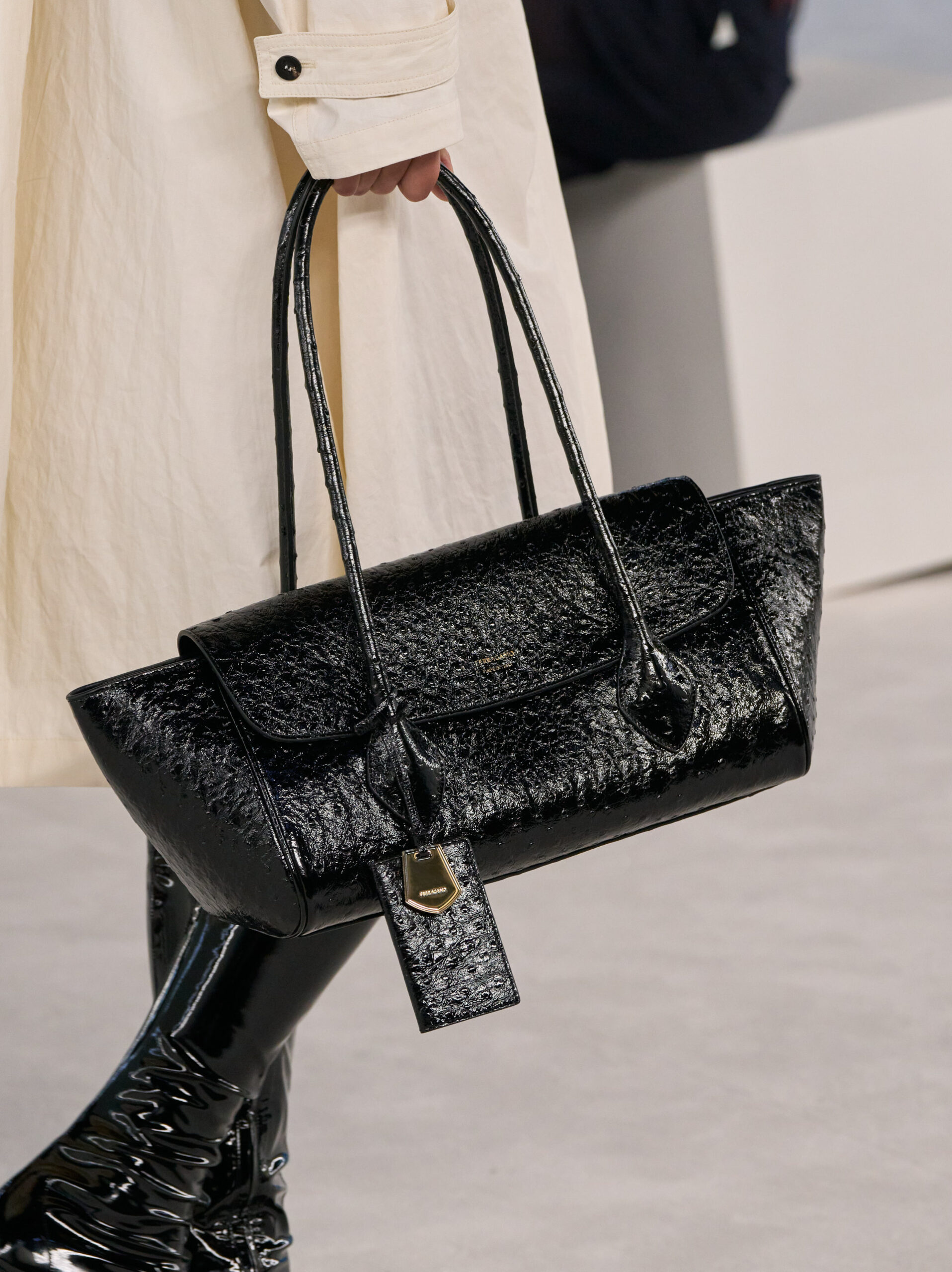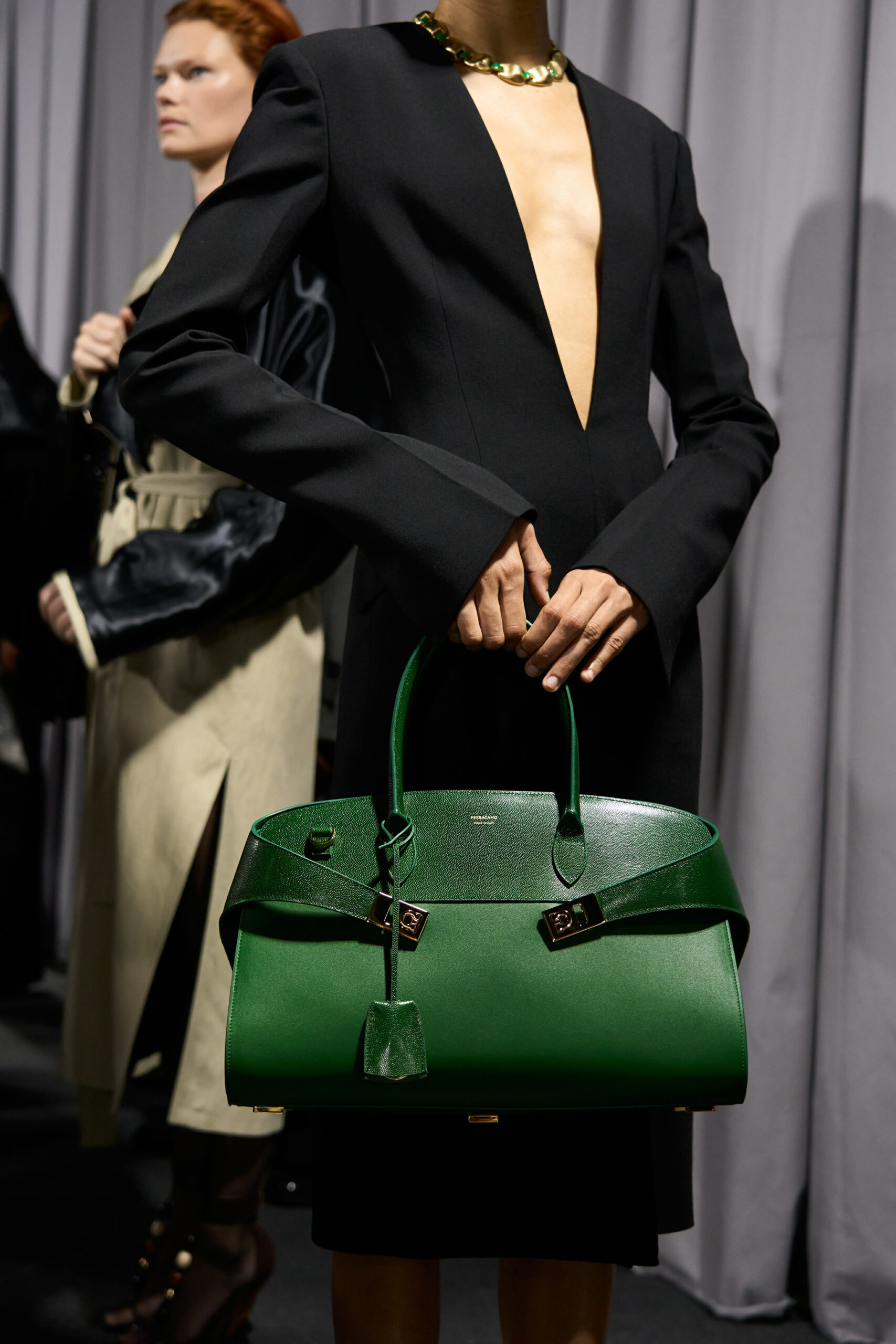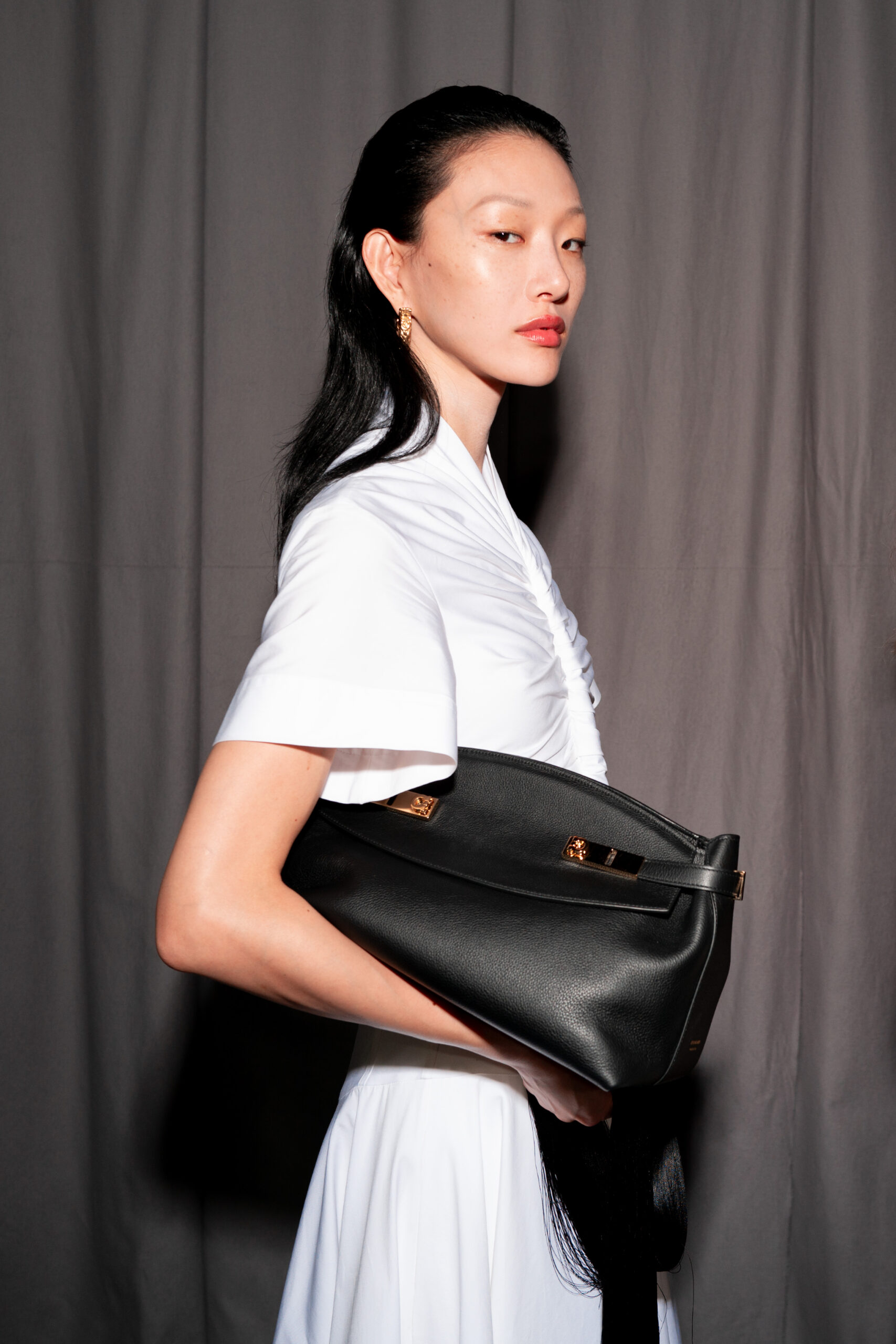 Les sacs à main poursuivent les lignes graphiques et les formes géométriques des collections précédentes : le classique contemporain « Hug » apparaît en version brillante et en cuir, tandis que le sac « Fiamma » joue sur les asymétries. Pour les hommes, le sac « Star » se distingue par sa construction minutieuse et son design épuré.
