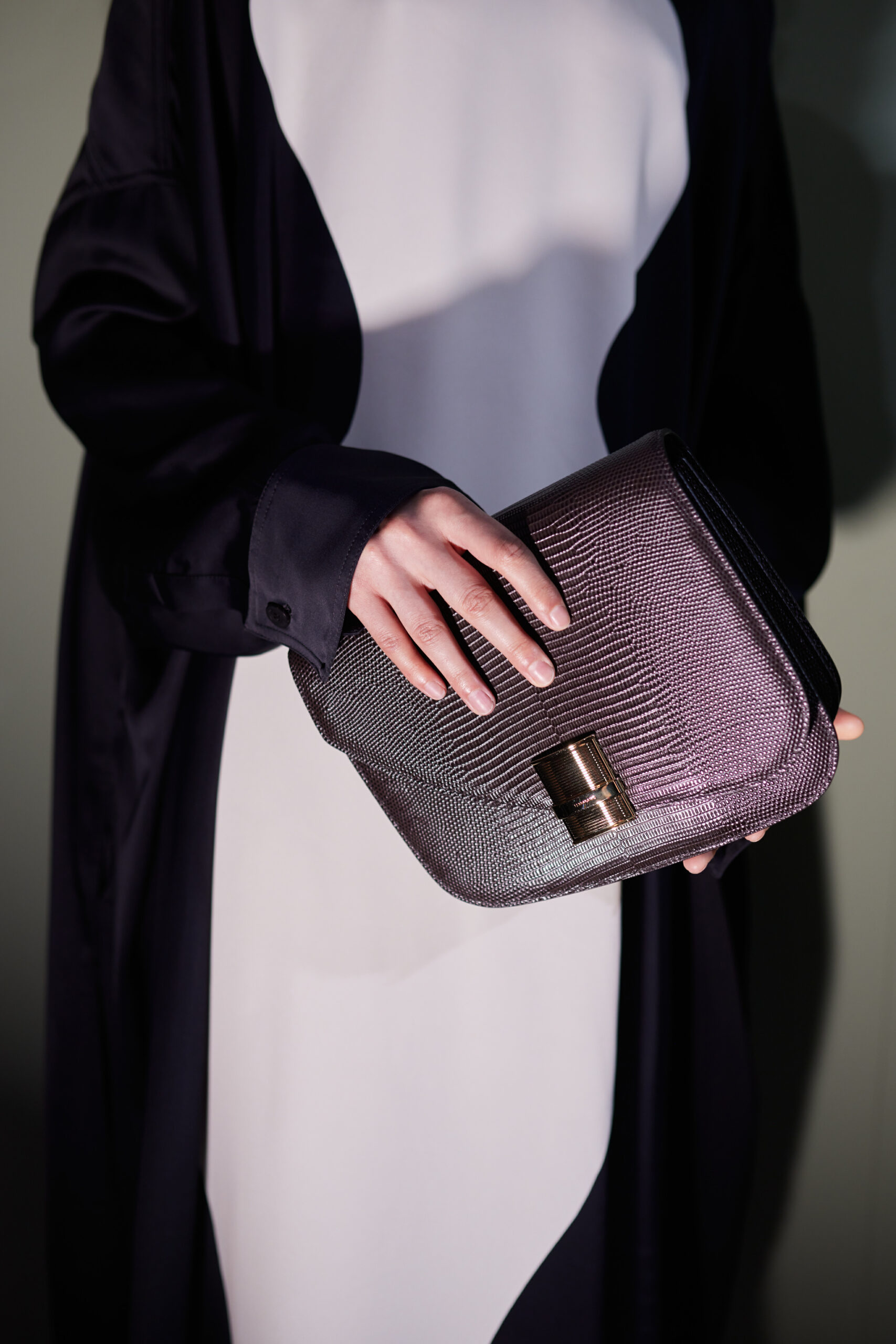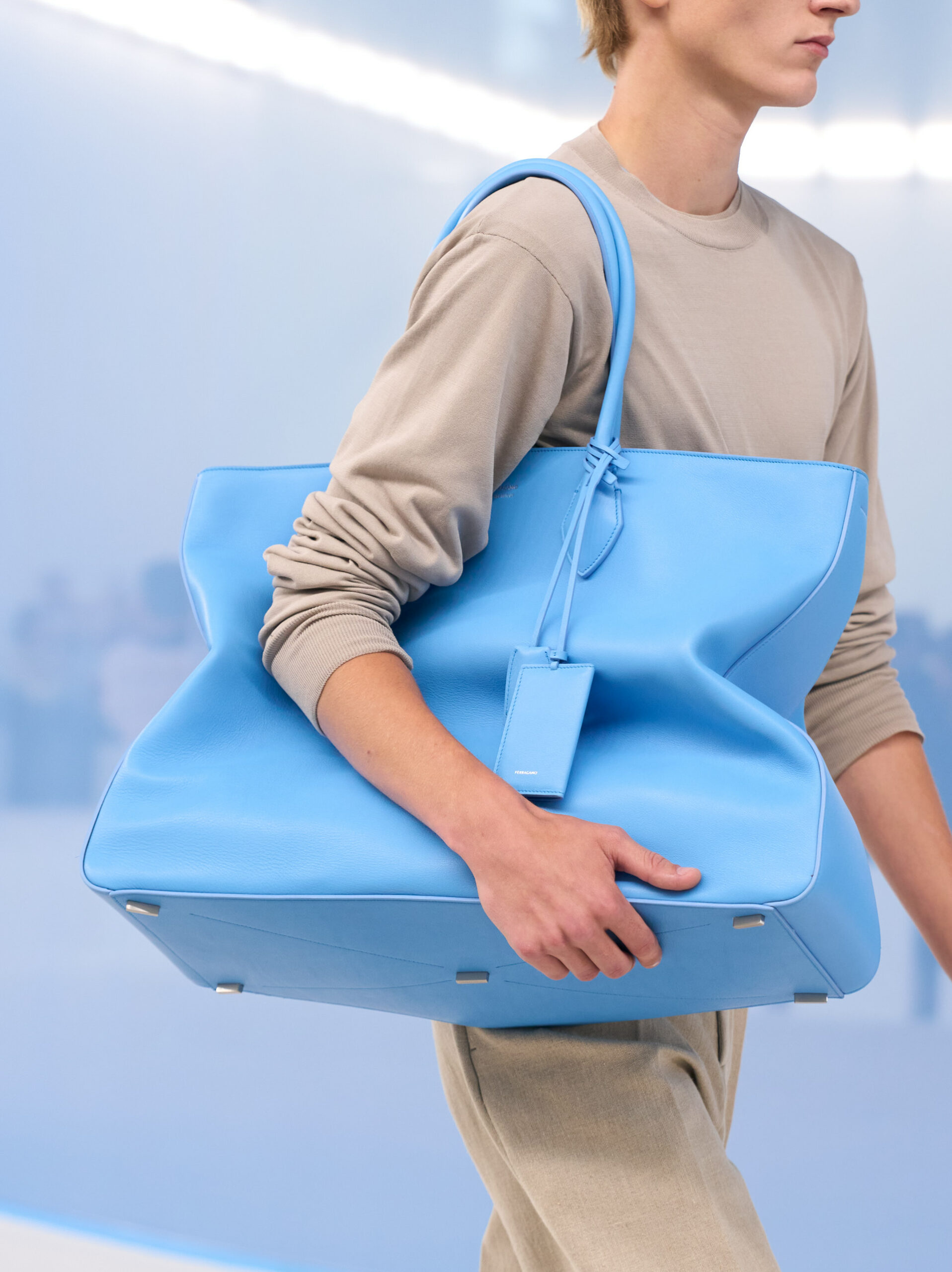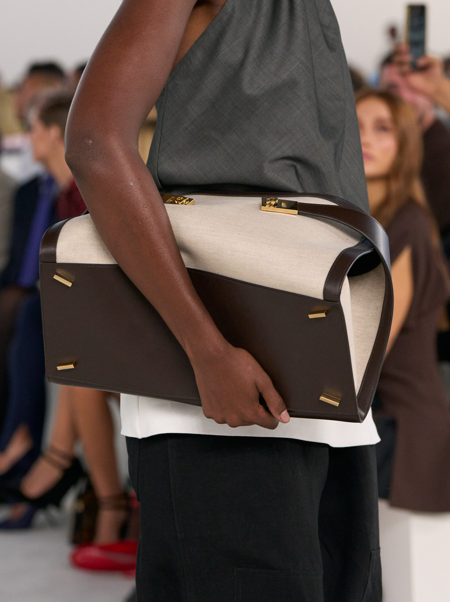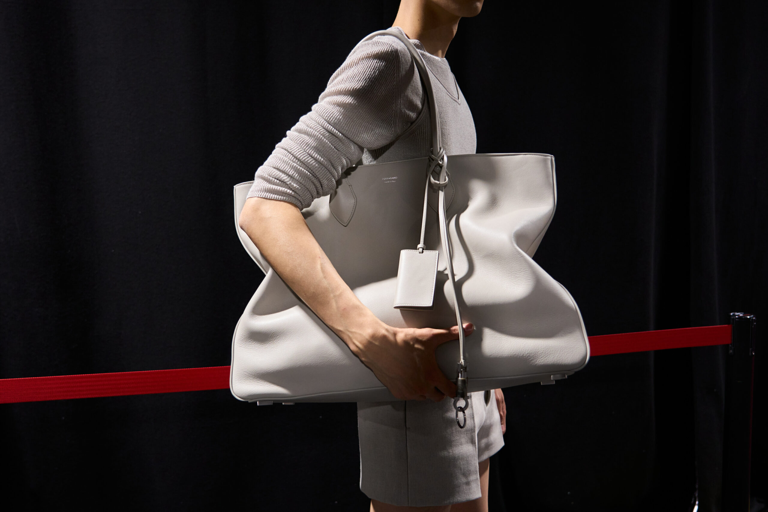 Les sacs à main poursuivent les lignes graphiques et les formes géométriques des collections précédentes : le classique contemporain « Hug » apparaît en version brillante et en cuir, tandis que le sac « Fiamma » joue sur les asymétries. Pour les hommes, le sac « Star » se distingue par sa construction minutieuse et son design épuré.