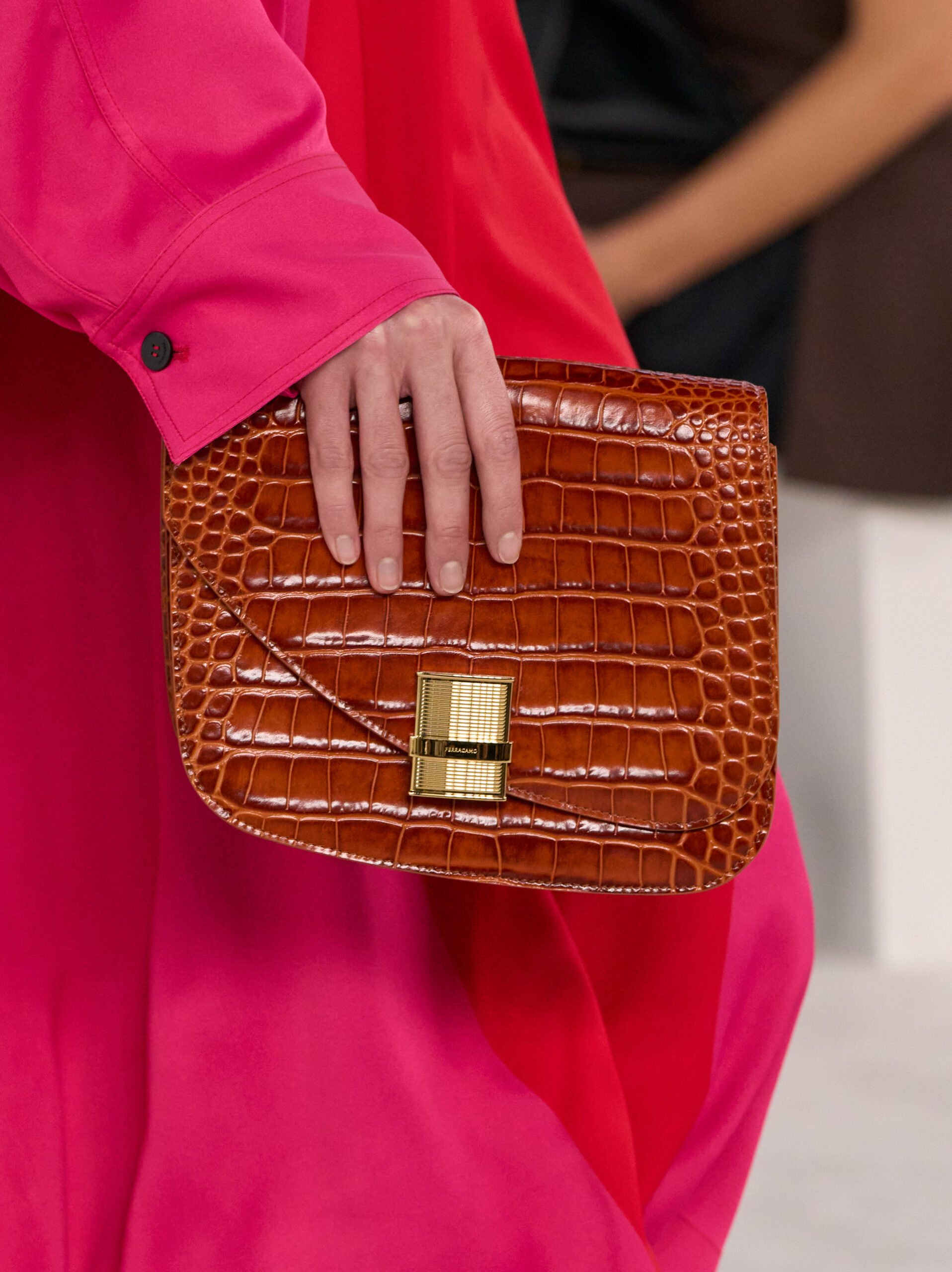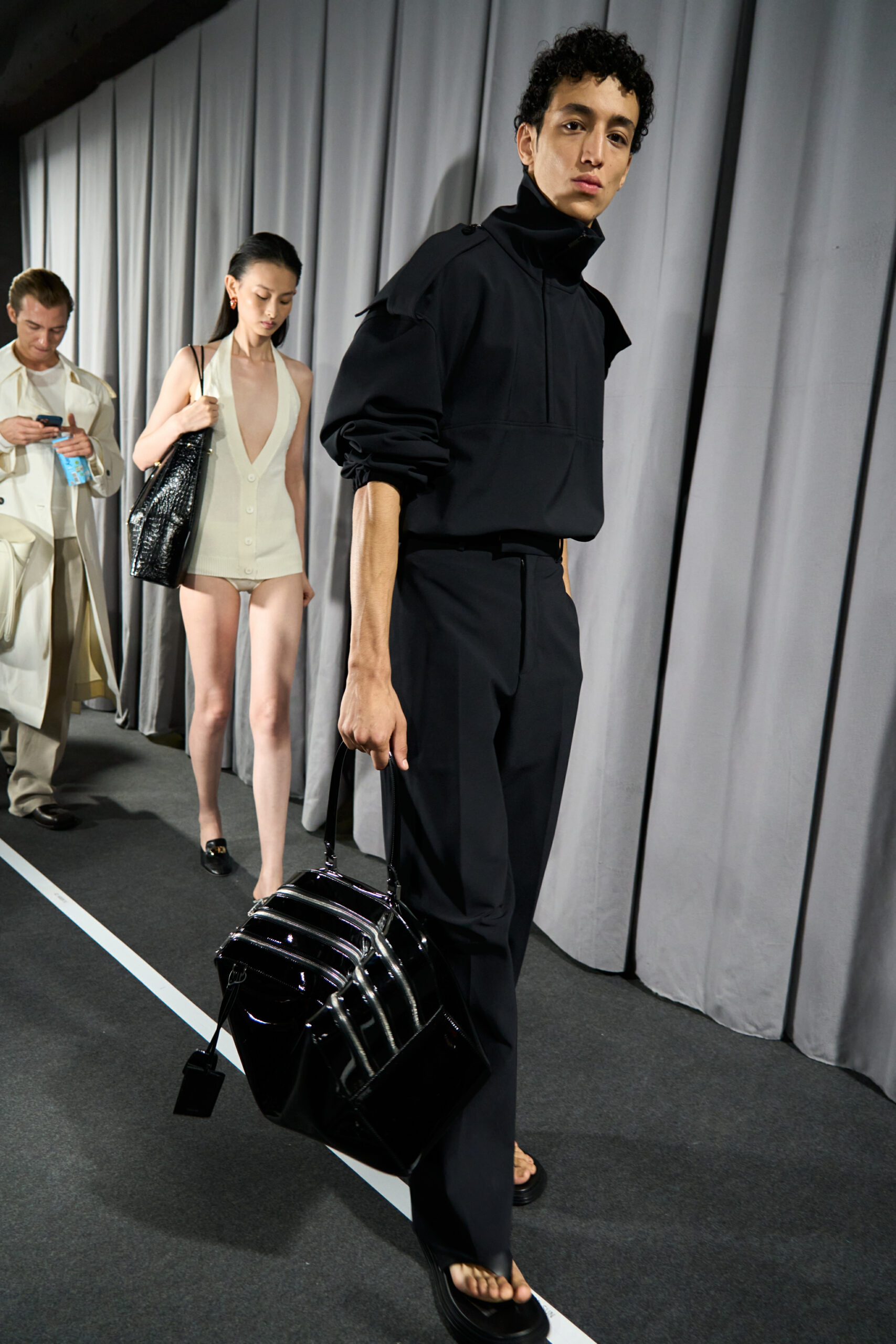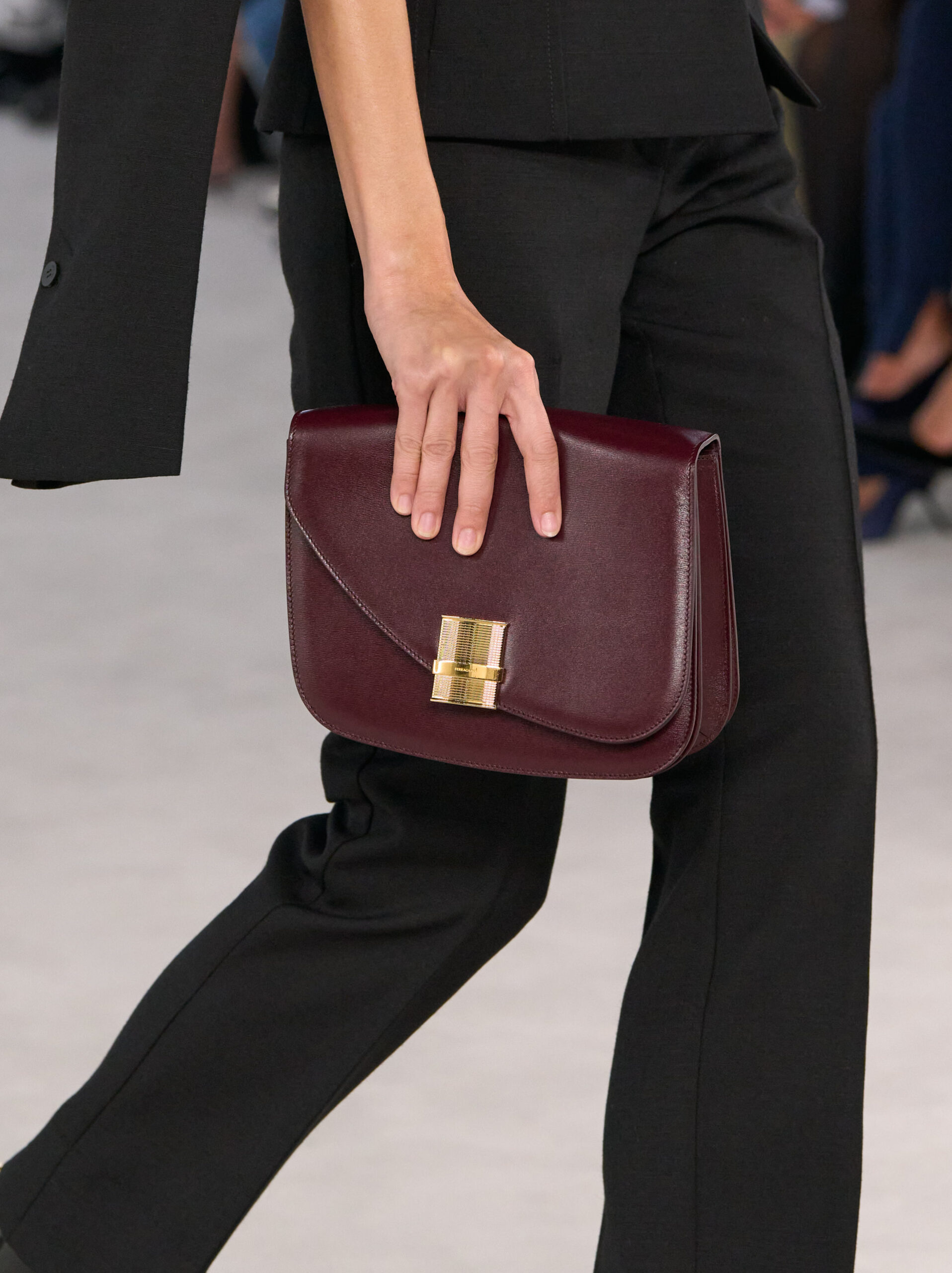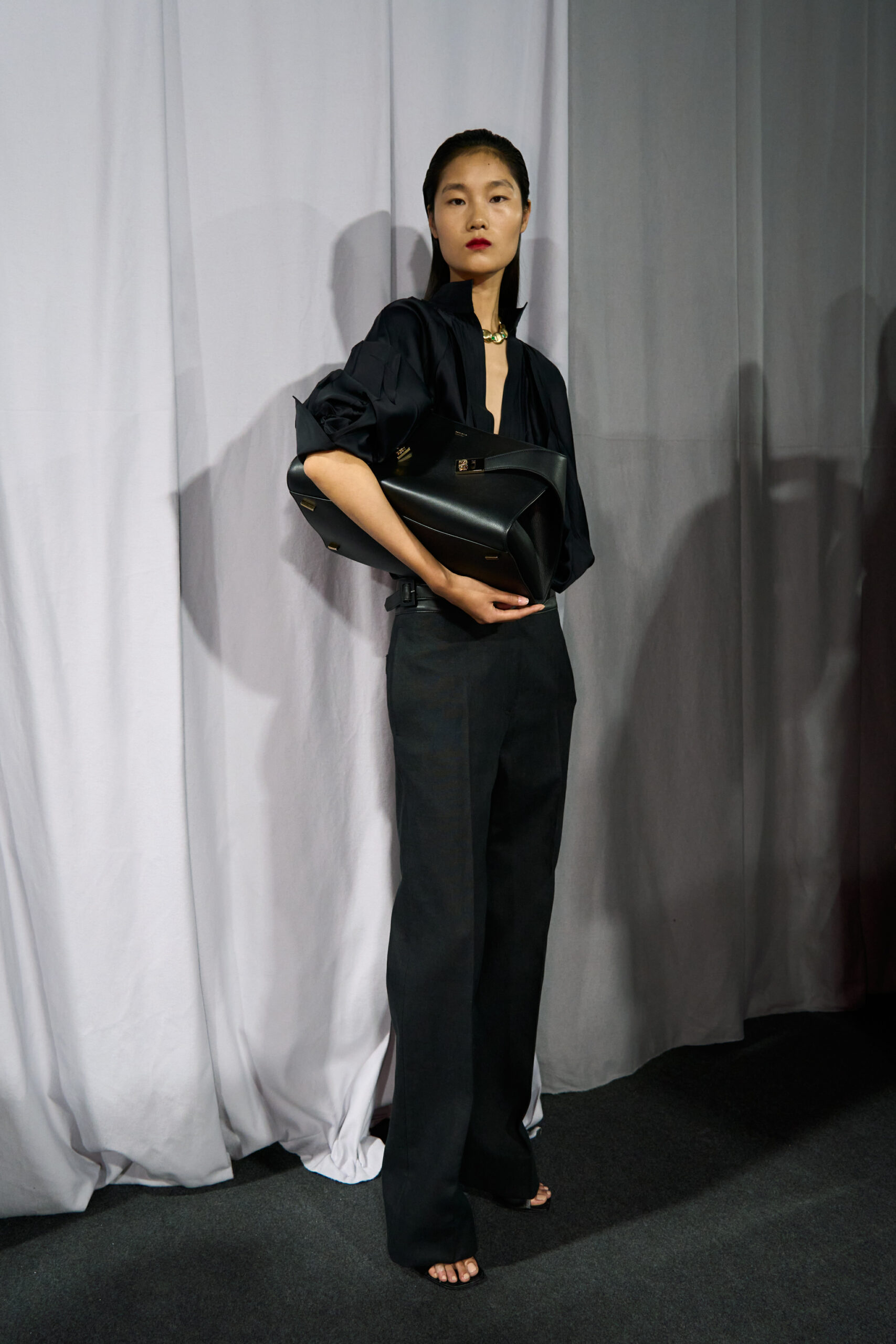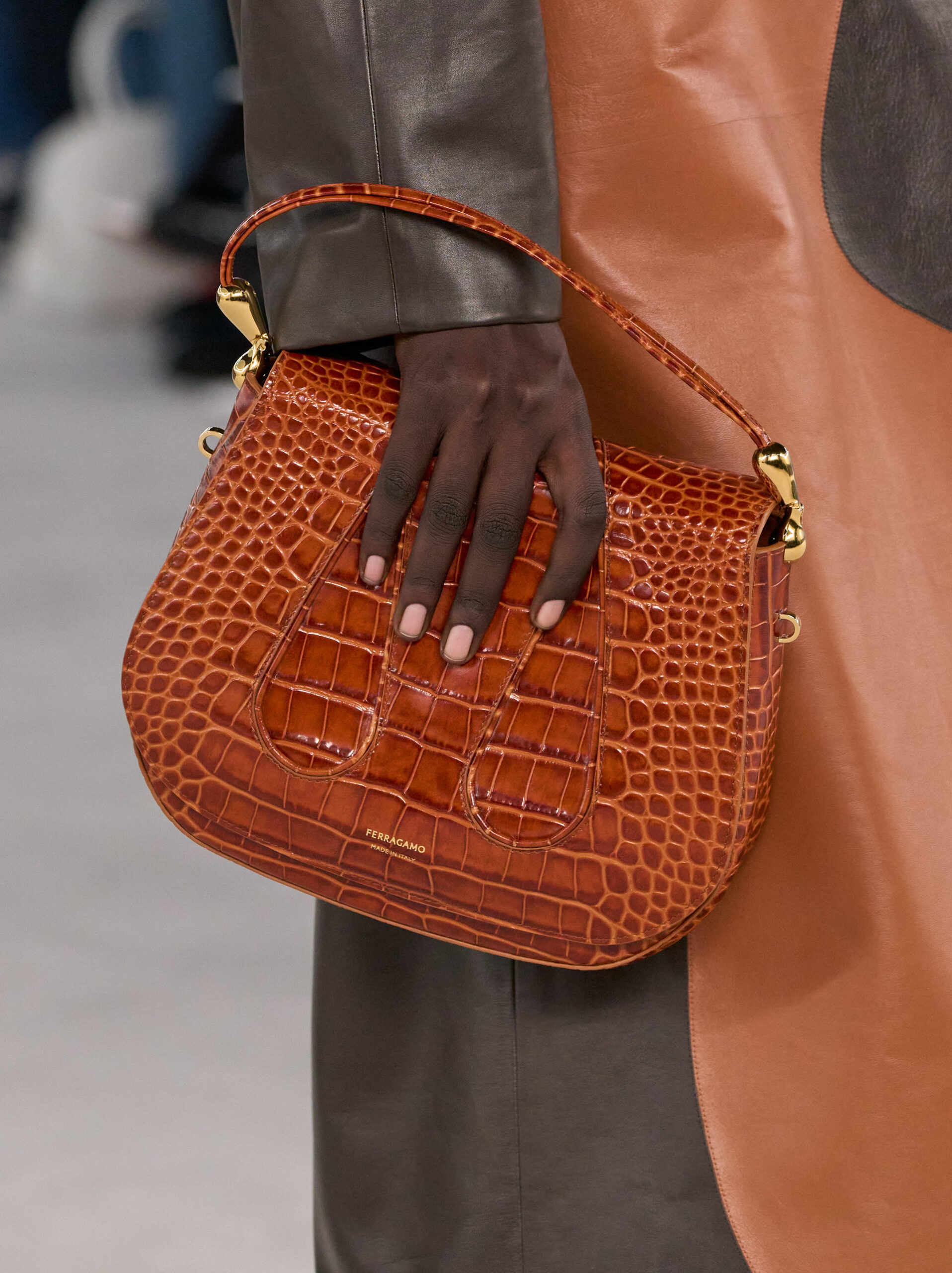 Les sacs à main poursuivent les lignes graphiques et les formes géométriques des collections précédentes : le classique contemporain « Hug » apparaît en version brillante et en cuir, tandis que le sac « Fiamma » joue sur les asymétries. Pour les hommes, le sac « Star » se distingue par sa construction minutieuse et son design épuré.
