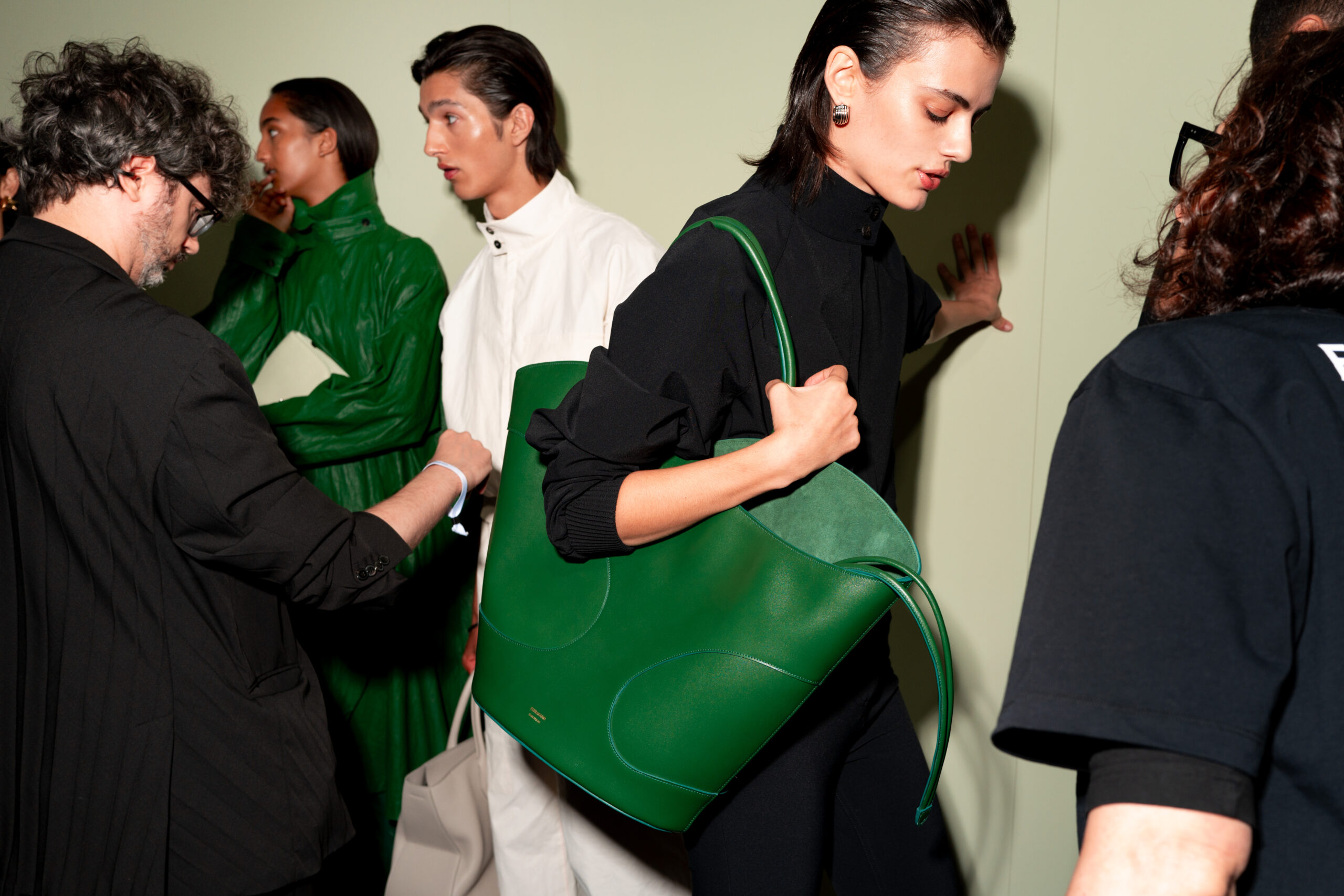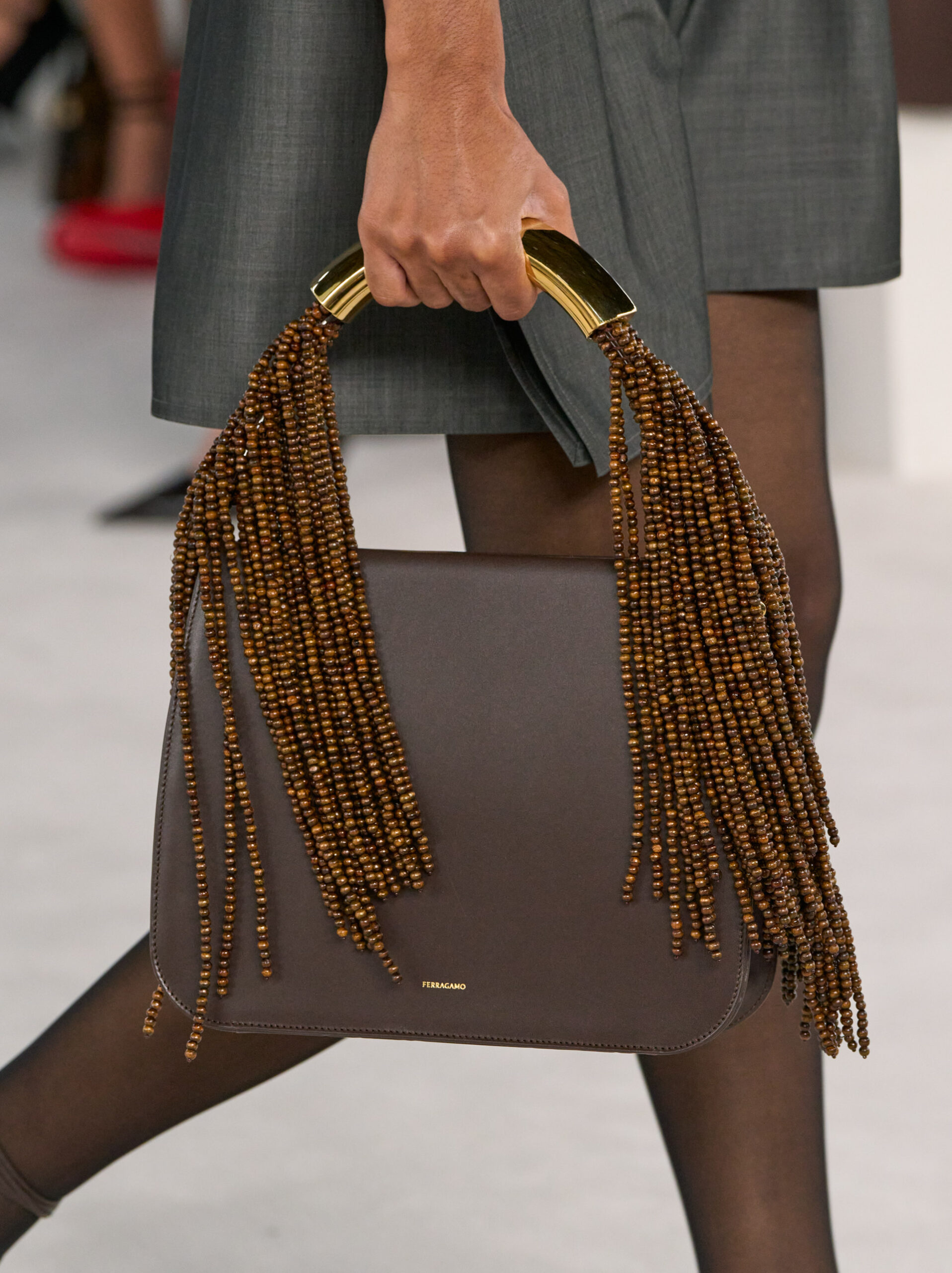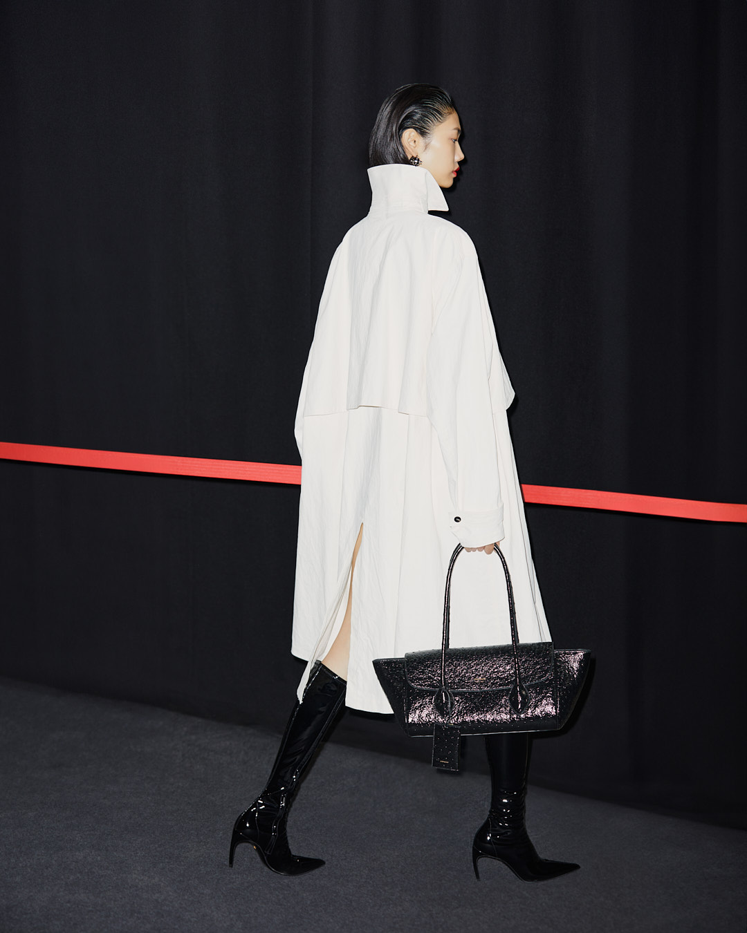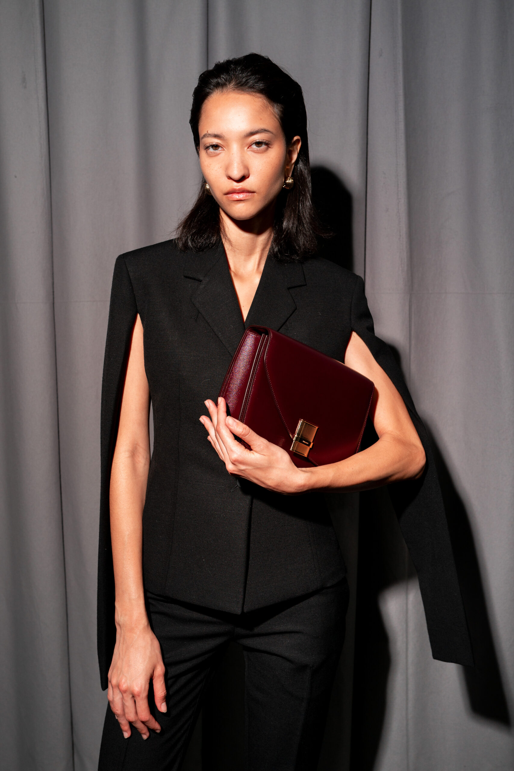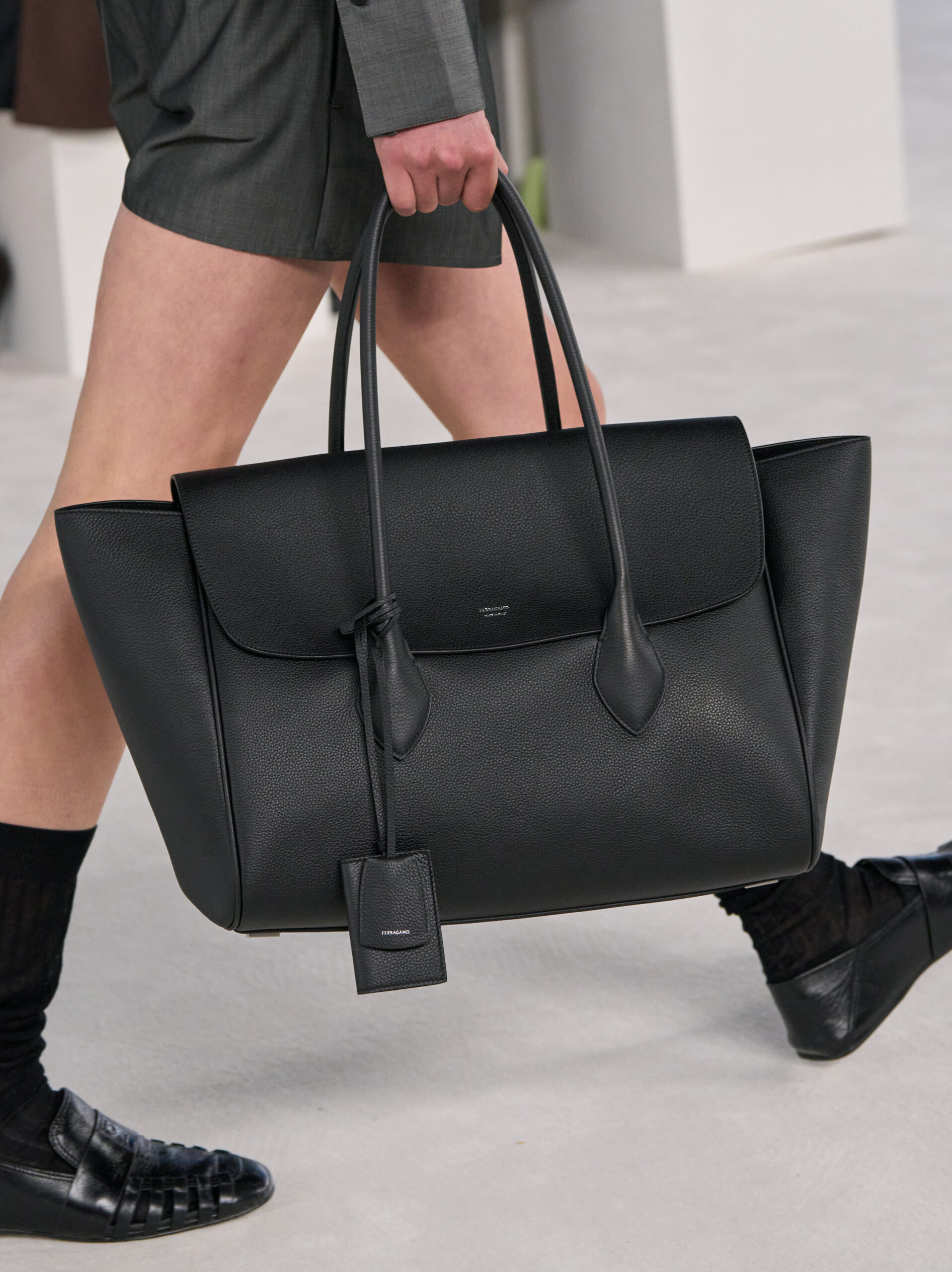 Les sacs à main poursuivent les lignes graphiques et les formes géométriques des collections précédentes : le classique contemporain « Hug » apparaît en version brillante et en cuir, tandis que le sac « Fiamma » joue sur les asymétries. Pour les hommes, le sac « Star » se distingue par sa construction minutieuse et son design épuré.