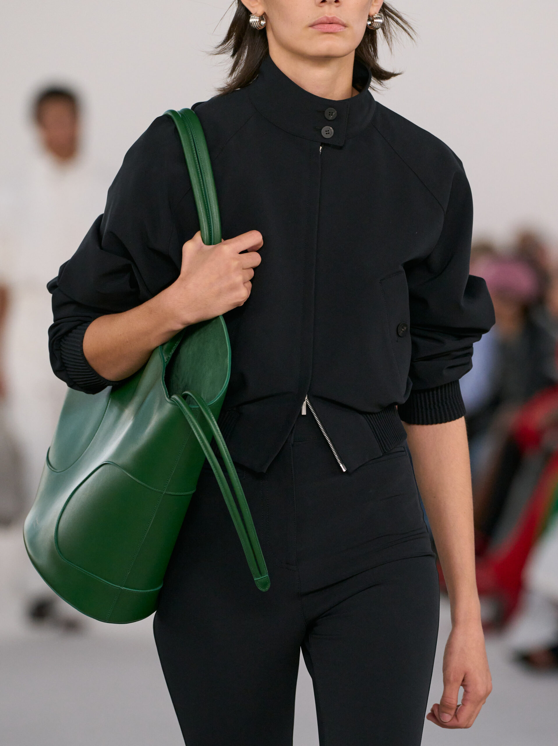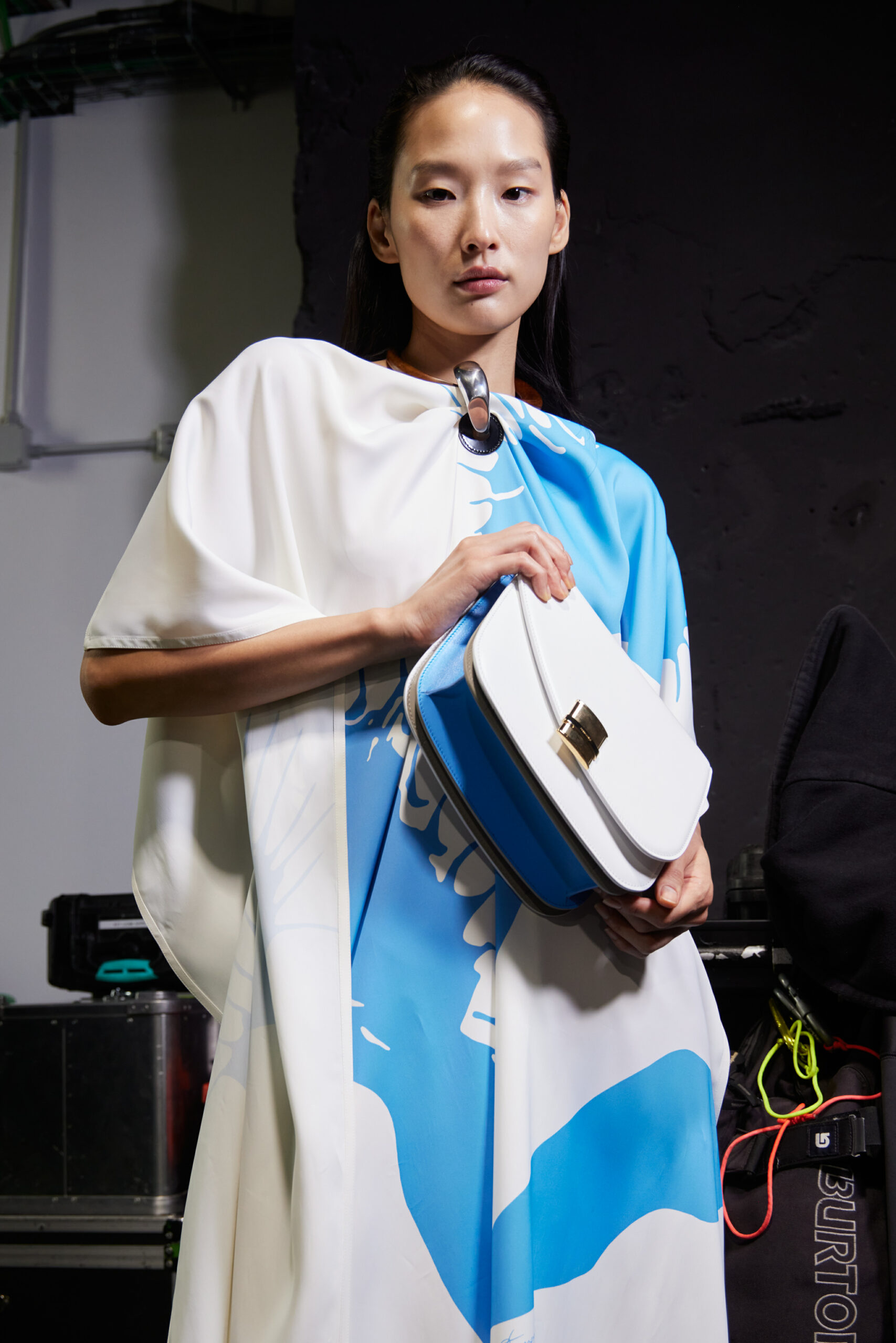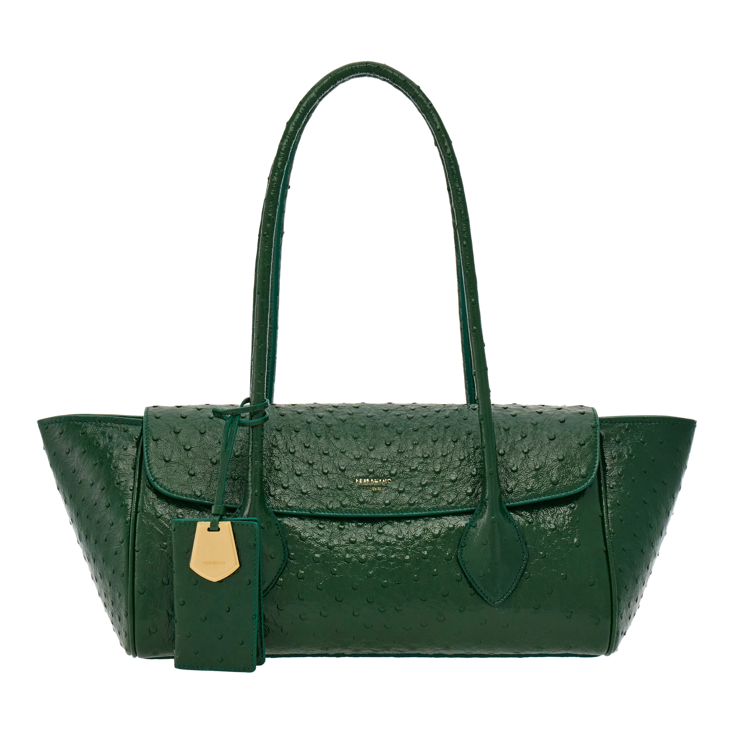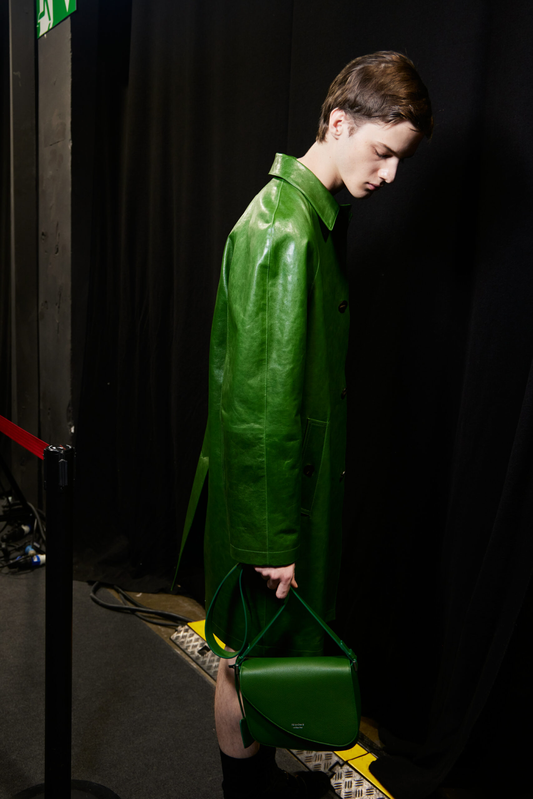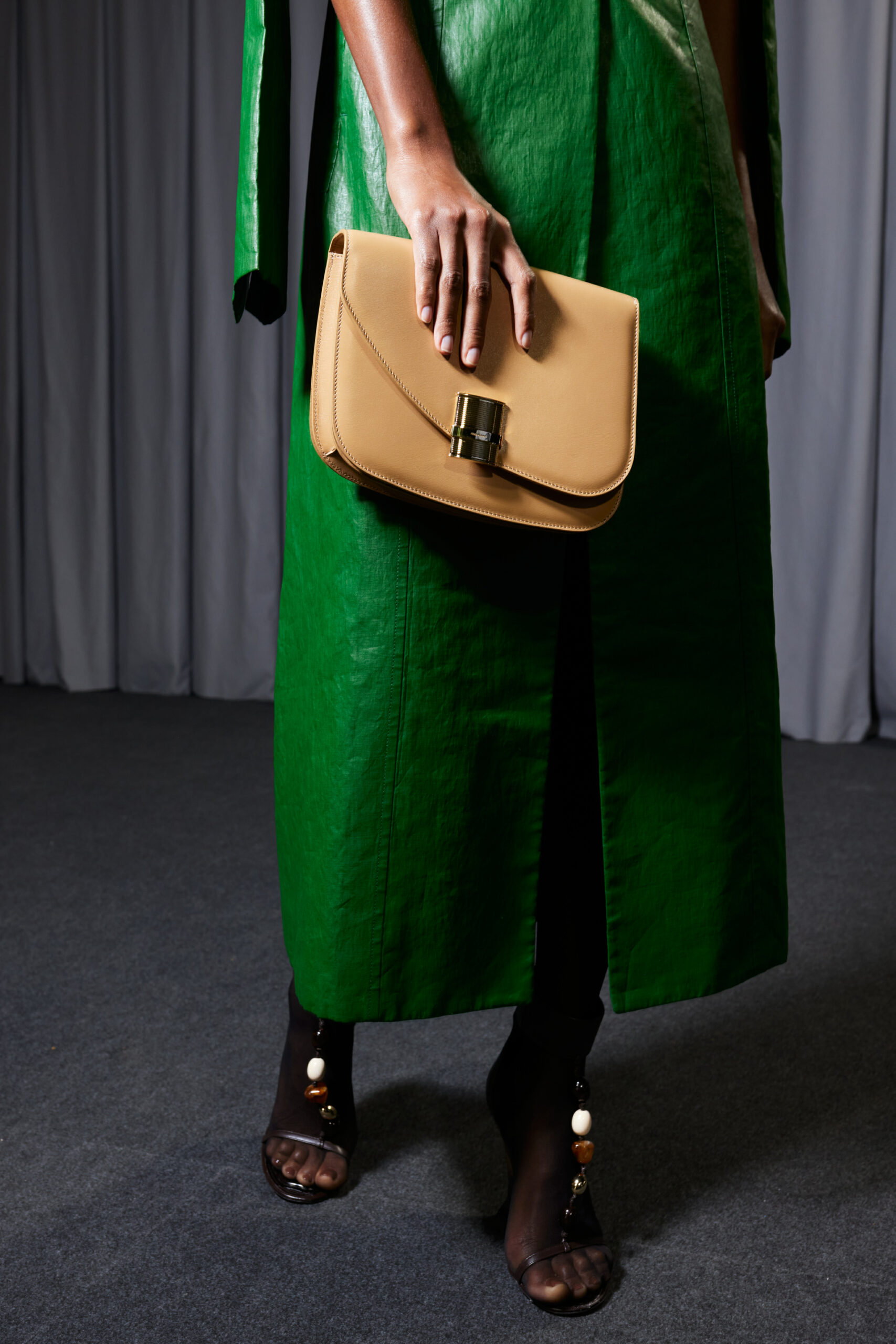 Les sacs à main poursuivent les lignes graphiques et les formes géométriques des collections précédentes : le classique contemporain « Hug » apparaît en version brillante et en cuir, tandis que le sac « Fiamma » joue sur les asymétries. Pour les hommes, le sac « Star » se distingue par sa construction minutieuse et son design épuré.