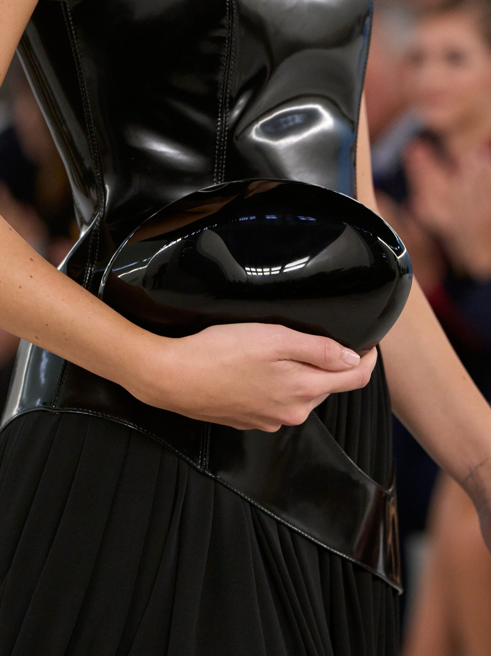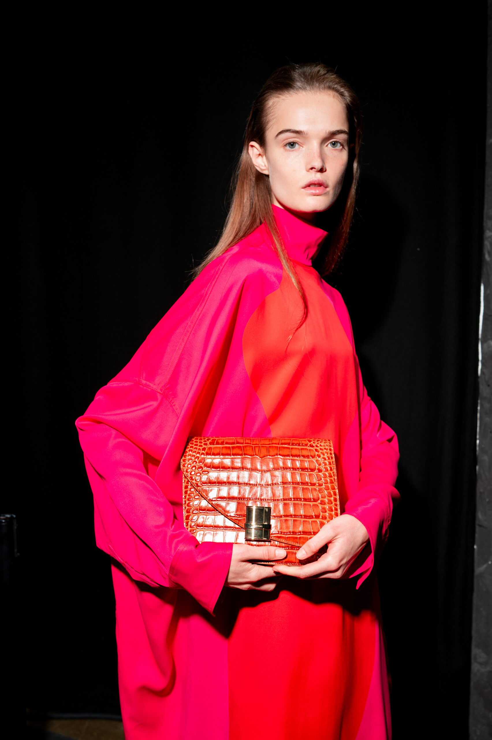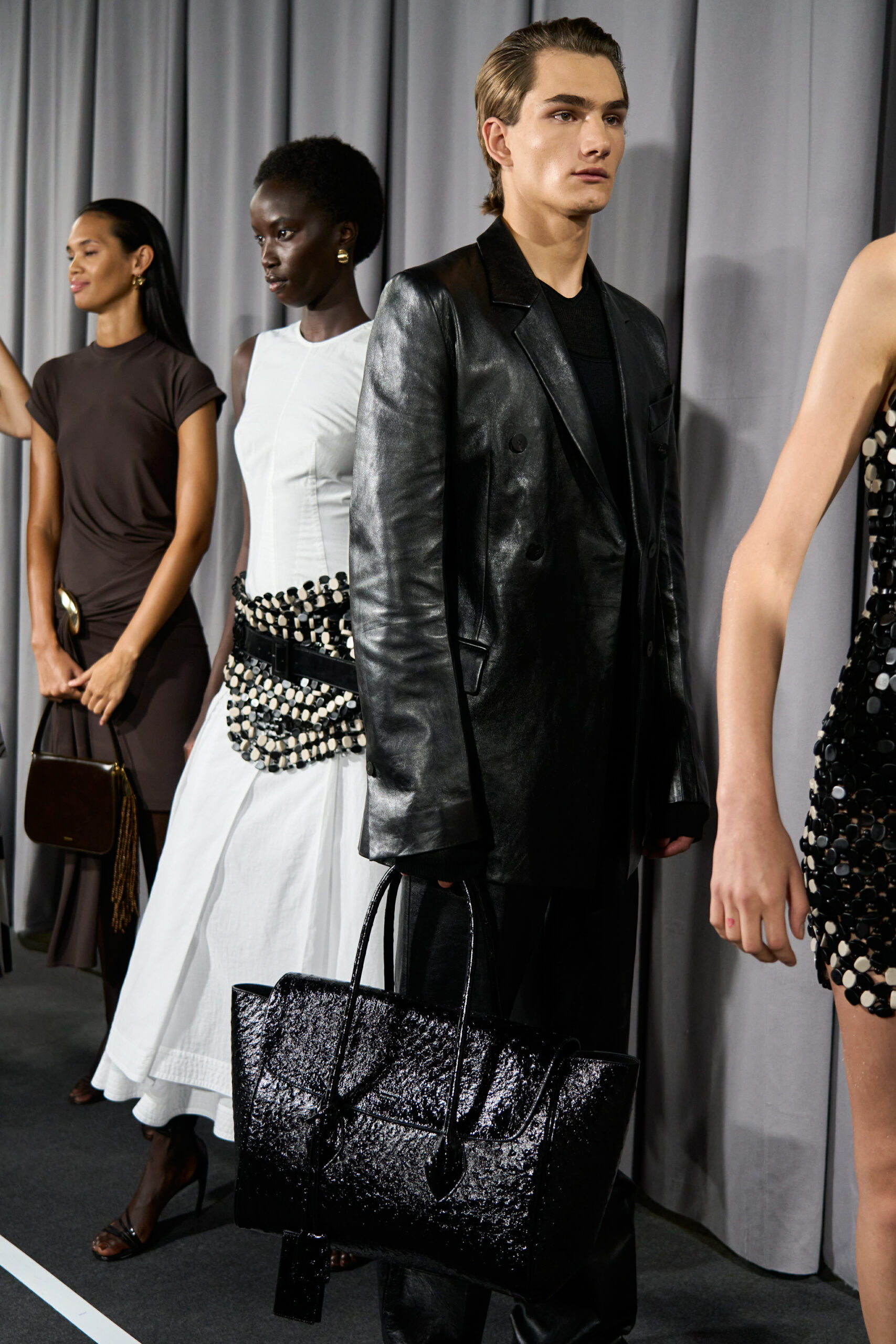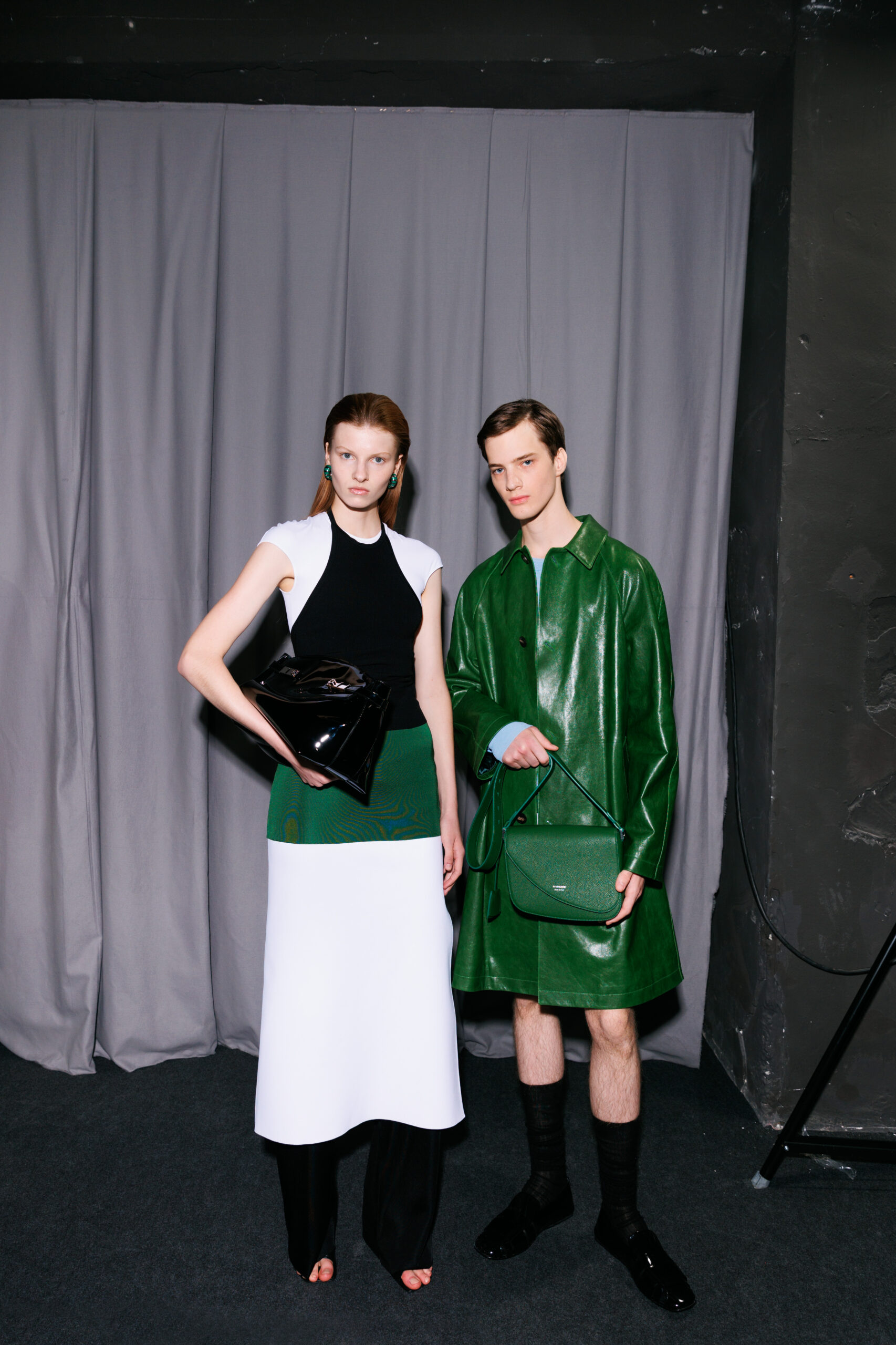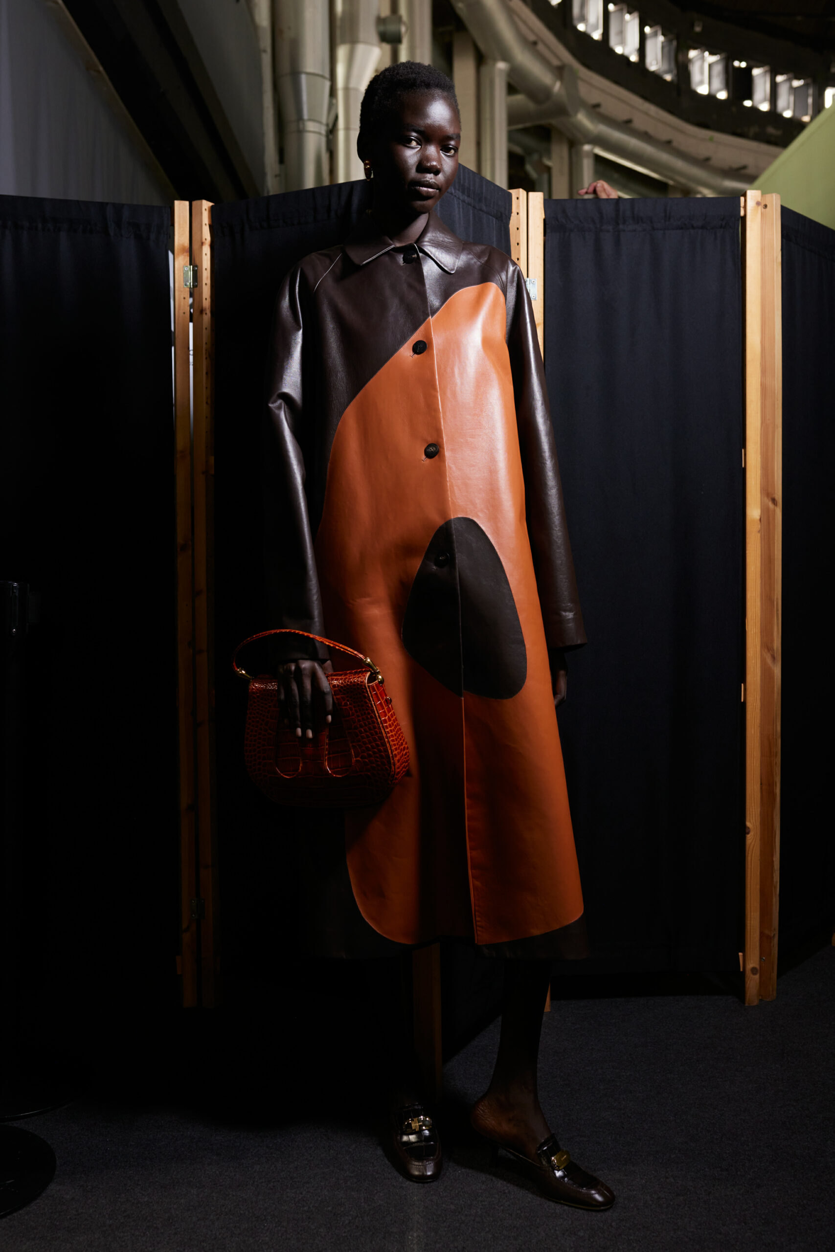 Les sacs à main poursuivent les lignes graphiques et les formes géométriques des collections précédentes : le classique contemporain « Hug » apparaît en version brillante et en cuir, tandis que le sac « Fiamma » joue sur les asymétries. Pour les hommes, le sac « Star » se distingue par sa construction minutieuse et son design épuré.