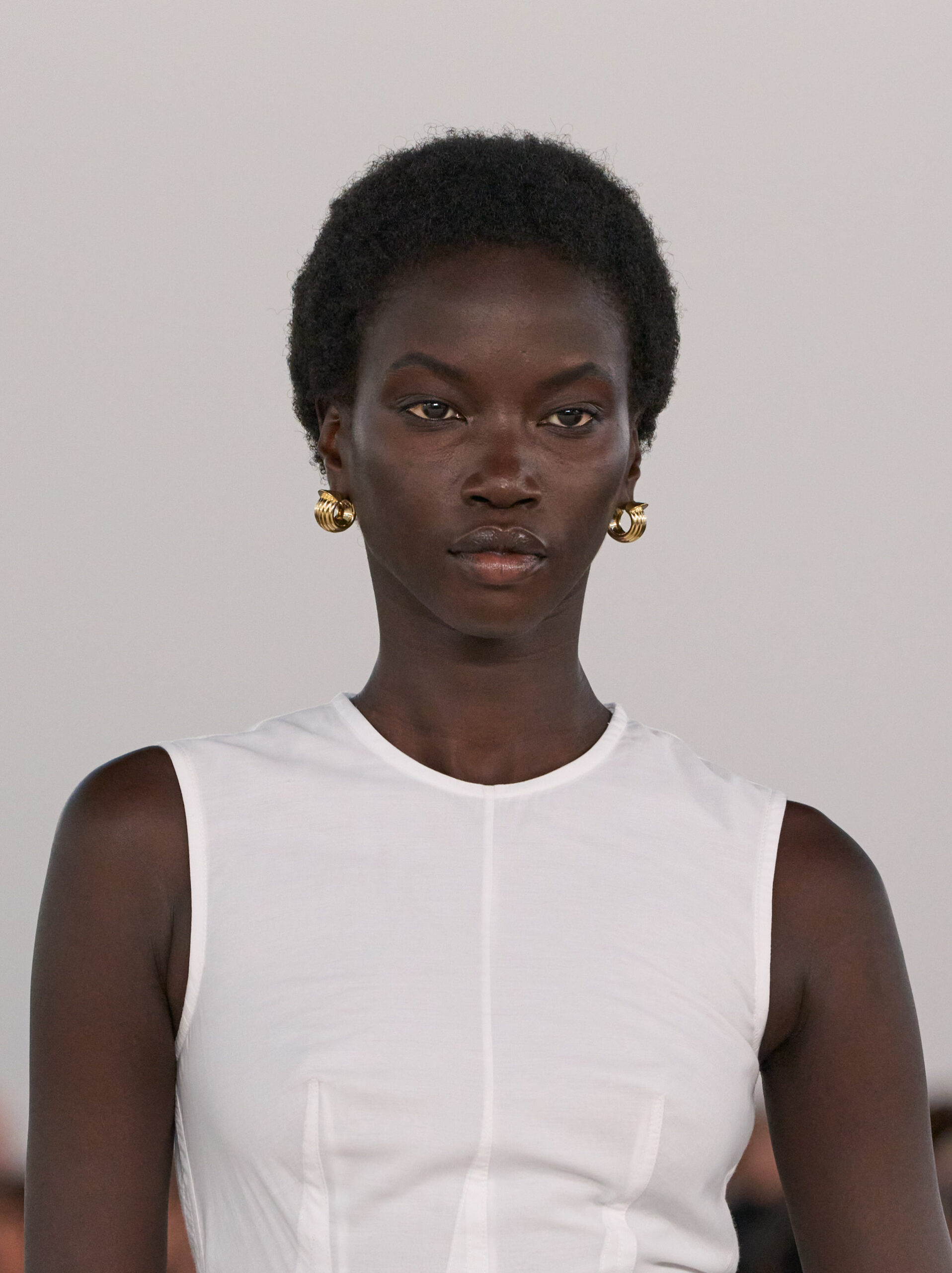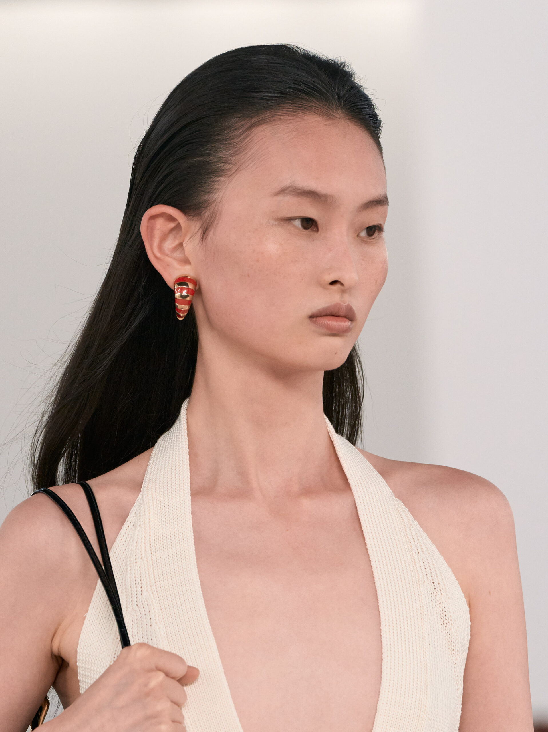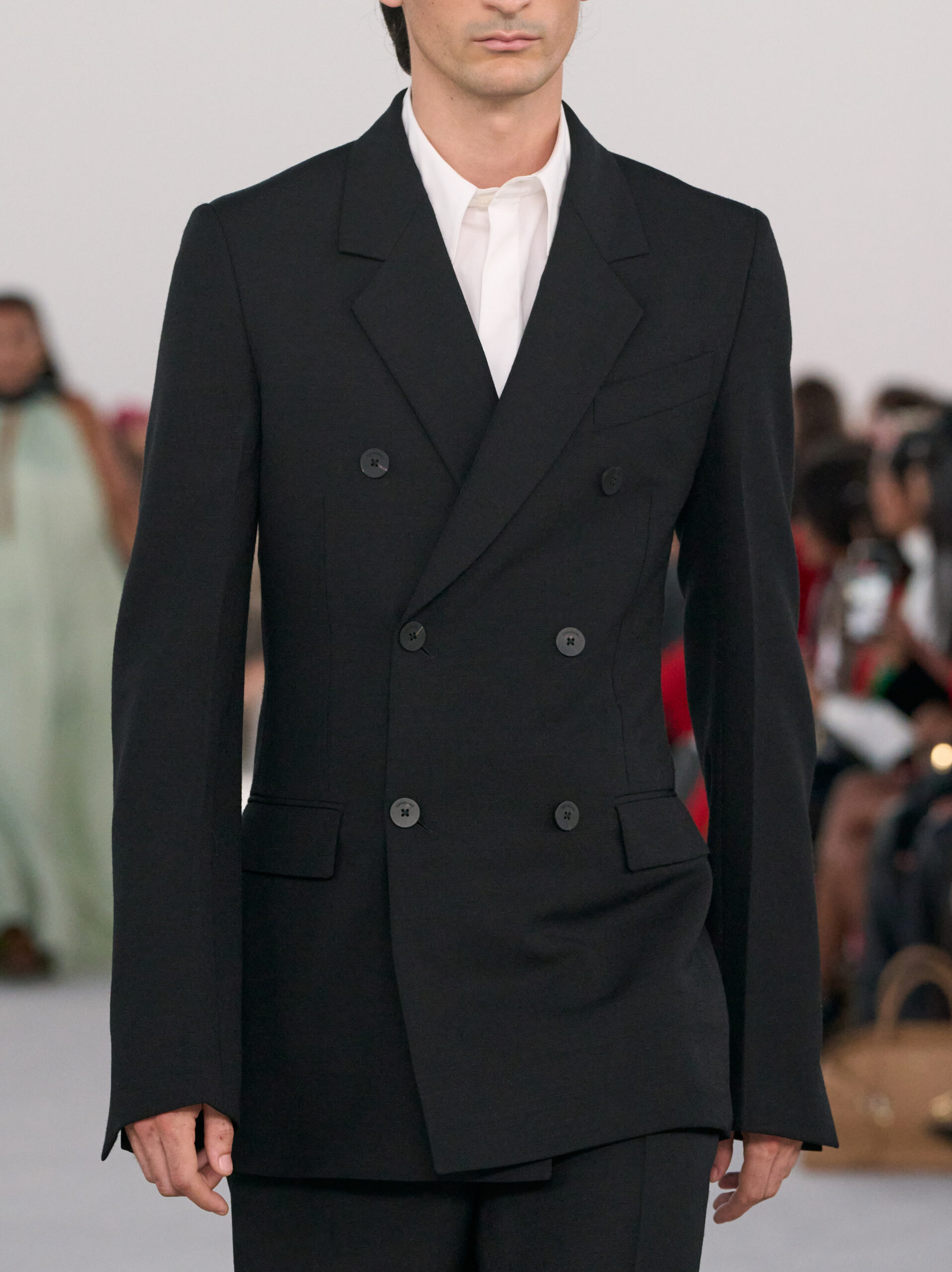 Davis trouve un parallèle entre l’esprit vestimentaire italien et caribéen, marqué par une décontraction qui se reflète dans la collection. Les matériaux naturels comme le lin et le coton sont traités avec une finesse rigoureuse, tandis que les accessoires en bois sculptural et les silhouettes précises expriment une pureté et une honnêteté dans les créations.