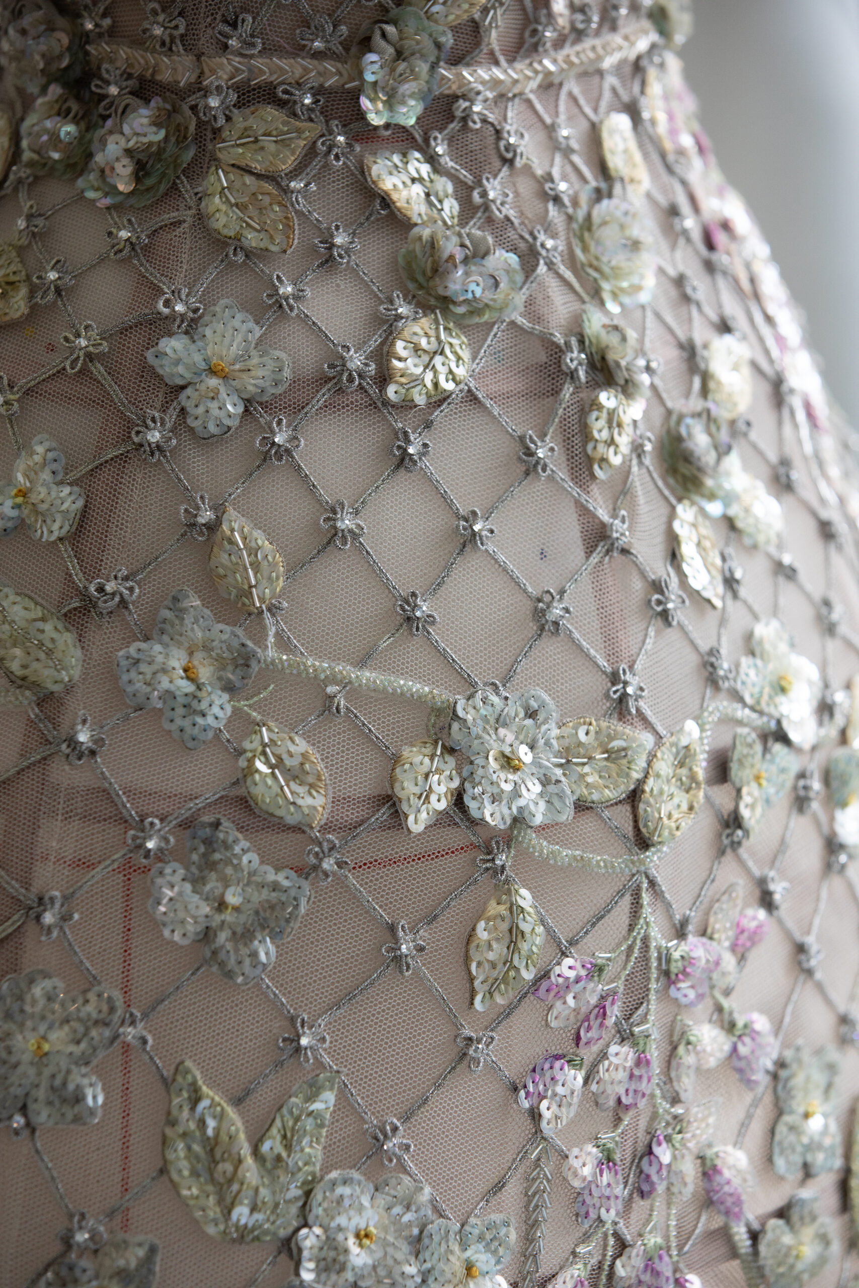 Le 15 janvier 2024, à Los Angeles, Jenna Ortega a incarné la quintessence de l’élégance lors des Emmy Awards, captivant l’attention de tous dans une création spectaculaire de Dior Haute Couture. Conçue par Maria Grazia Chiuri, la robe sans bretelles en tulle rose des vents, ornée d’une treille de soutache argentée et de guirlandes de glycine, de roses et de clématites en soie et sequins, a offert une vision de raffinement et de détail méticuleux.