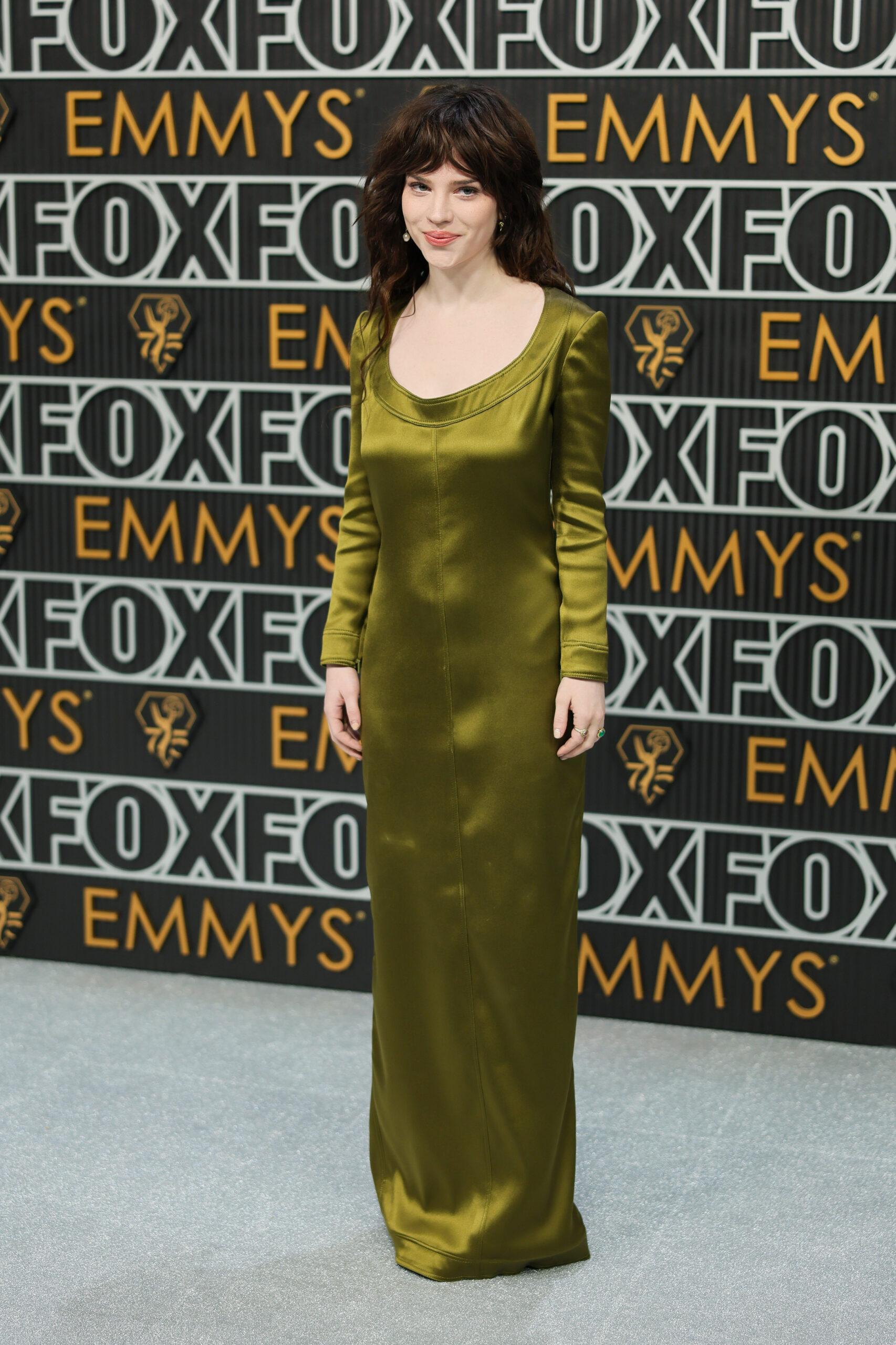 Sophie Thatcher, dans une robe à manches longues et décolleté plongeant, et des sandales Nuit en crêpe satin, a démontré une élégance subtile mais puissante.