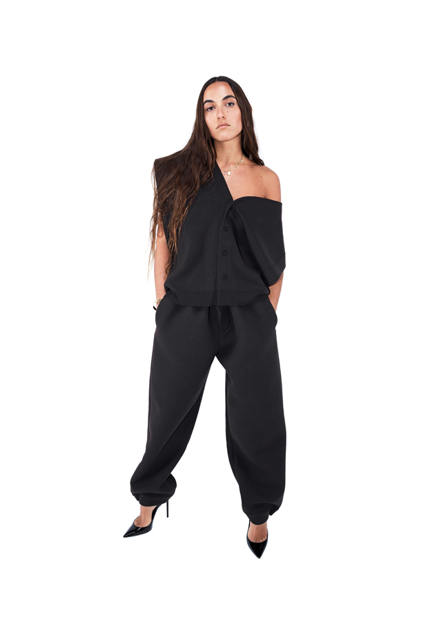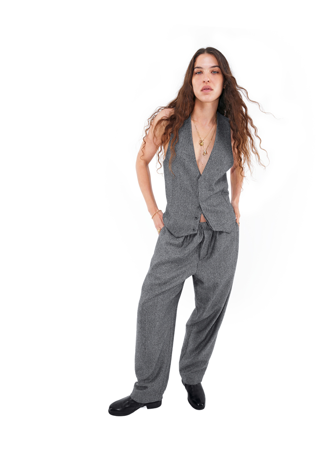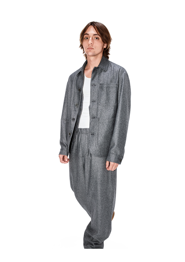 La collection propose également des ensembles monochromes confortables, réalisés à l’aide de vestes et de pantalons coordonnés. Les pantalons à cordon de serrage polyvalents sont proposés cette saison dans divers matériaux comme le velours côtelé en coton, le cachemire italien de poids moyen, le nylon italien et la laine bouillie douce.