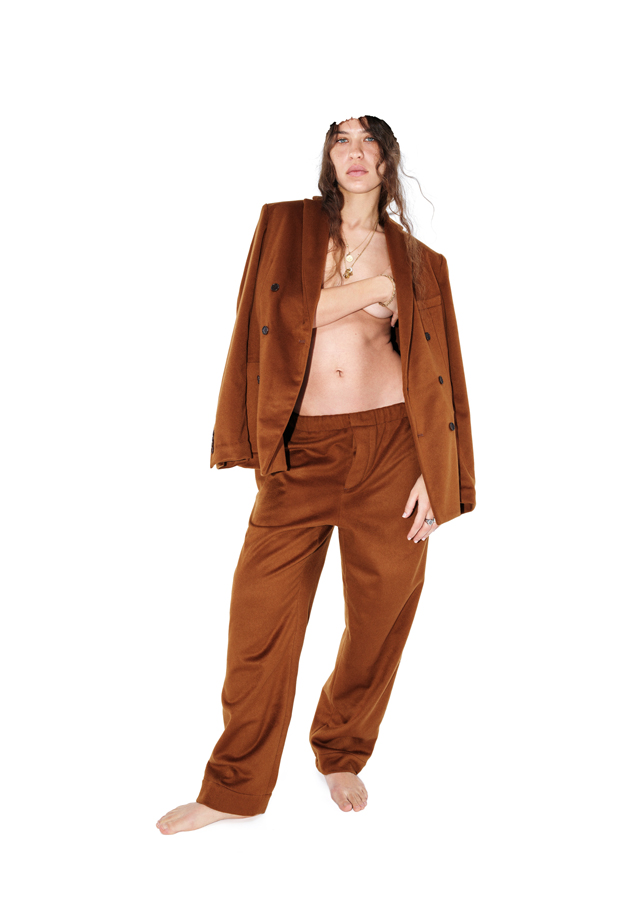 Les silhouettes amples, créées sans économie de tissu, dégagent confiance et luxe immédiat, en particulier dans les pièces phares de la collection. Des pièces comme le manteau long ajusté non doublé, le blouson en cachemire à capuche et le bomber matelassé à la main sont aussi doux au toucher qu’agréables à l’œil. Un caban en peau de mouton reste léger et souple tout en offrant une protection contre les éléments.