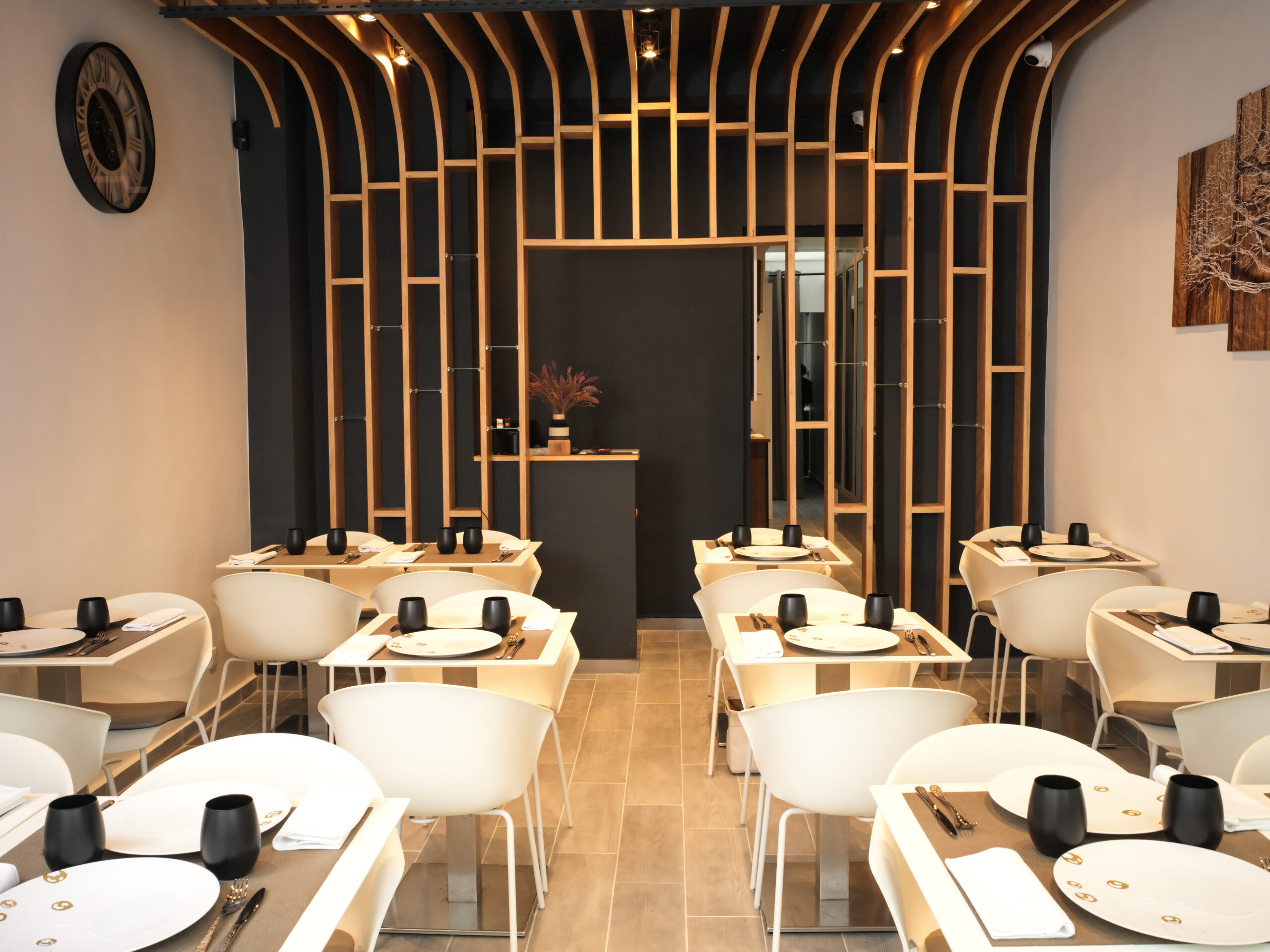L’adresse du restaurant, située au 5 rue Louise-Emilie de la Tour d’Auvergne, évoque déjà une promesse d’élégance. Le décor, baigné dans des tonalités d’ambre et de lumière, offre aux convives une atmosphère à la fois intime et chaleureuse, propice à l’éveil des sens.