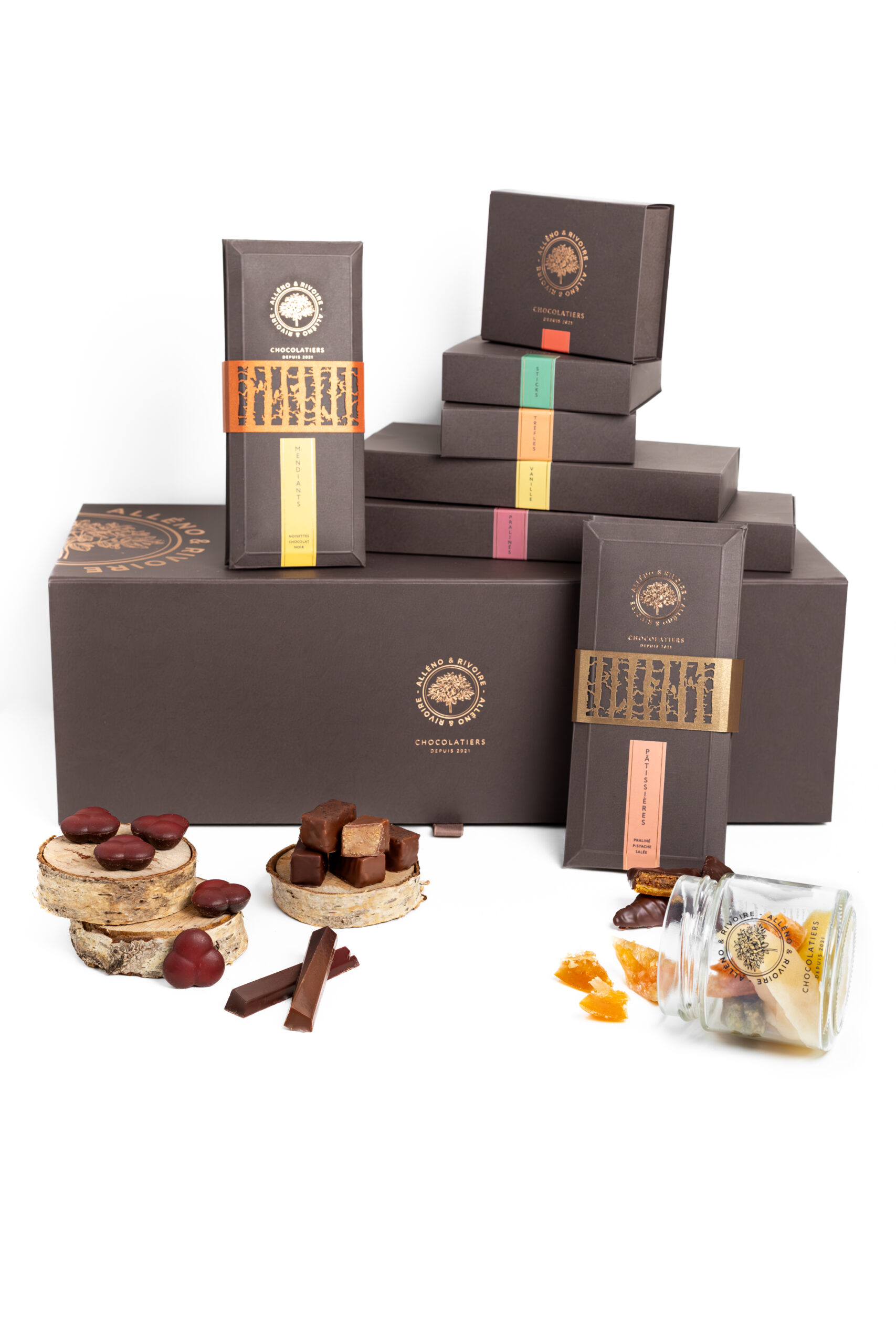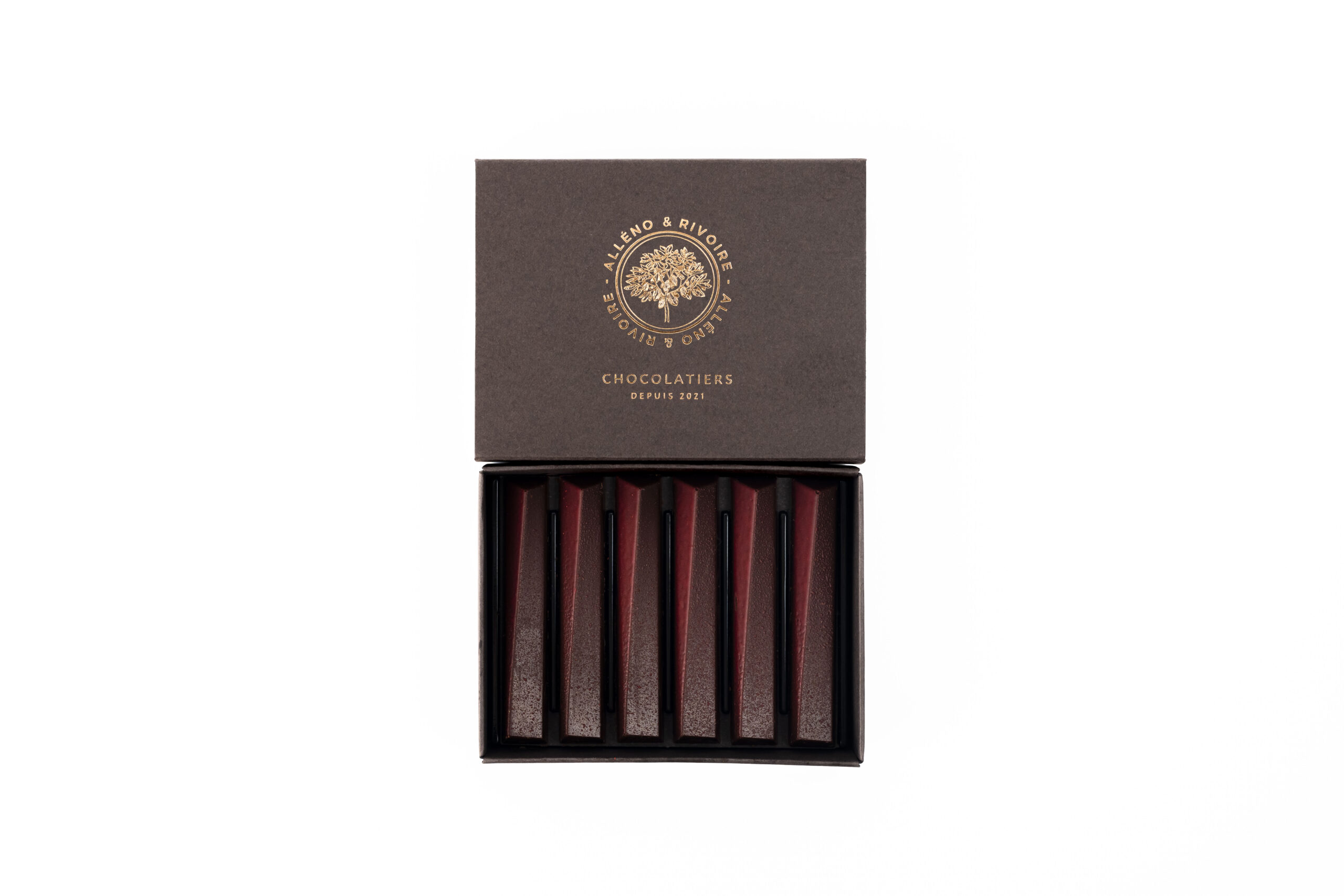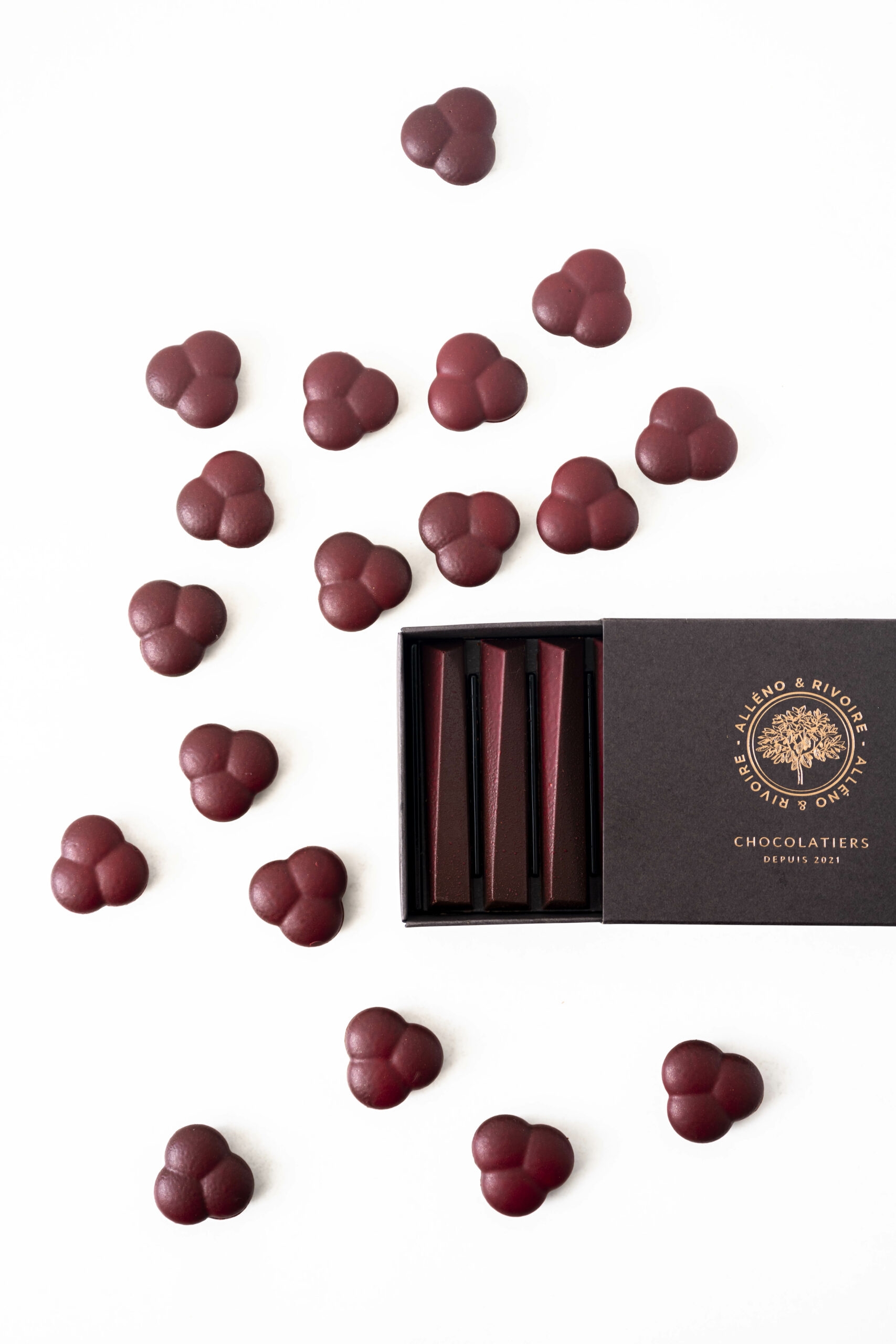 Alléno & Rivoire, fondé par les Chefs Yannick Alléno et Aurélien Rivoire, se distingue par sa vision moderne du chocolat et de la confiserie, en proposant des chocolats gastronomiques et des confits de fruits travaillés à l’eau de bouleau. Leur engagement envers un chocolat plus sain pour l’humain et la planète se reflète dans chaque création.