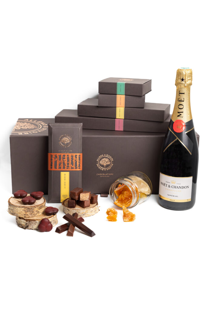- Les Coffrets pétillant d’Amour : Pour une célébration grandiose de l’amour, ces coffrets combinent les essentiels d’Alléno & Rivoire et une bouteille de champagne. Le petit coffret est disponible à 90€, tandis que le grand coffret est proposé à 220€ et inclut un large éventail de délices, y compris des pralinés et des confits de fruits de saison.