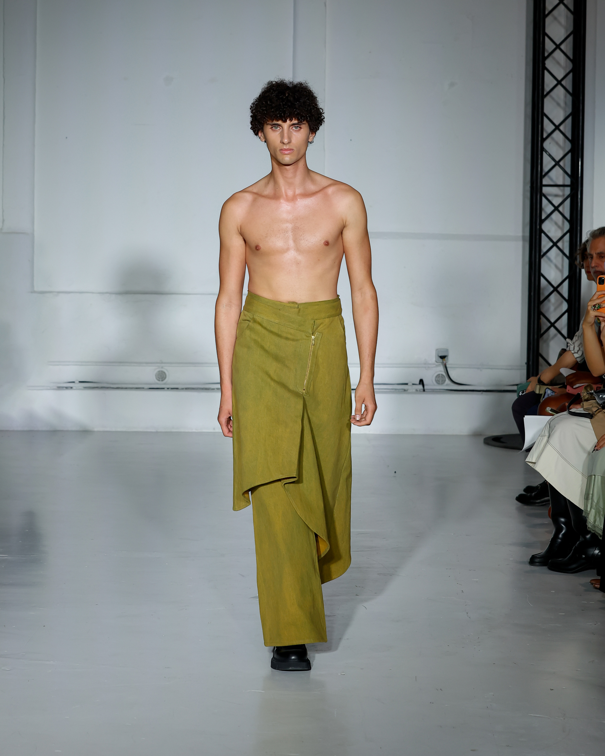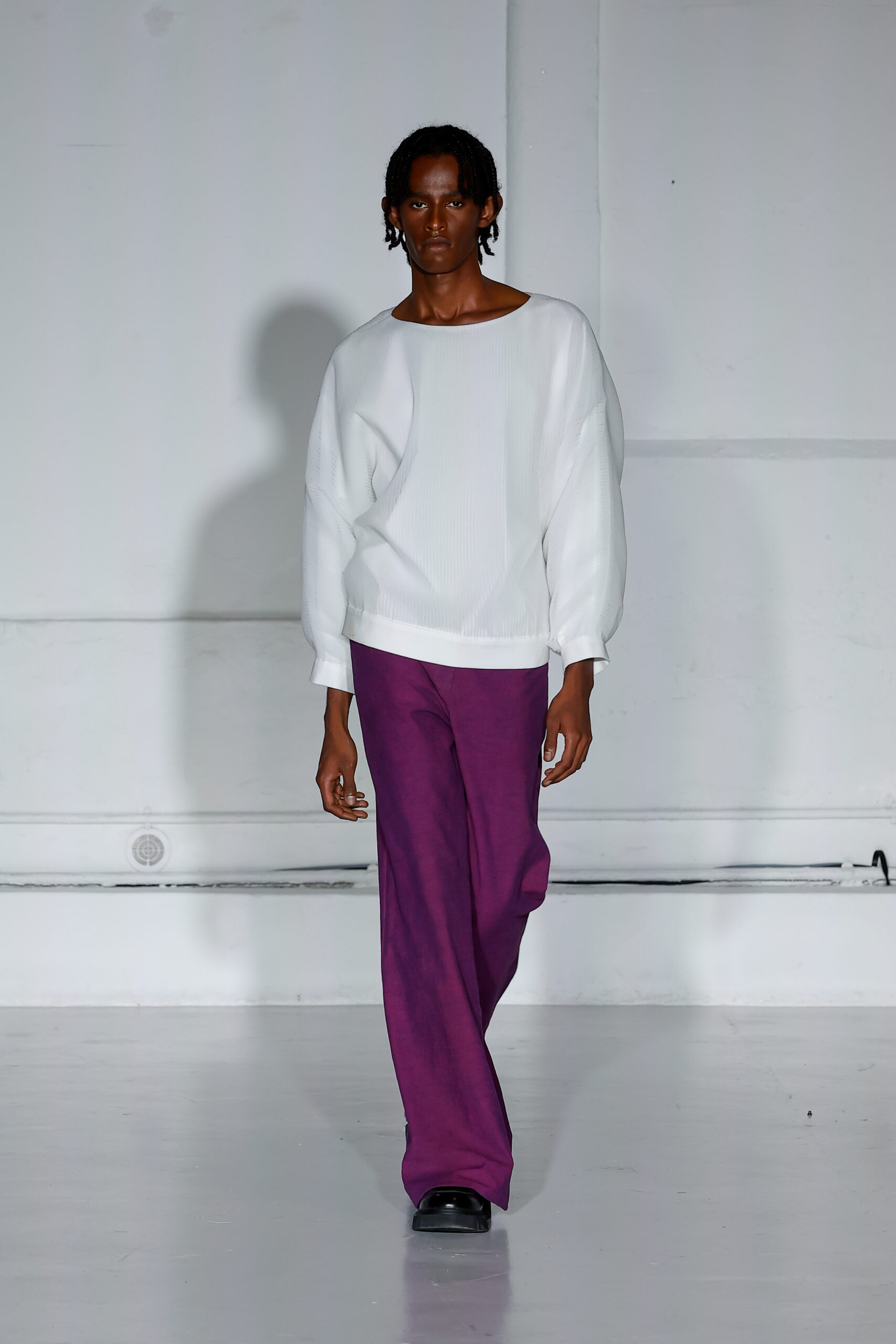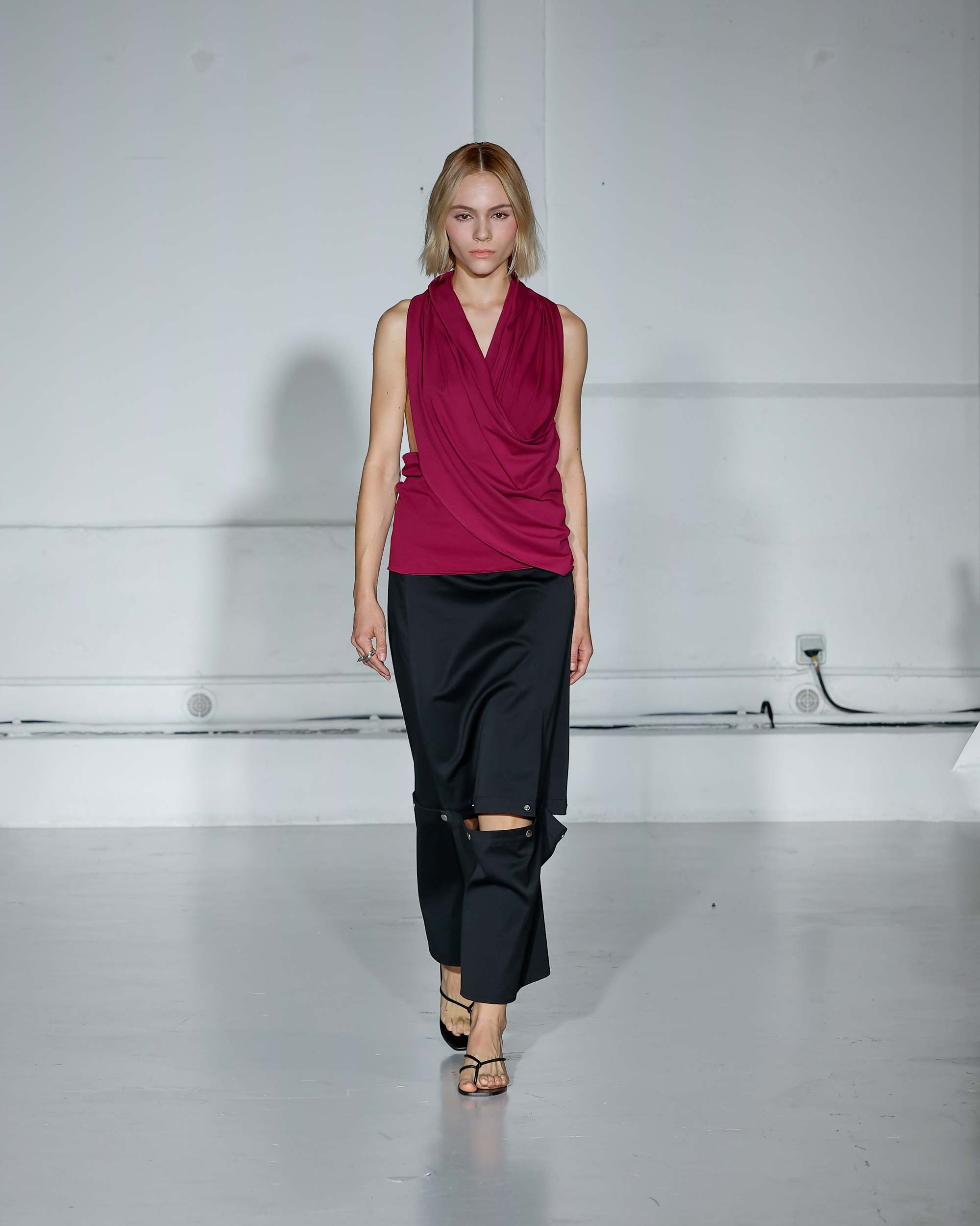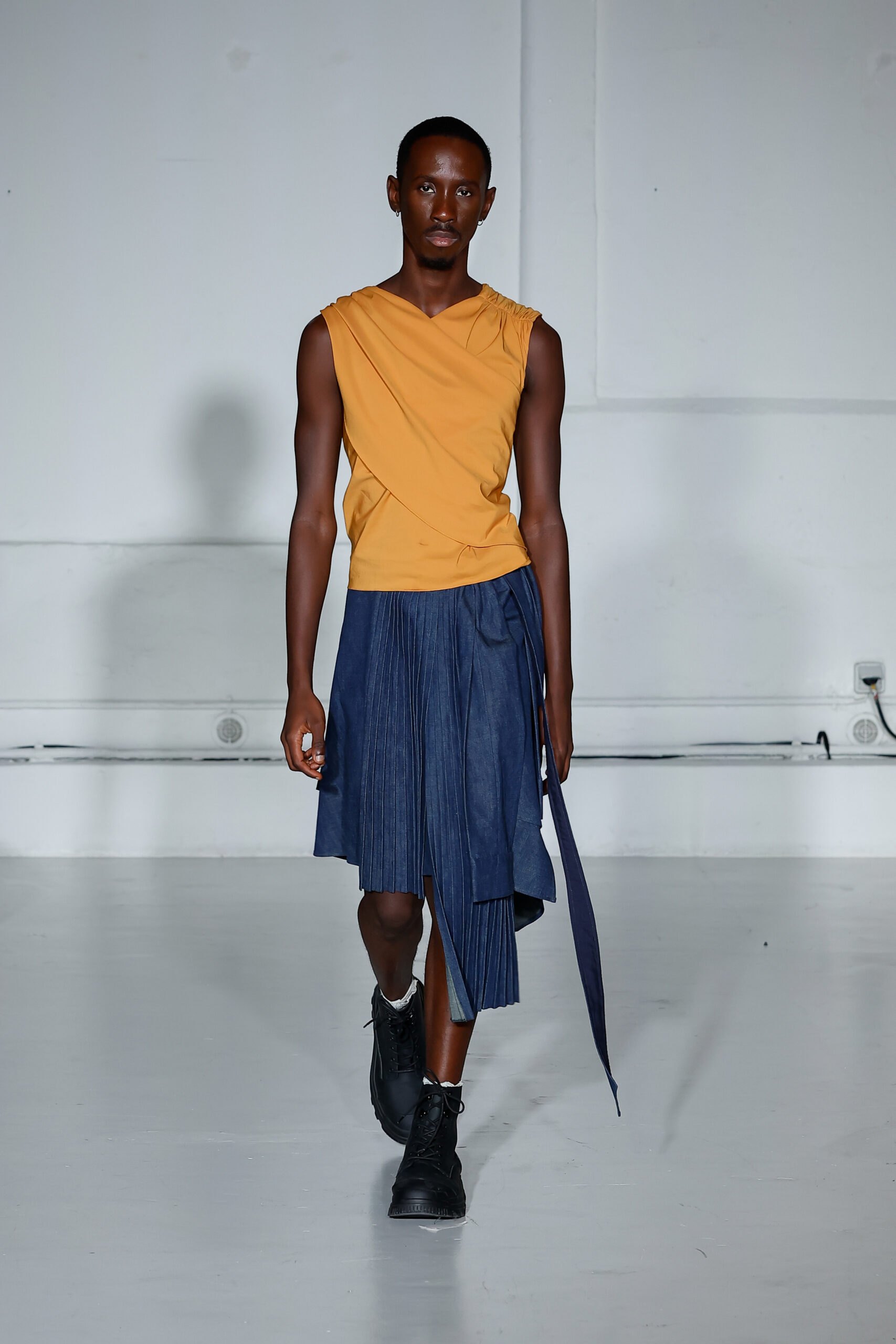 Dans cette nouvelle collection, MOSSI repense ses pièces les plus iconiques : jupe à pans plissés et asymétriques – portée par-dessus un pantalon ou un jean large – robe trapèze graphique, chemise aux longueurs asymétriques ou encore pantalon exagérément blousant. À ces éléments phares s’ajoutent de nouvelles interprétations, à l’image d’une jupe portefeuille aux lignes irrégulières, d’un top drapé autour du corps ou de manteaux géométriques à pans. S’articulant autour d’un style aussi sophistiqué que streetwear, architectural que déconstruit, la collection reflète l’identité même de la maison, axée sur une couture urbaine et contemporaine.
