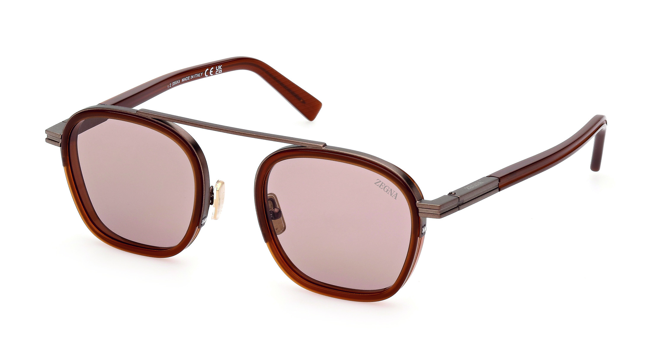 The inspiration for the Orizzonte I Sunglasses was Born in Oasi Zegna — the home of our values in the Italian Alps.Shaped to a contemporary unbridged silhouette, they’re accented with our iconic 232 Road Brand Mark and ZEGNA logo, then finessed with a slender brow bar that draws from the panoramic mountain-top views in our 100km² natural territory.
