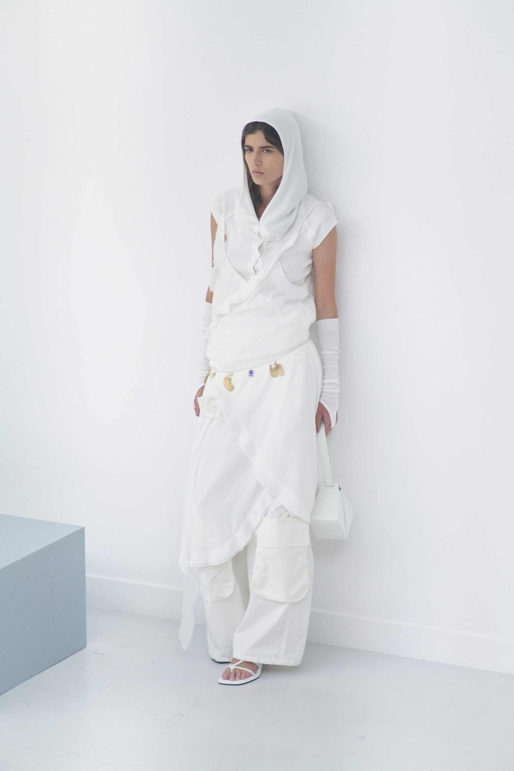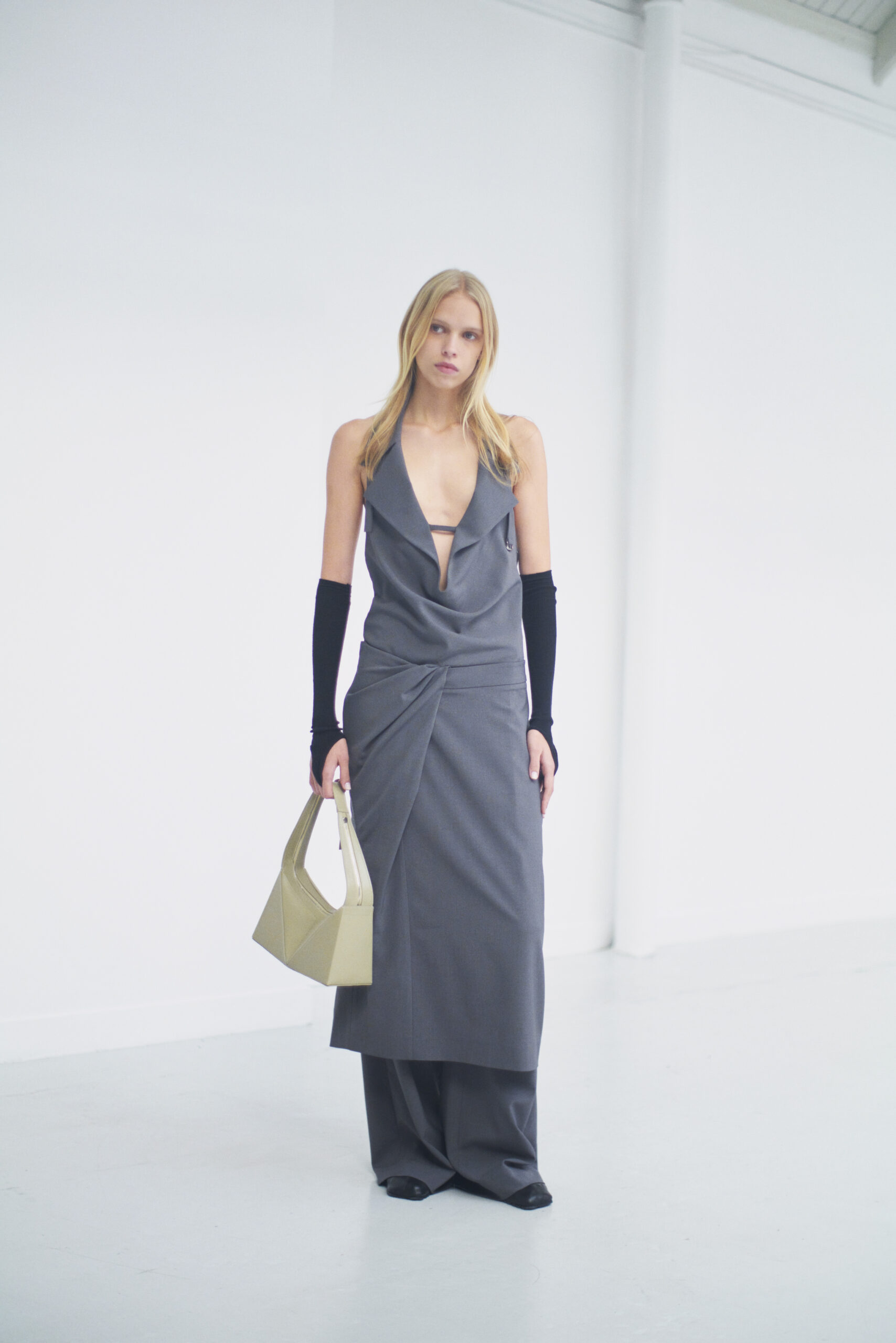La palette de couleurs, eminently urbaine, sera composée de gris clair, beige, orange pâle, noir et blanc, en écho à l’ancien bâtiment industriel. Les imprimés saisonniers puisent leur inspiration dans des éléments visuels très hétérogènes : le paysage urbain dystopique, les vases espagnols antiques, et l’art floral, reflétant la quête du duo de créateurs pour un équilibre entre la beauté contemporaine et classique. Les bijoux, avec leurs détails audacieux et fantaisistes, exprimeront une féminité assumée. Et pour cette collection SS24, la marque introduira spécialement sa nouvelle ligne de sacs, ‘Cube’, dont la ligne géométrique accentue les looks fluides et multicouches.
