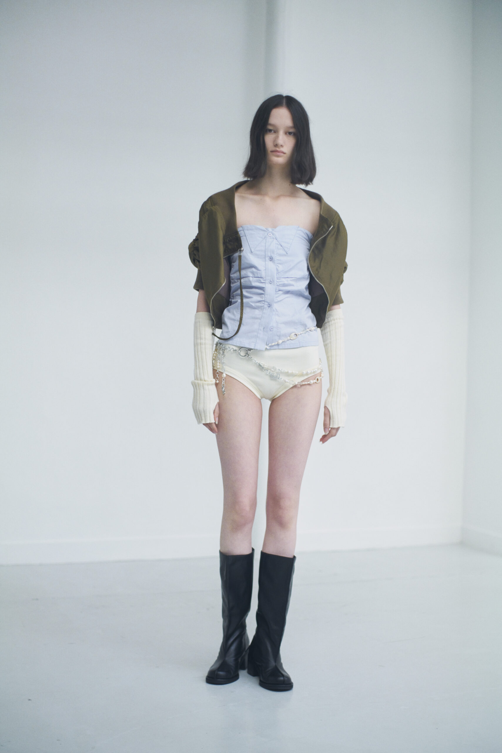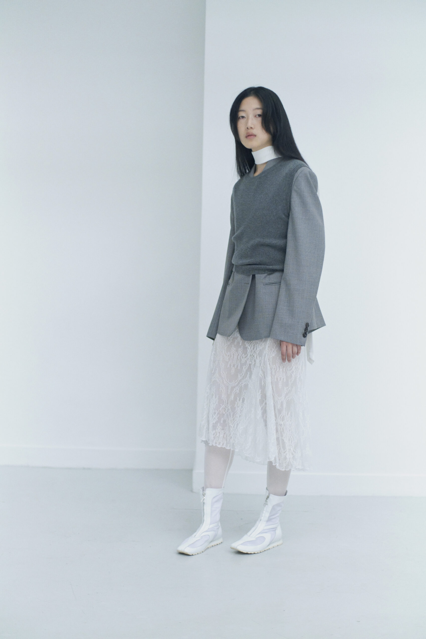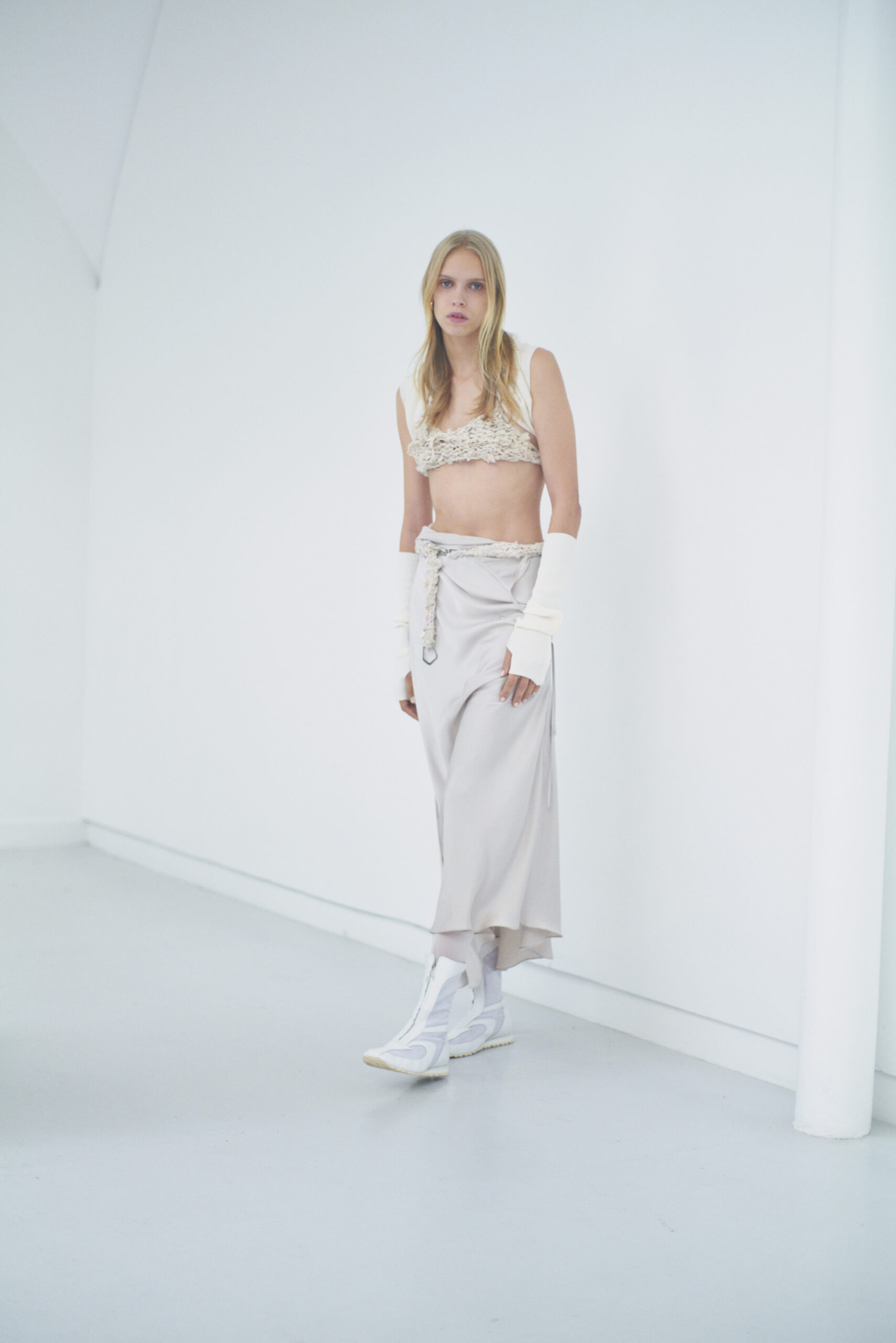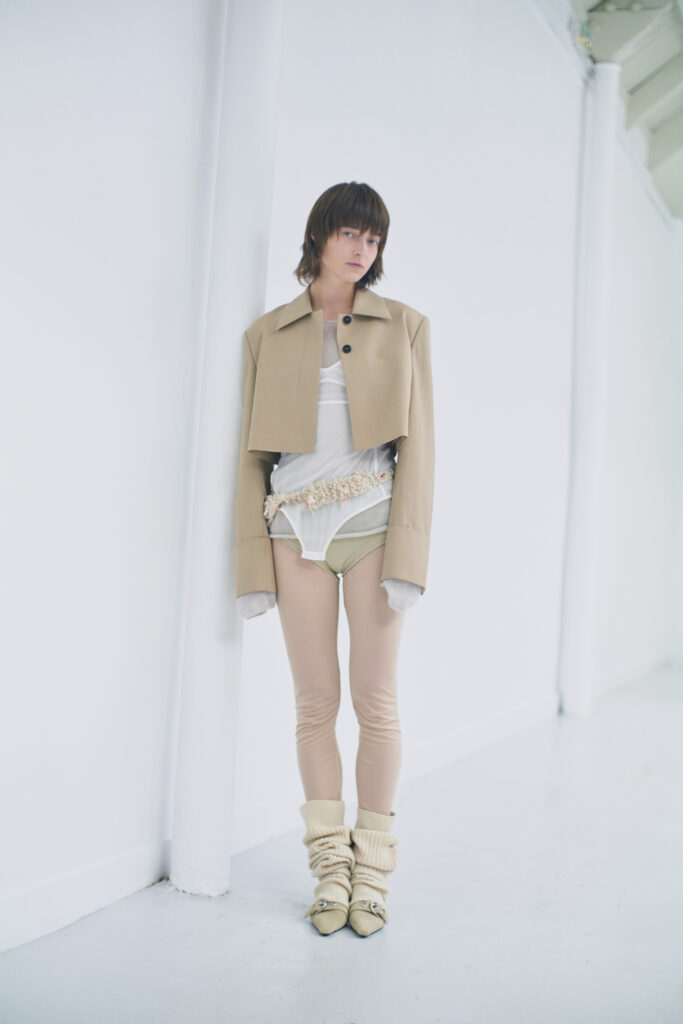 La collection SS 24 de Low Classic a incarné l’esthétique et la philosophie de conception de la marque, embrassant des notions de réalisme et de conscience corporelle. En continuité avec l’exploration constante de la marque sur la fine ligne entre la féminité et la masculinité, les pièces moulantes, associées à des silhouettes amples et décontractées, ont donné naissance à une version plus ambigüe et complexe de la personnalité Low Classic. Les vêtements sur mesure, quintessence de la marque, se marieront harmonieusement avec une jupe portefeuille fluide, des body et des collants en tissu jersey transparent.