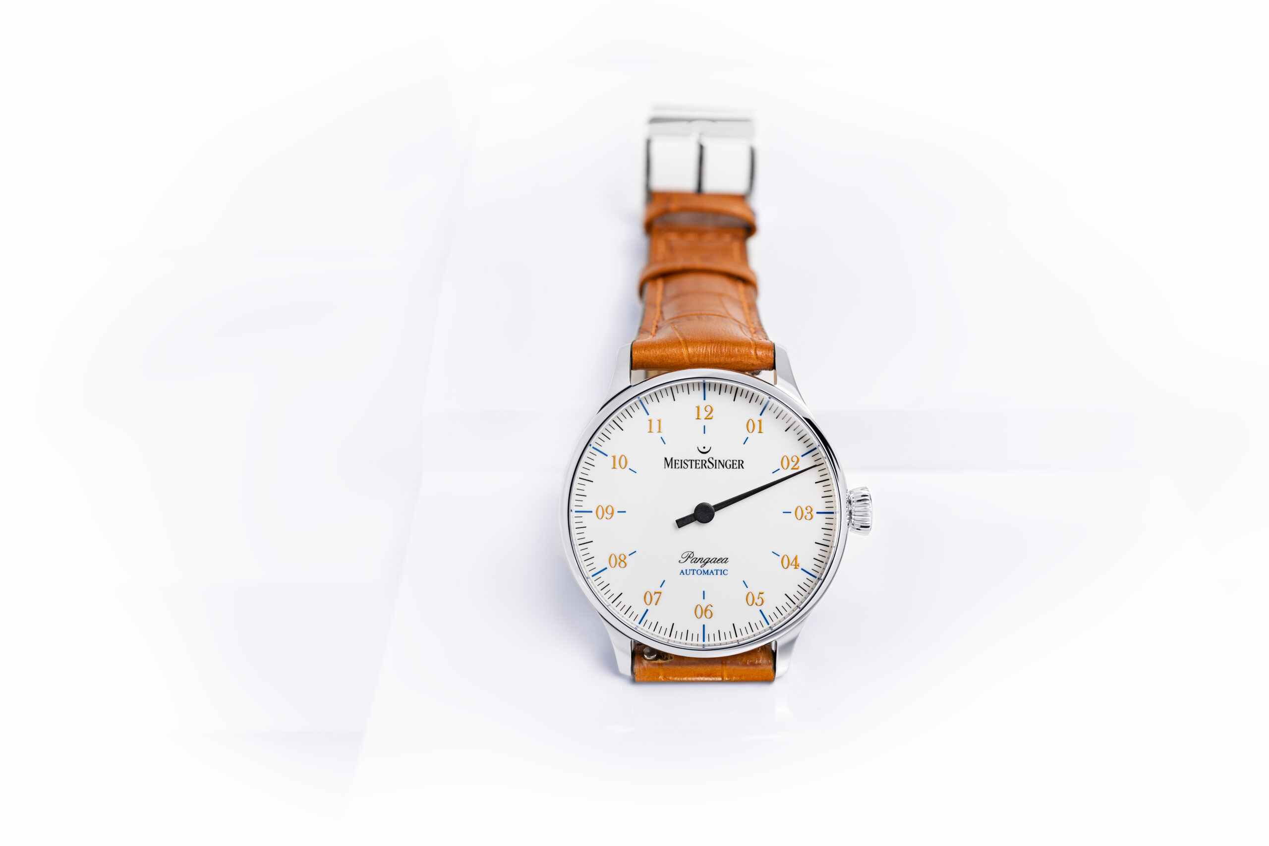 La nouvelle édition Pangaea, avec ses bracelets en cuir impression croco brun foncé ou cognac, est un témoignage du design intemporel et de la finesse de MeisterSinger. Ce garde-temps s’adresse à ceux qui cherchent à se démarquer par une approche plus réfléchie et moins conventionnelle de l’heure, tout en appréciant l’élégance et le raffinement.