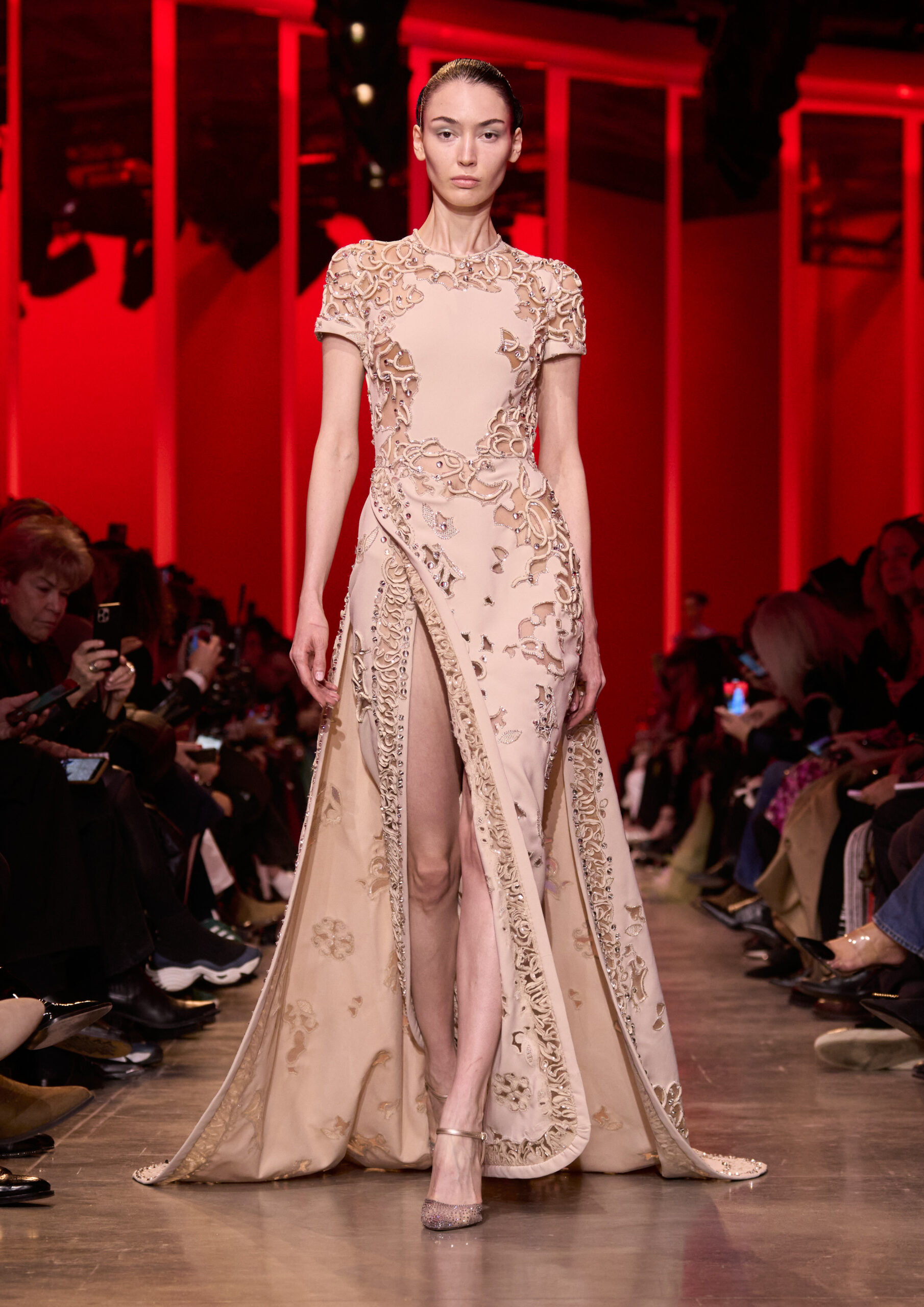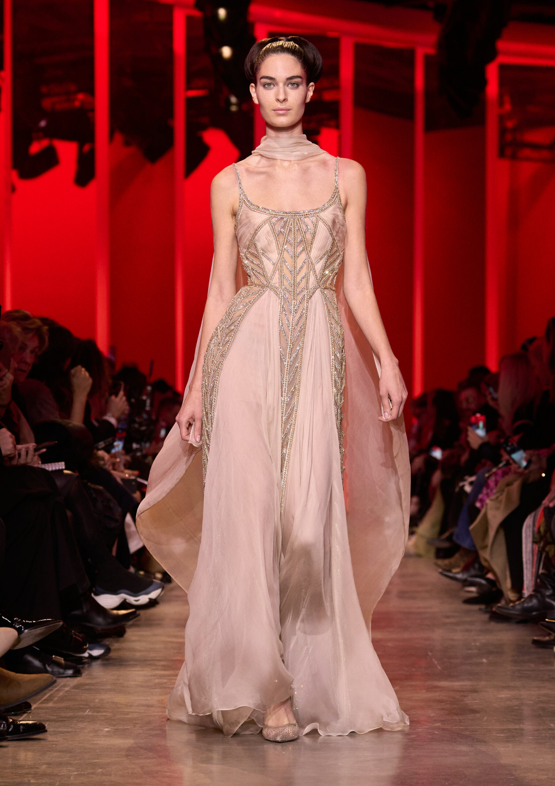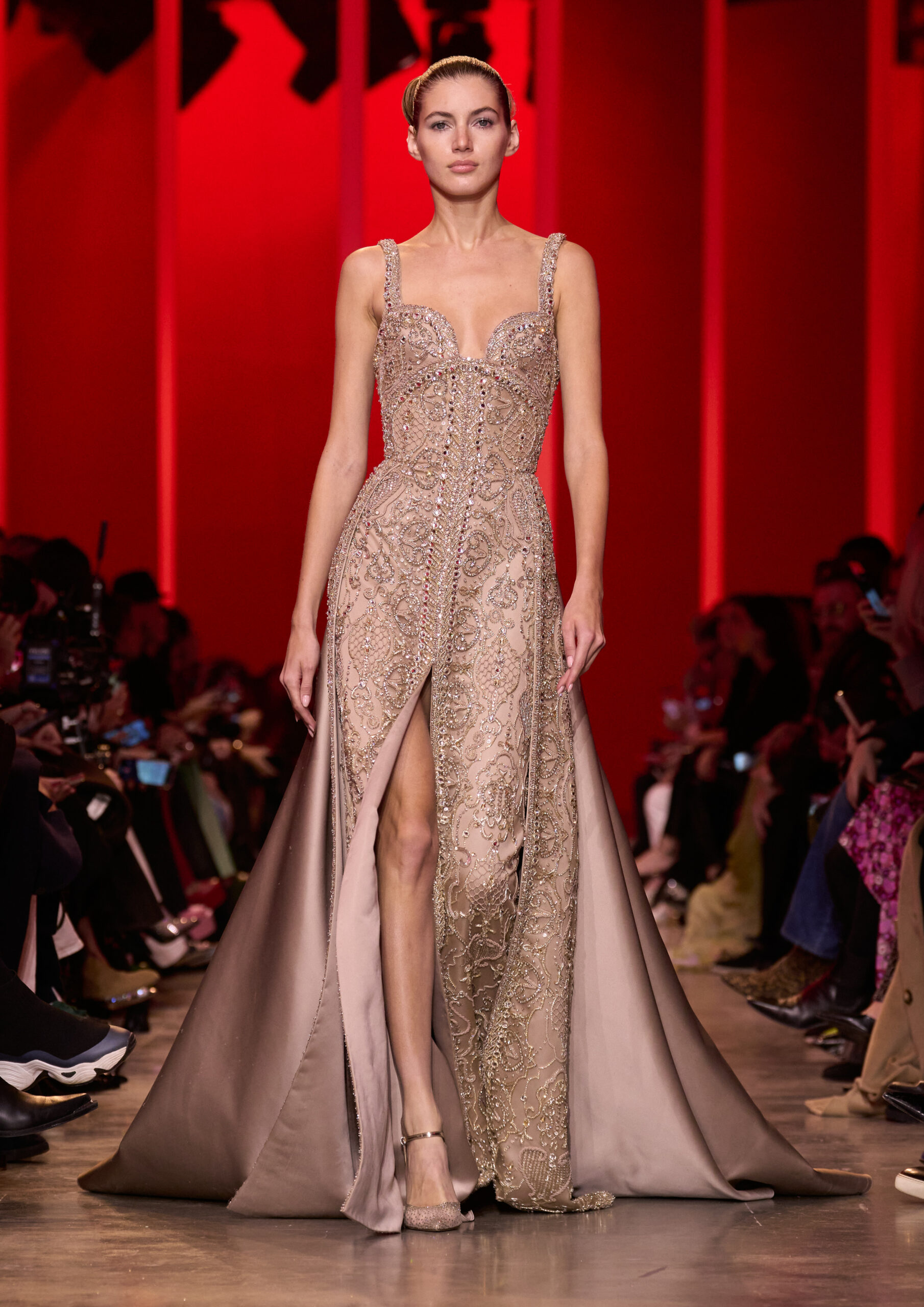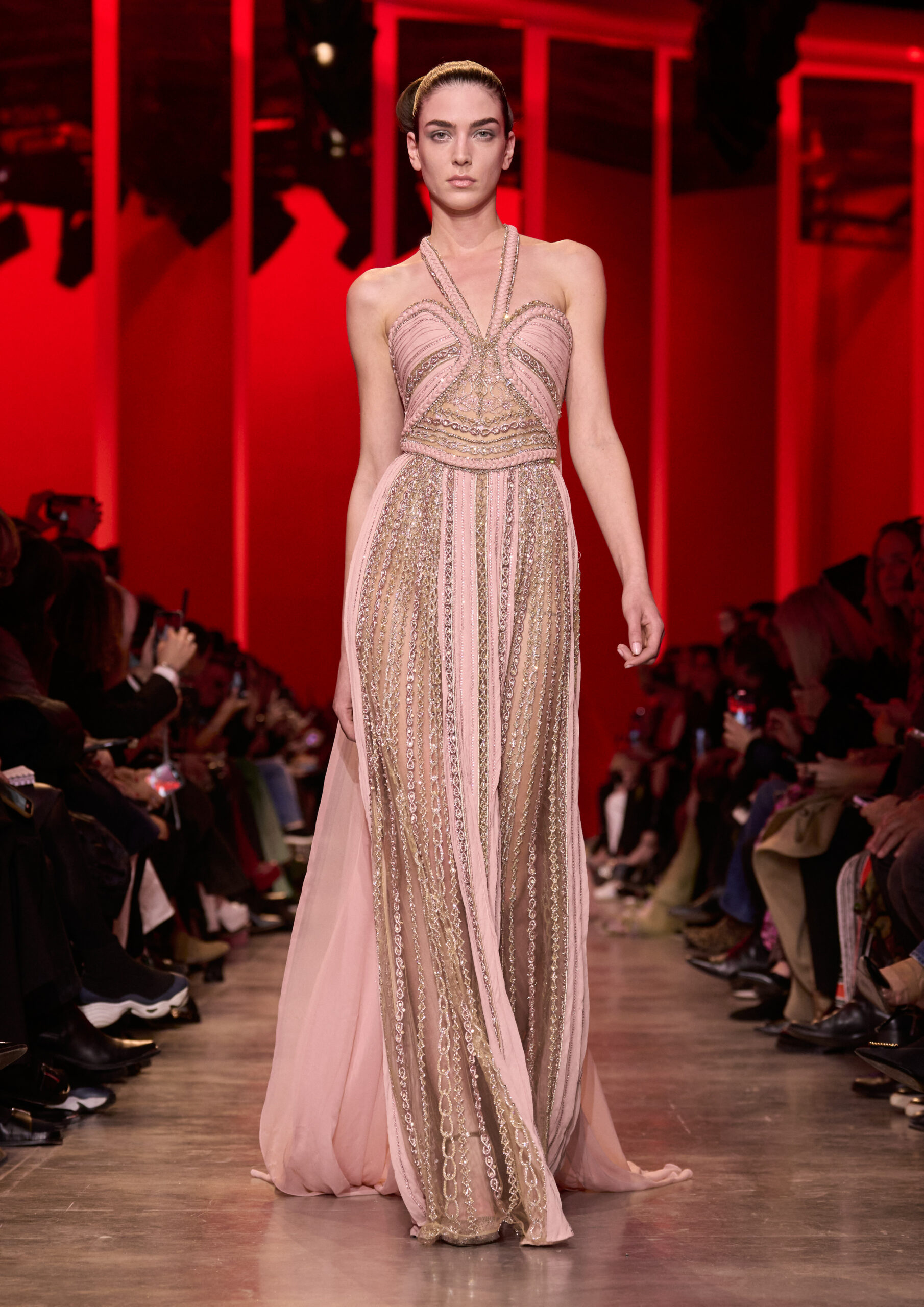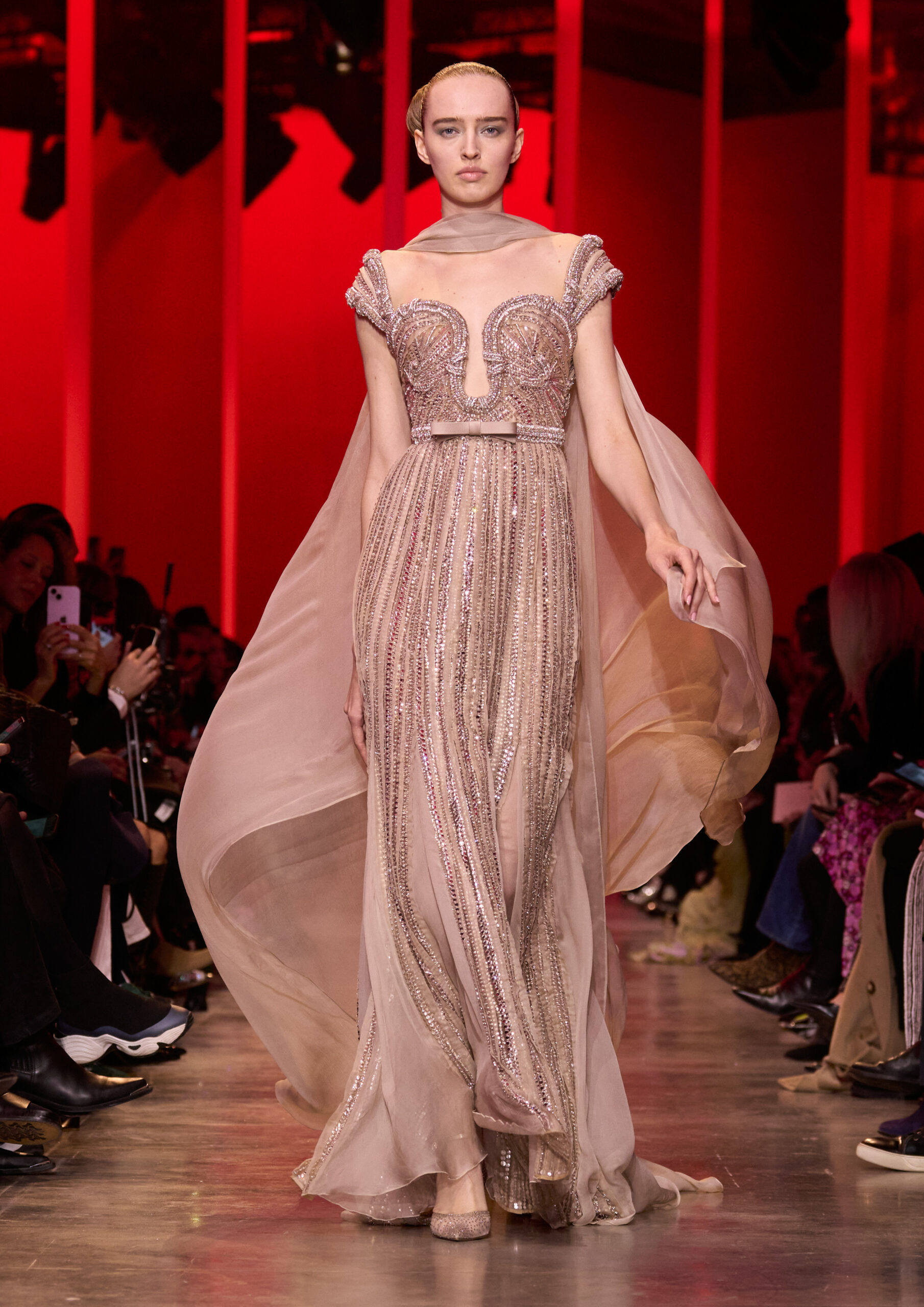 Le 24 janvier 2024, la maison Elie Saab a le plaisir de dévoiler son univers de haute couture pour la saison printemps/été 2024. Dans un écho aux ruelles labyrinthiques d’une medina enchantée et aux caresses d’une brise désertique, Elie Saab présente une collection captivante, un écrin de secrets millénaires prêts à être dévoilés.