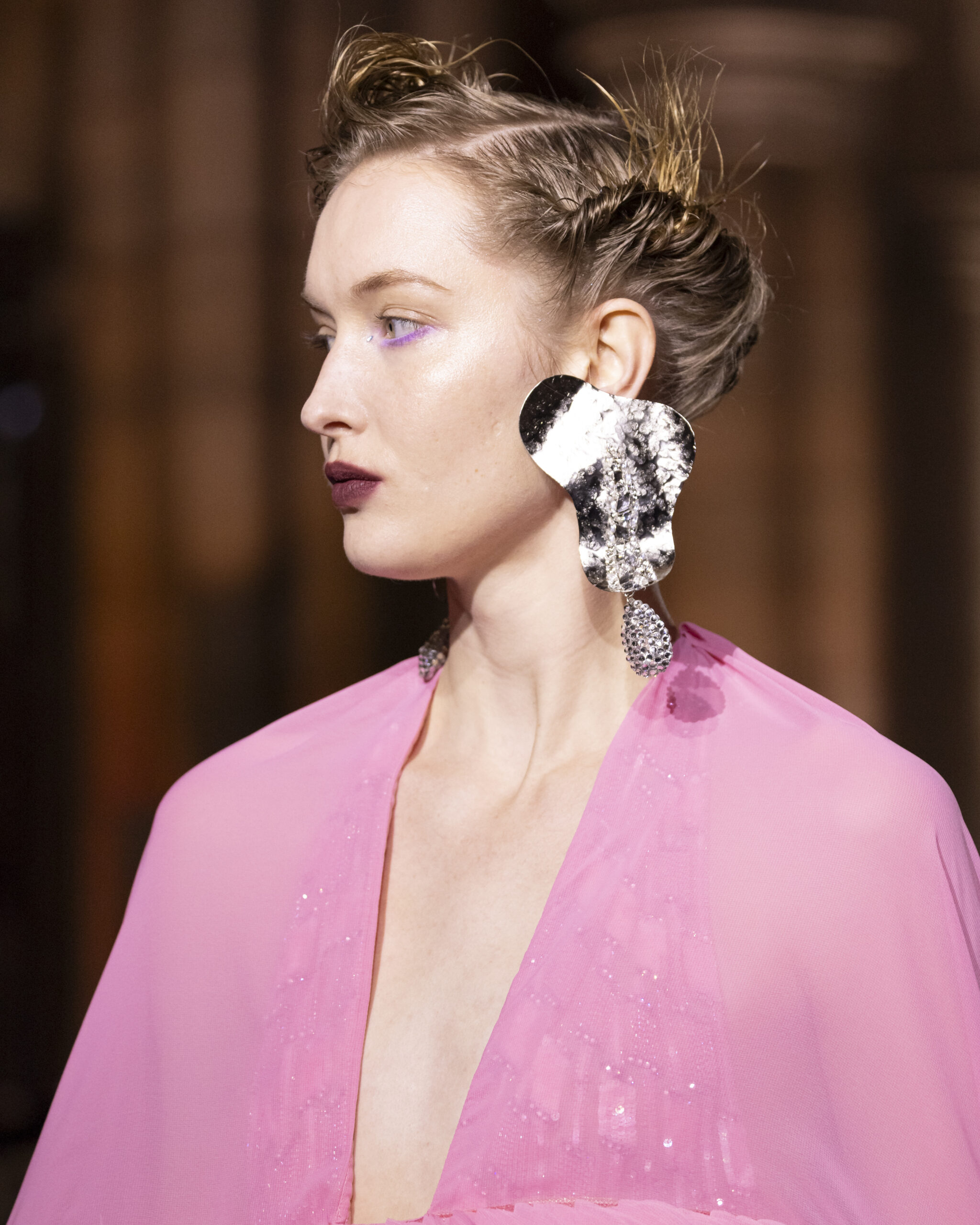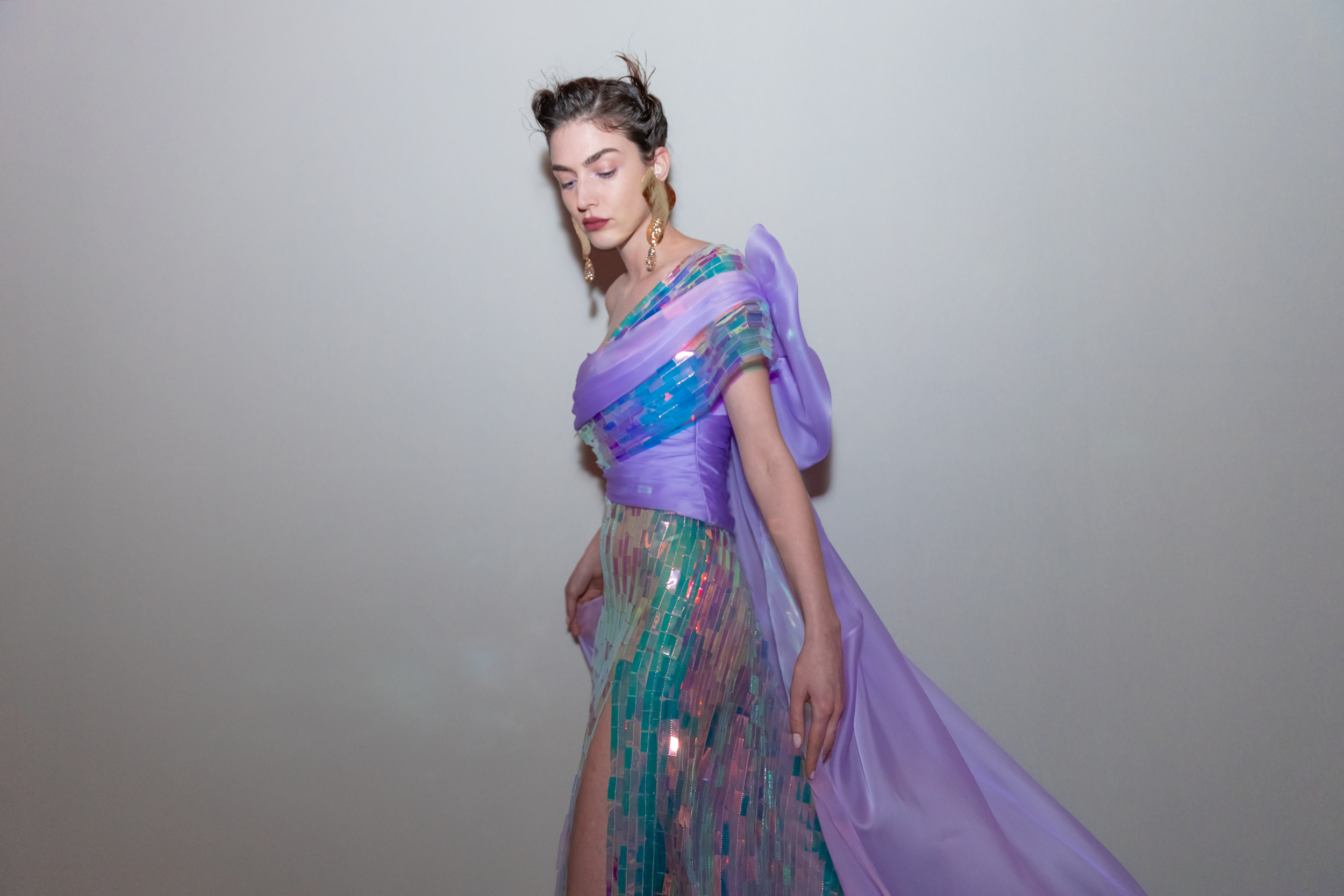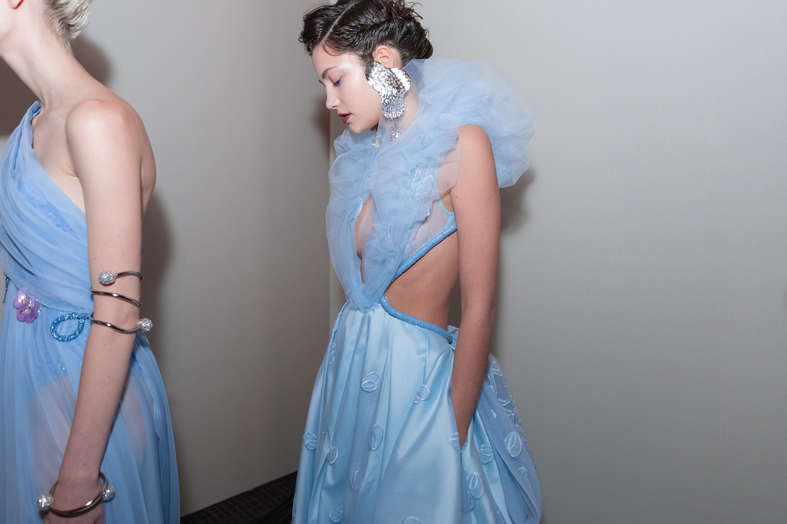 Le récit enchanteur et les éléments d’un autre monde s’entremêlent harmonieusement dans le tissu de la collection, offrant une sélection de matériaux qui éveille les émotions et déploie un paysage de rêve. Le spectre de couleurs comprend des satins irisés, des mousselines diaphanes et des drapés duchesse, soulignant l’élégance discrète, la sophistication structurée des manteaux longs, l’attention portée à la précision architecturale et les pièces sculpturales volumineuses qui repoussent les limites de la forme.