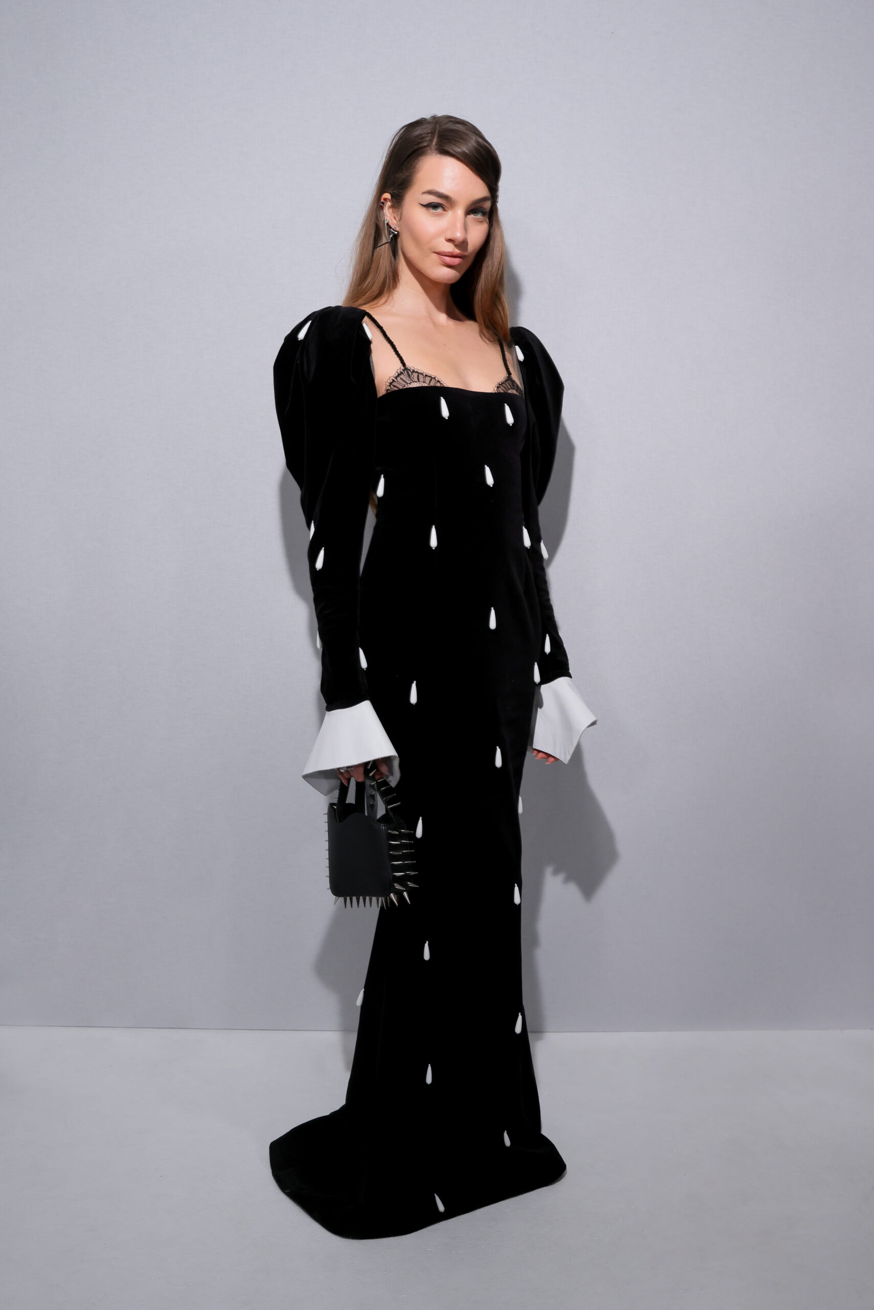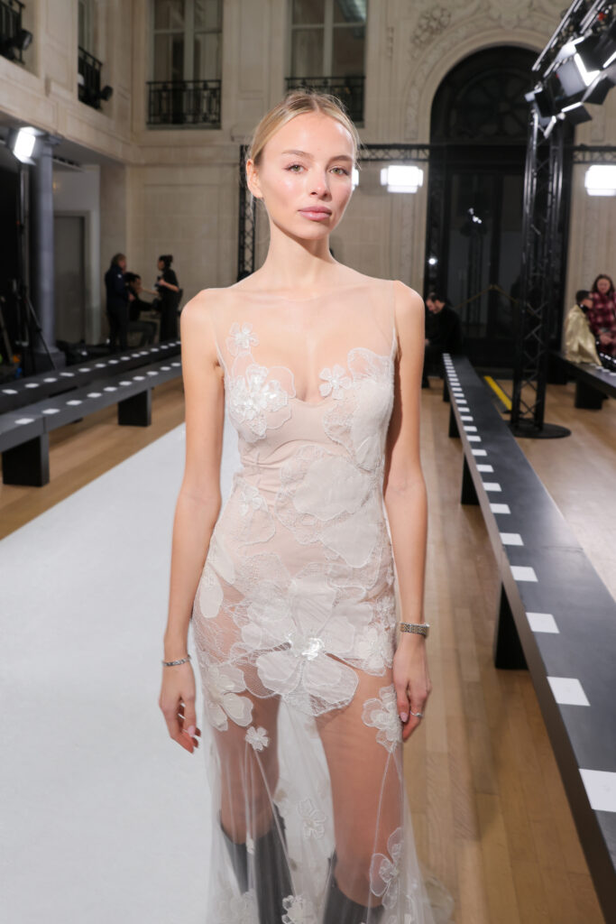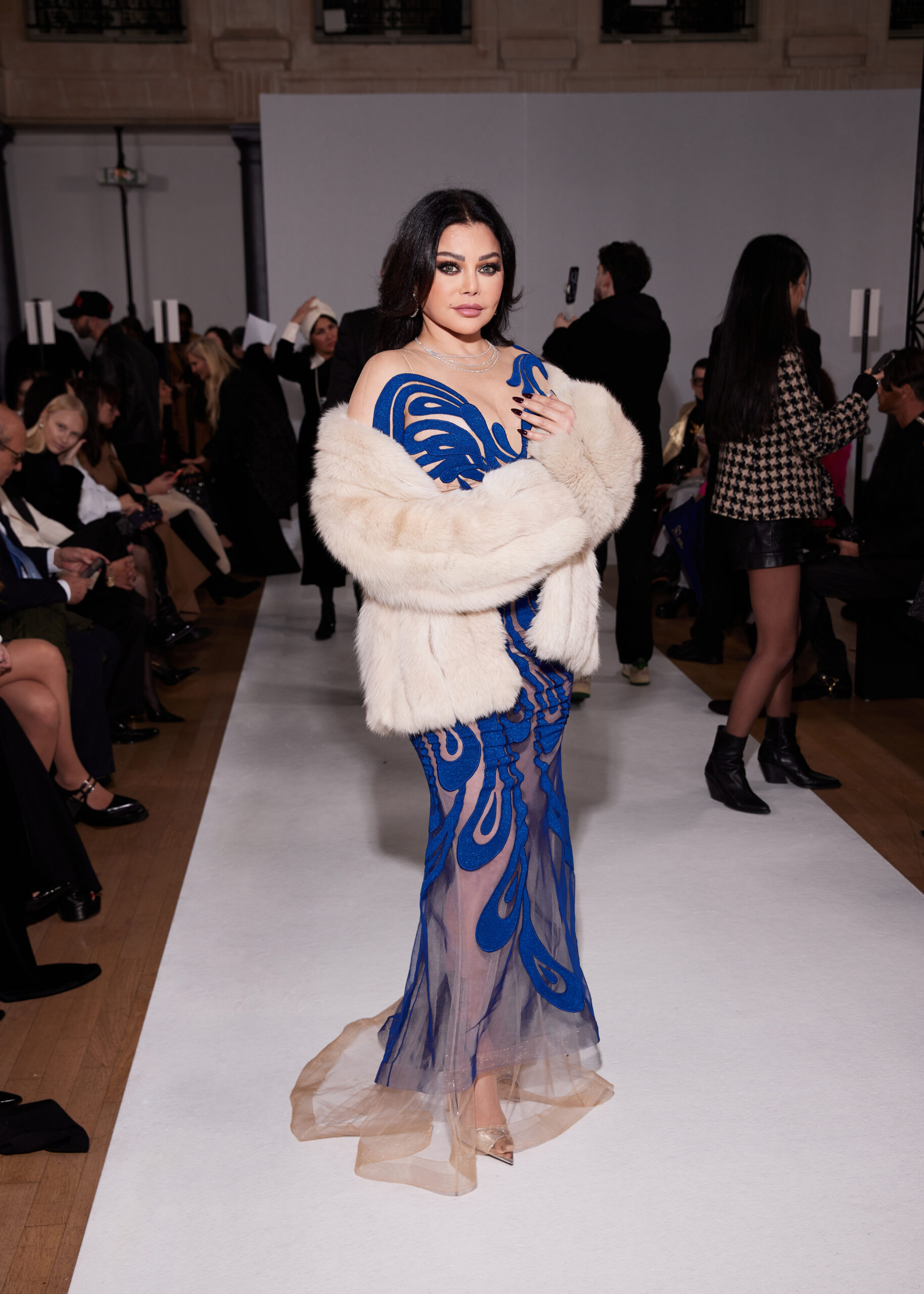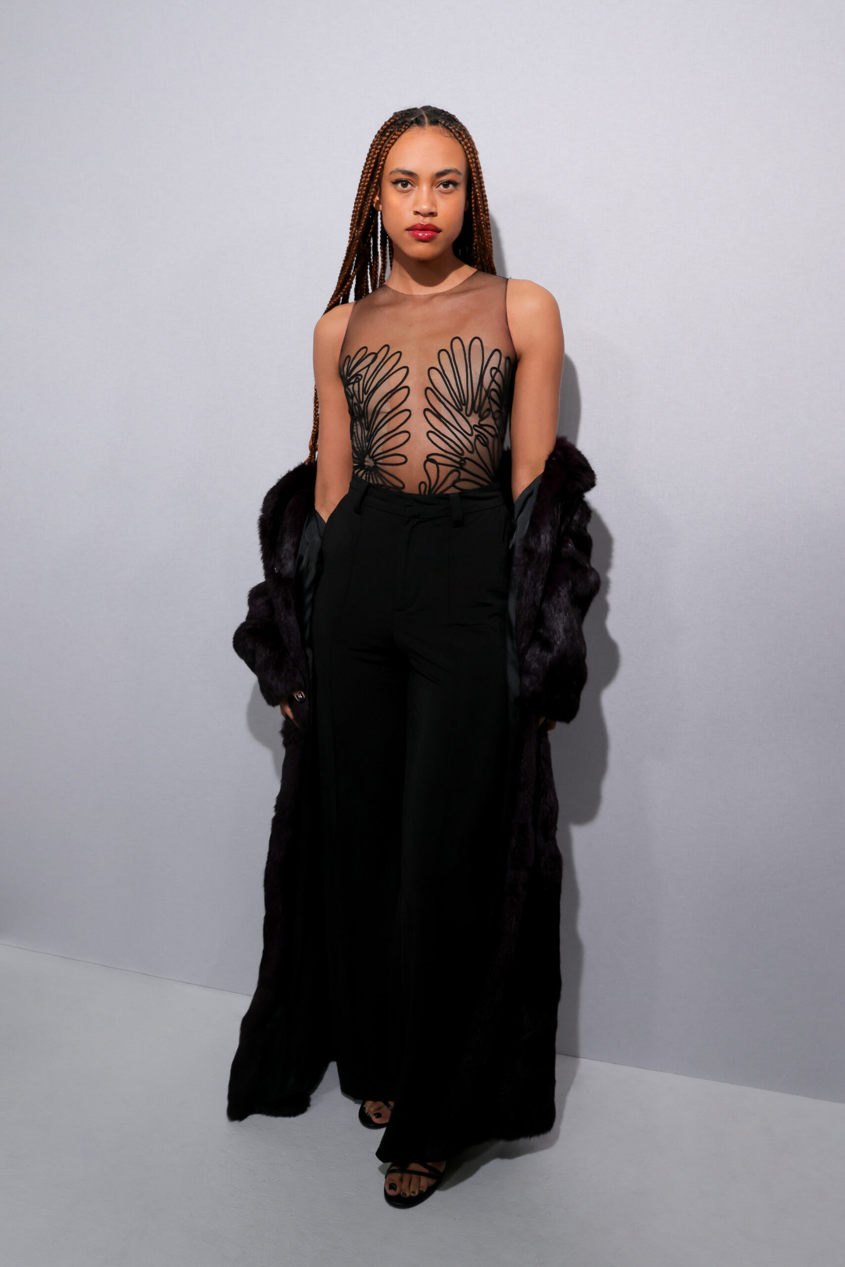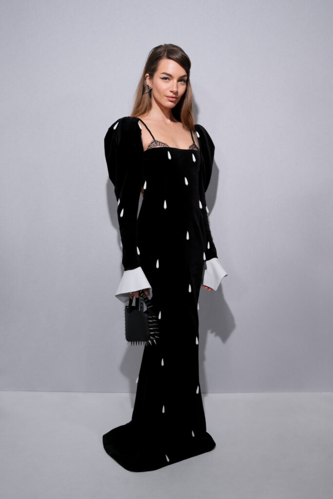 L’assistance distinguée comprenait des noms tels que Bella Thorne, Jordyn Woods, Haifa Wehbe, et Mara Lafontan, ainsi que la noblesse européenne avec la Princesse Maria Carolina et la Princesse Maria Chiara de Bourbon des Deux-Siciles, soulignant l’intersection de la mode, du cinéma, de la musique et de l’aristocratie. Le défilé a également été embelli par la présence de figures émergentes de la mode telles que Sasha Ray, Anja Winkelmann, Clemence Lopez, Clemence Bertrand, Hanna Lhoumeau, Raphael Say, Marie-Lou Nurk et Marina Mustaparta, ajoutant une touche de fraîcheur et de diversité.