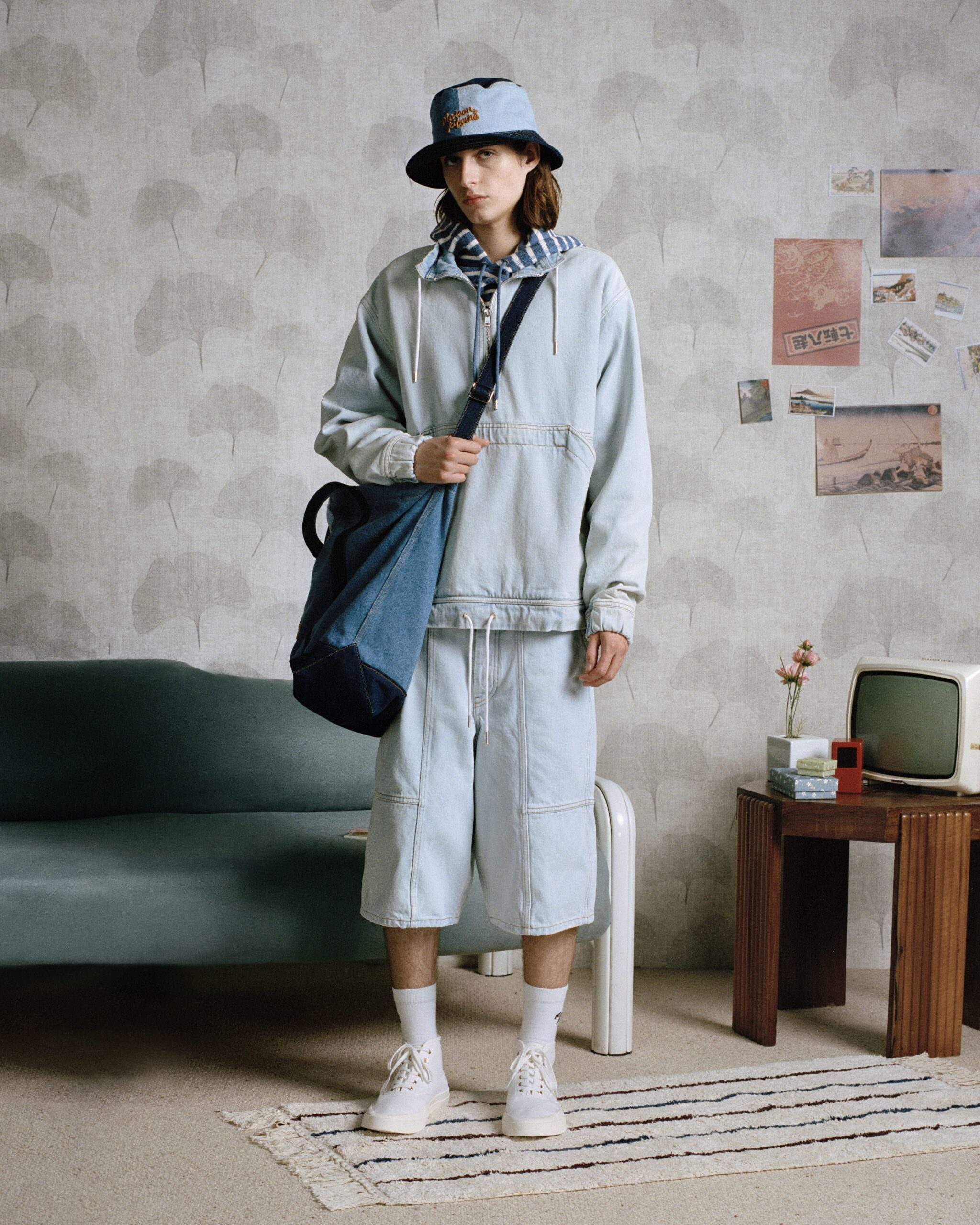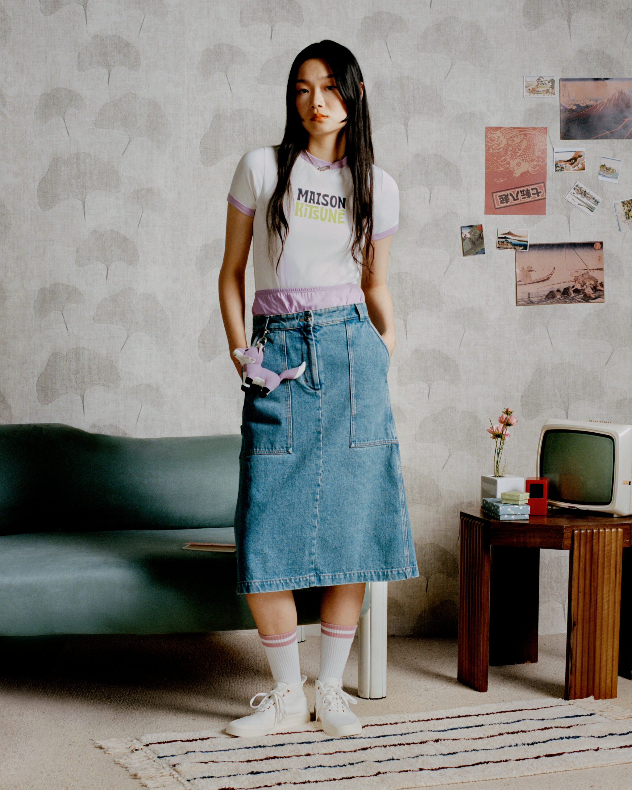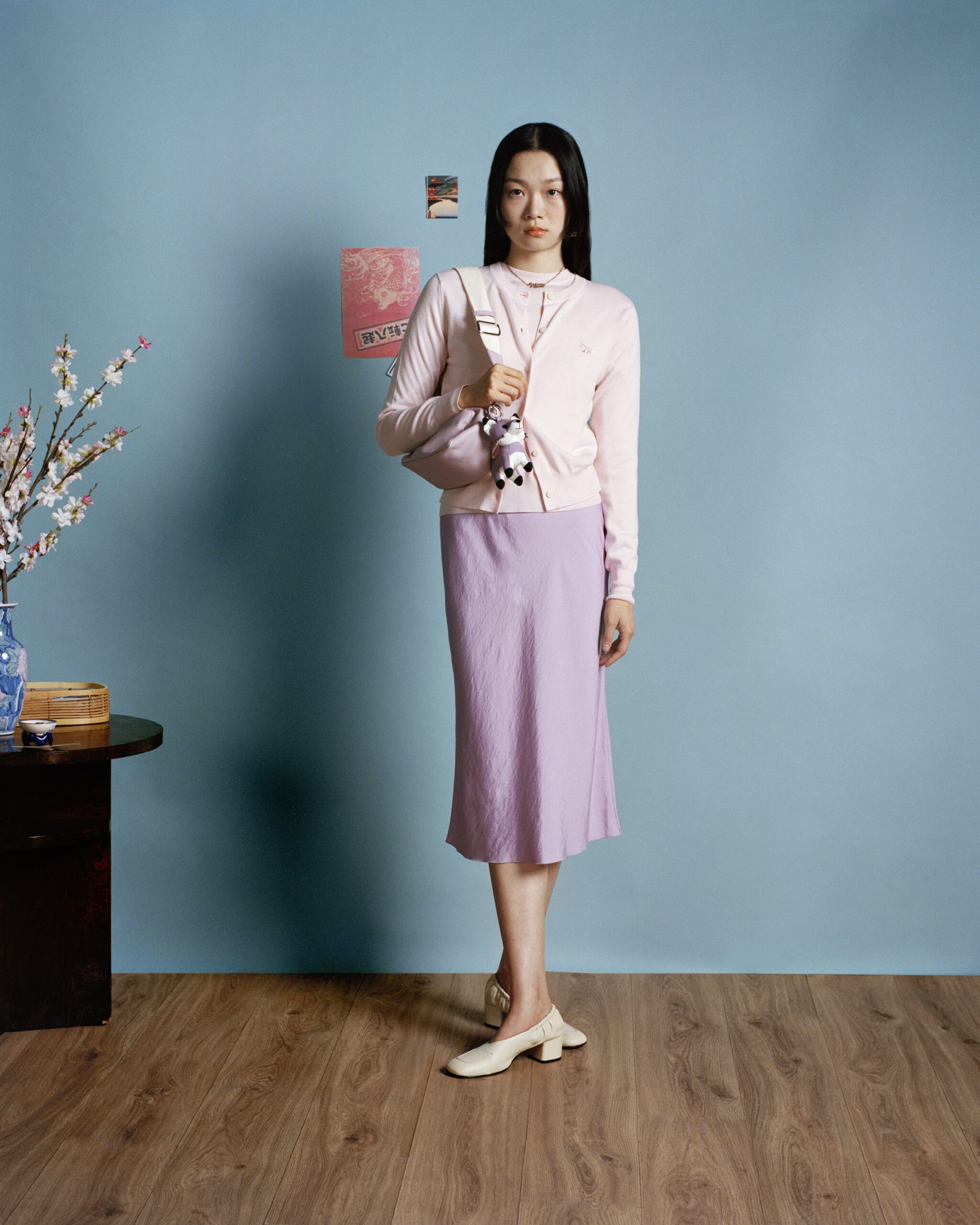 L’aventure commence dans la ville, où une exploration des basiques urbains révèle une palette empreinte de la fraîcheur des couleurs de l’aurore, mêlant des tons bleutés et rosés. Les chemises en coton à fines rayures se fondent dans un nouveau motif dégradé, orné de Baby Fox. Dans cet environnement urbain, les lignes épurées rencontrent des fleurs en éclosion, illustrant un printemps vibrant et plein de vie.