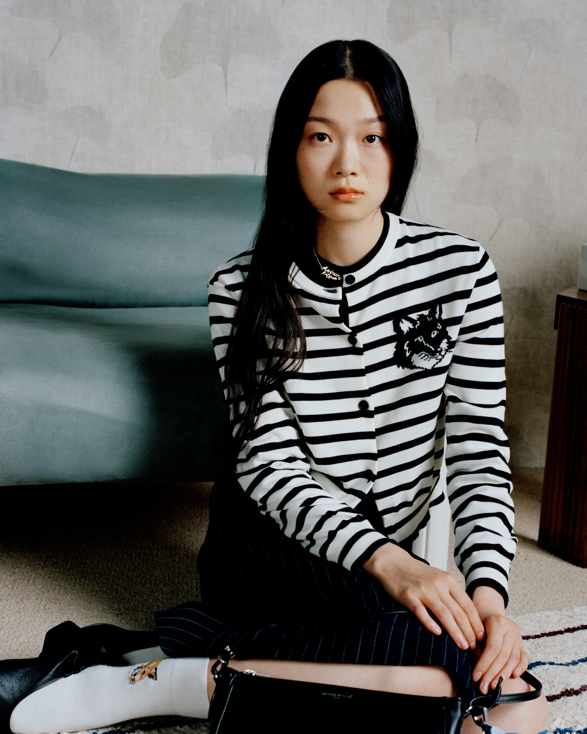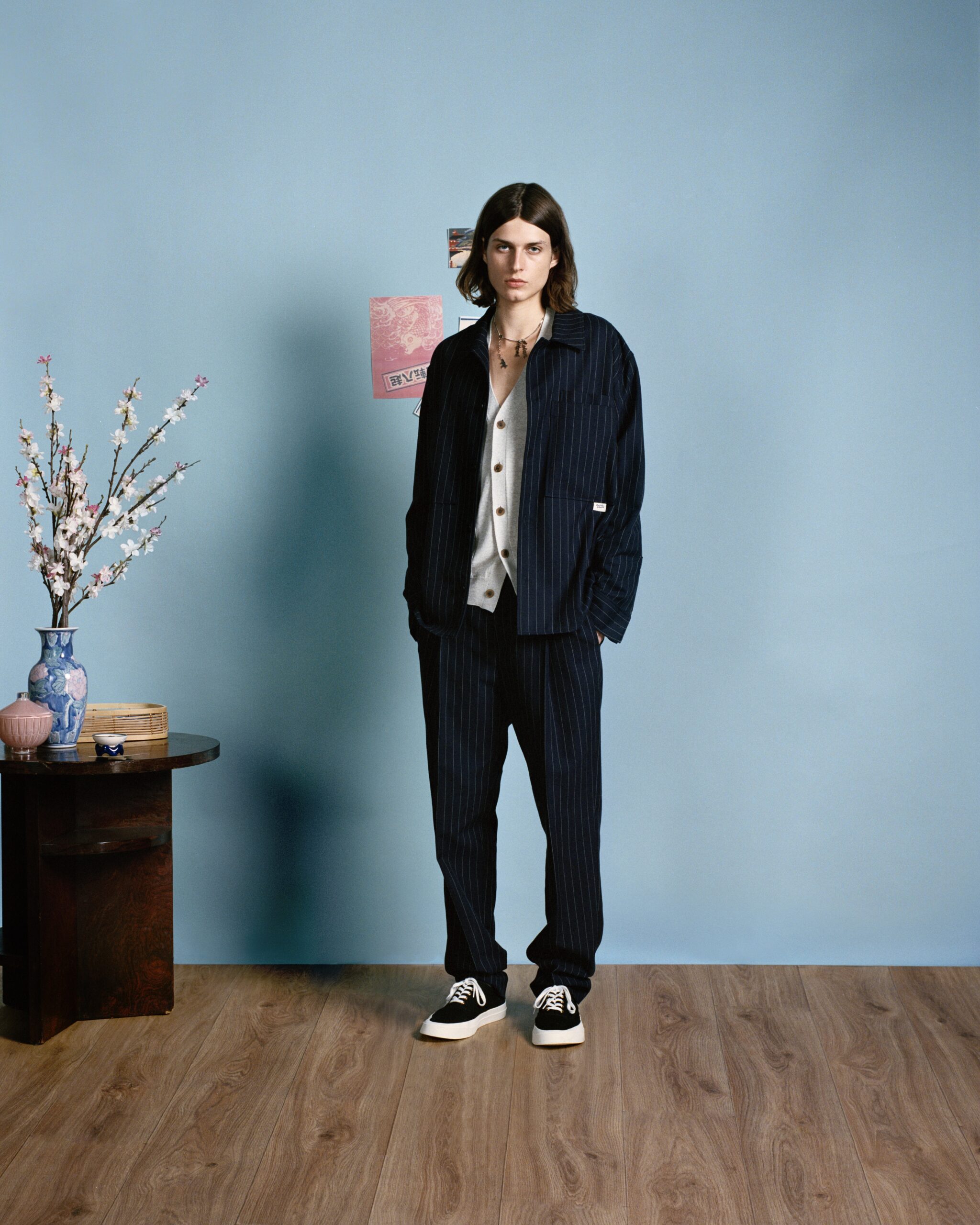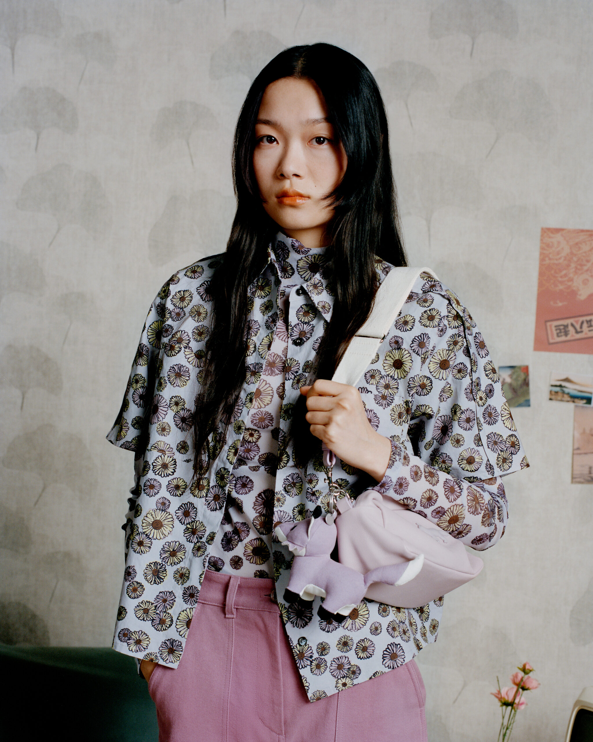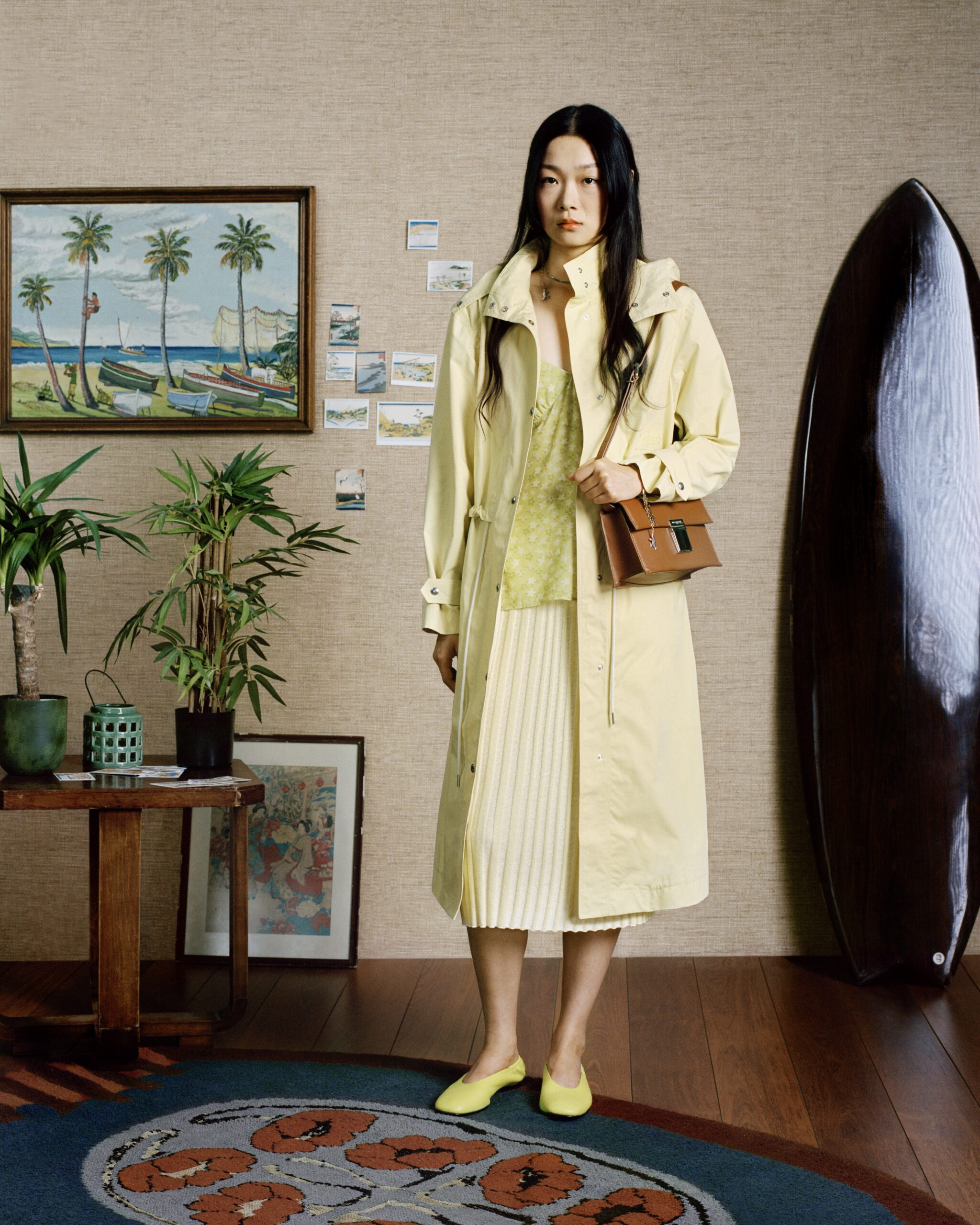 L’aventure commence dans la ville, où une exploration des basiques urbains révèle une palette empreinte de la fraîcheur des couleurs de l’aurore, mêlant des tons bleutés et rosés. Les chemises en coton à fines rayures se fondent dans un nouveau motif dégradé, orné de Baby Fox. Dans cet environnement urbain, les lignes épurées rencontrent des fleurs en éclosion, illustrant un printemps vibrant et plein de vie.