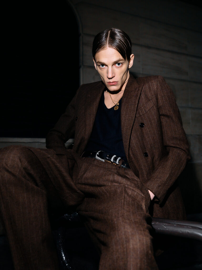 Cette collection explore les frontières de plus en plus subtiles entre masculin et féminin, entre le jour et la nuit, tout en approfondissant la recherche sur le sens de la masculinité, devenant ainsi de plus en plus personnelle.