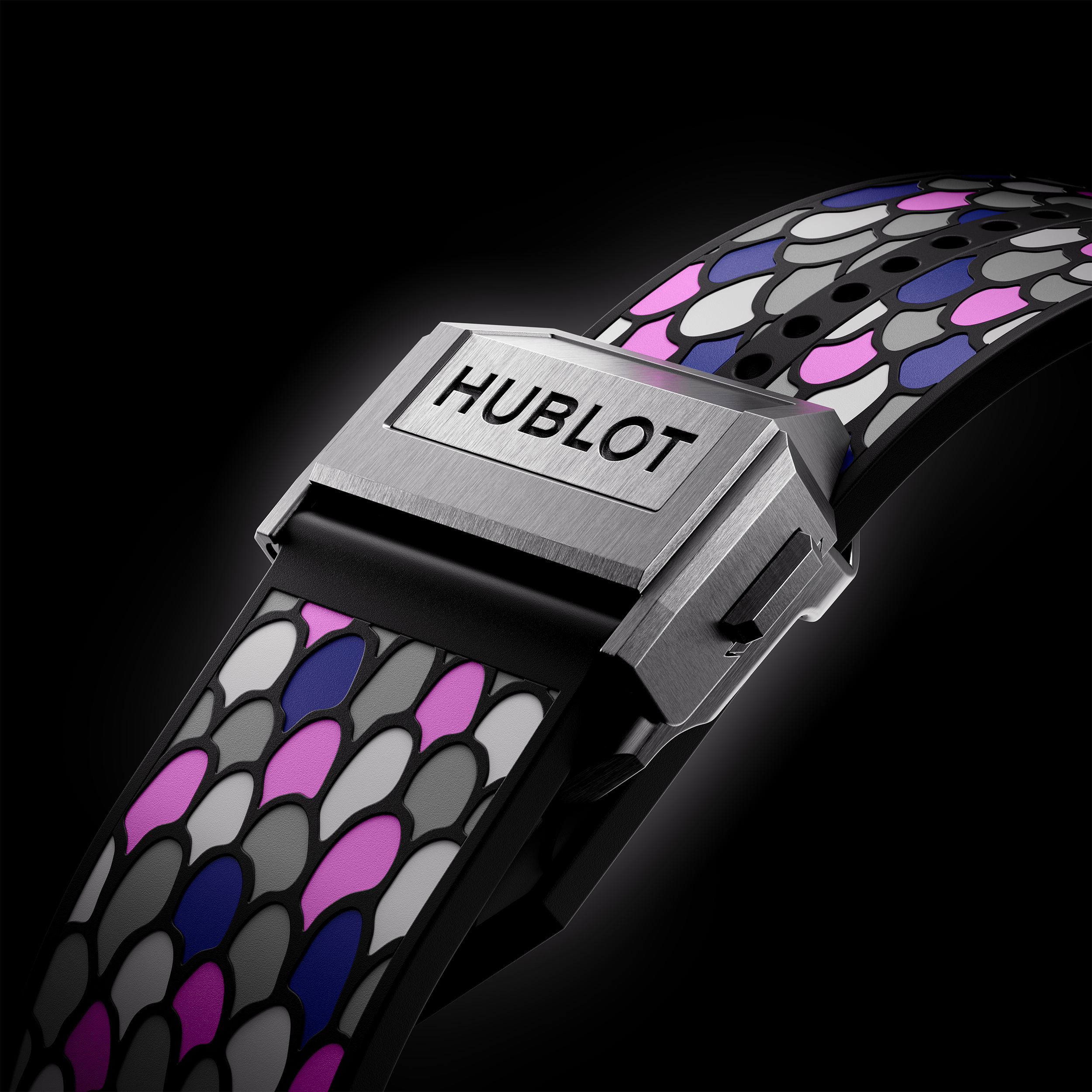 Sur un bracelet caoutchouc inédit parsemé d’écailles en nano-vulcanisation, la créature légendaire se prolonge en une marqueterie unique réalisée à la main. Un savoir-faire millénaire chinois rencontre ainsi l’expertise horlogère d’Hublot dans un mariage des contraires d’une rare sophistication.