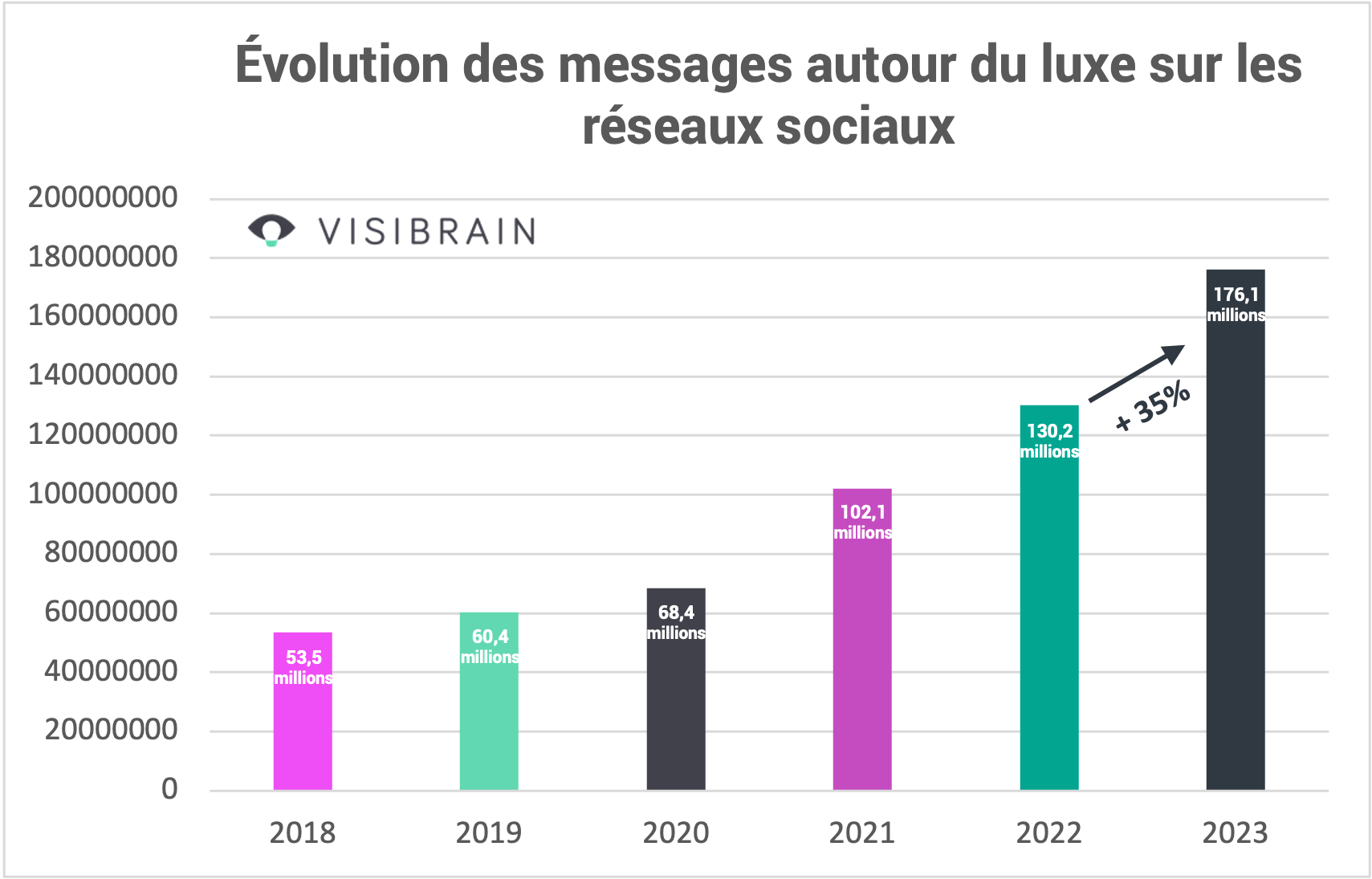 L’année 2023 marque un tournant pour l’industrie du luxe dans l’espace numérique. Selon une étude récente de Visibrain, un outil de veille des réseaux sociaux, les maisons de luxe ont connu une présence record en ligne avec 176,1 millions de messages publiés, une augmentation de 35% par rapport à l’année précédente.