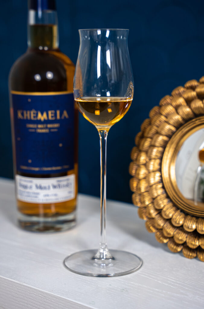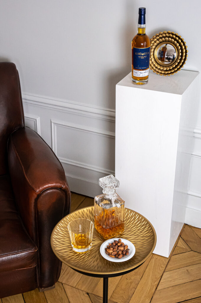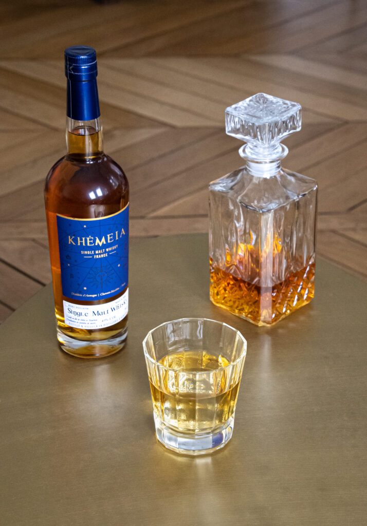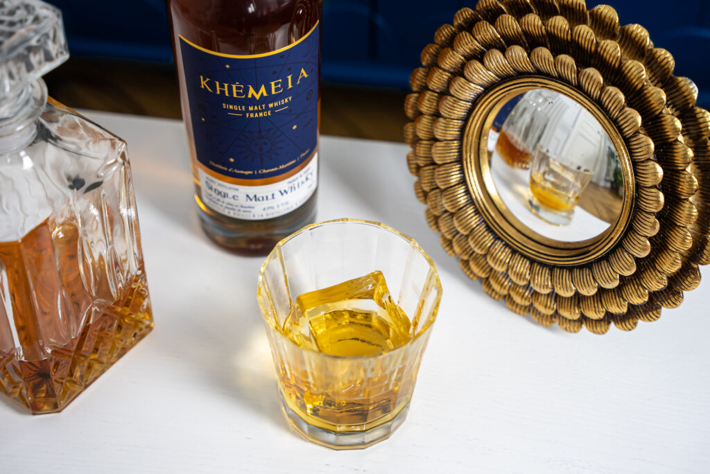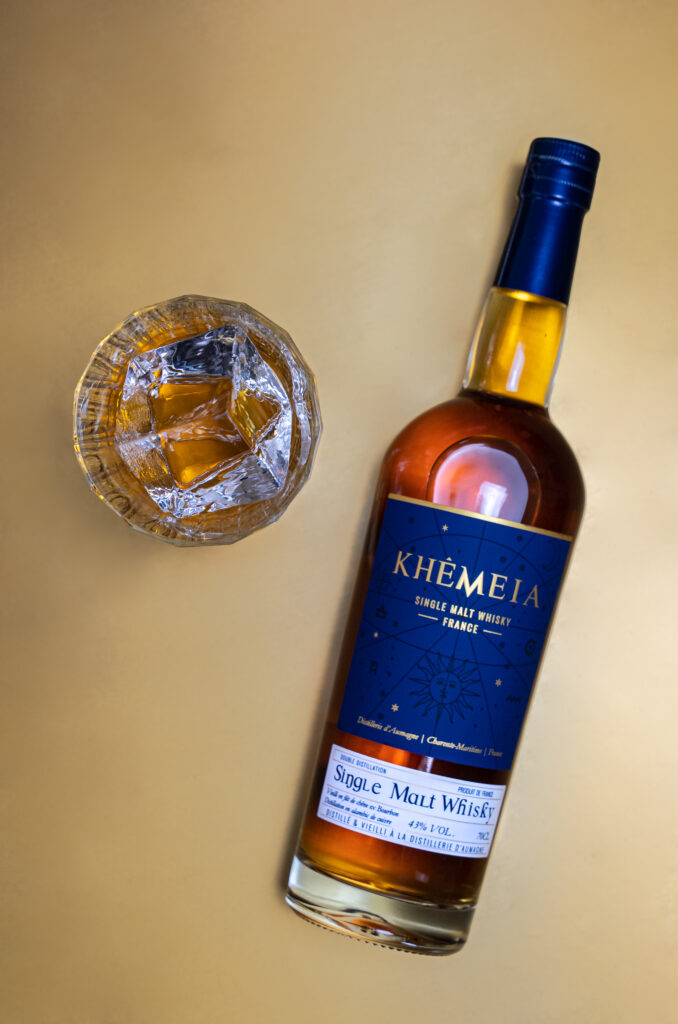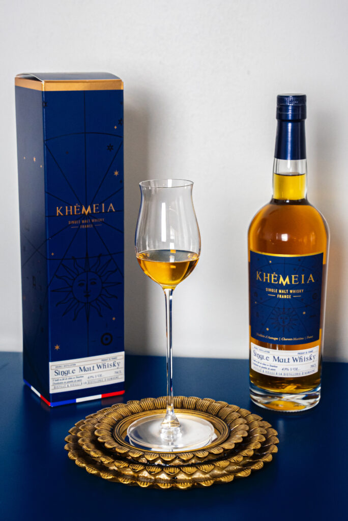 Au cœur de l’élaboration de Khêmeia se trouve la distillation en alambic à repasse charentais, un choix qui marque la singularité de ce whisky. Cette technique, traditionnelle de la région, confère au spiritueux des qualités uniques, tant en termes de texture que d’arômes. Le vieillissement en fût de Bourbon durant plus de trois ans, sous l’influence des vents océaniques de la région, enrichit Khêmeia d’une complexité et d’une gourmandise incomparables.