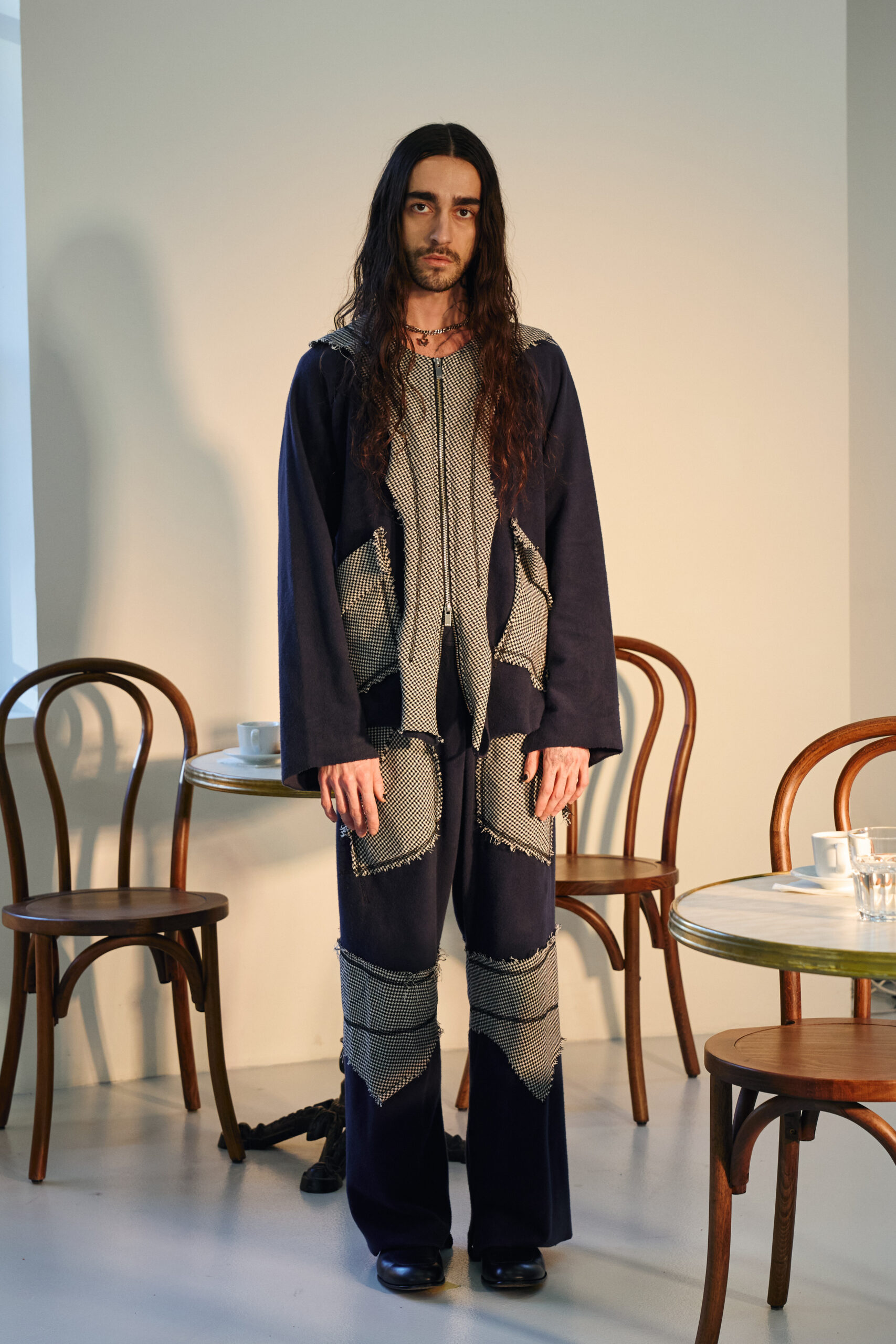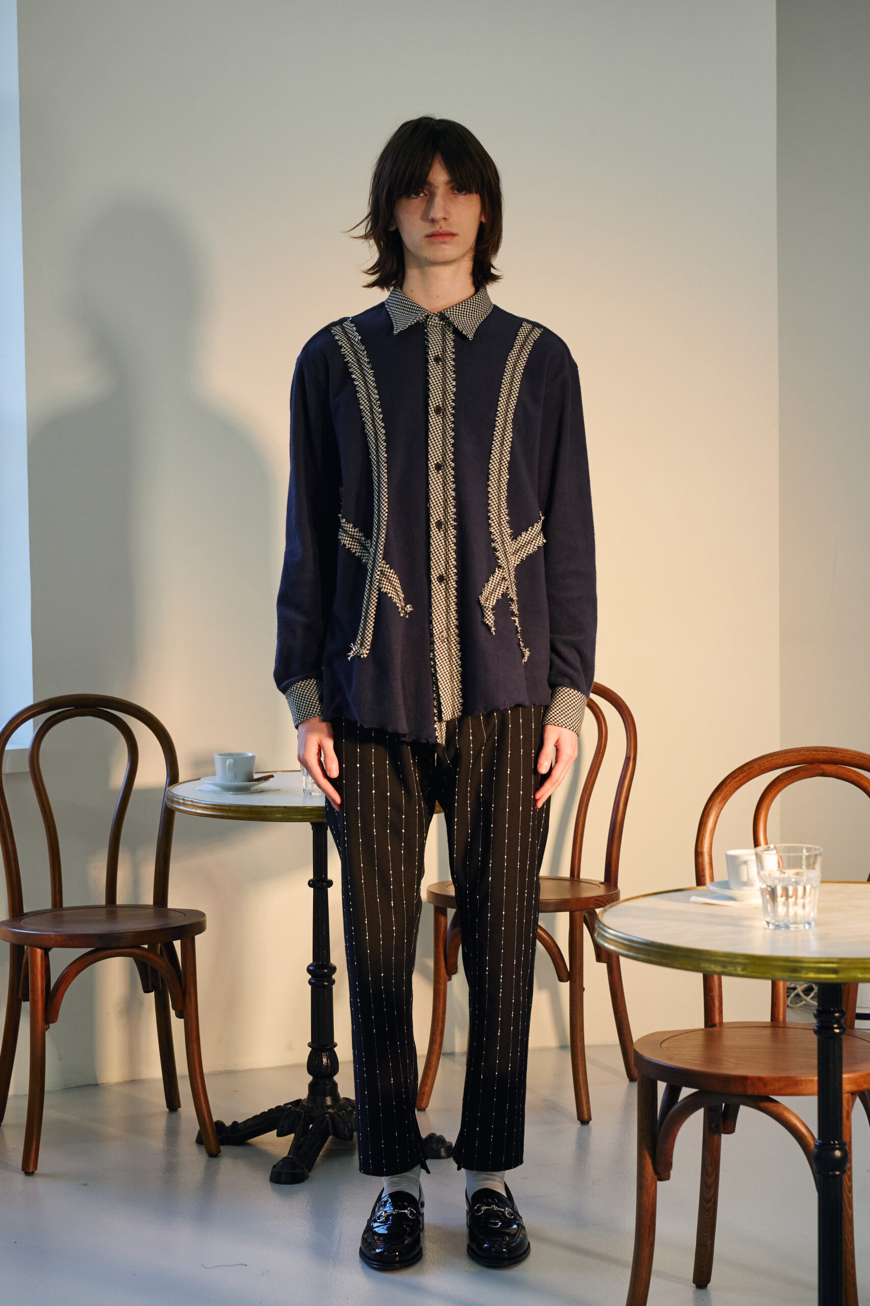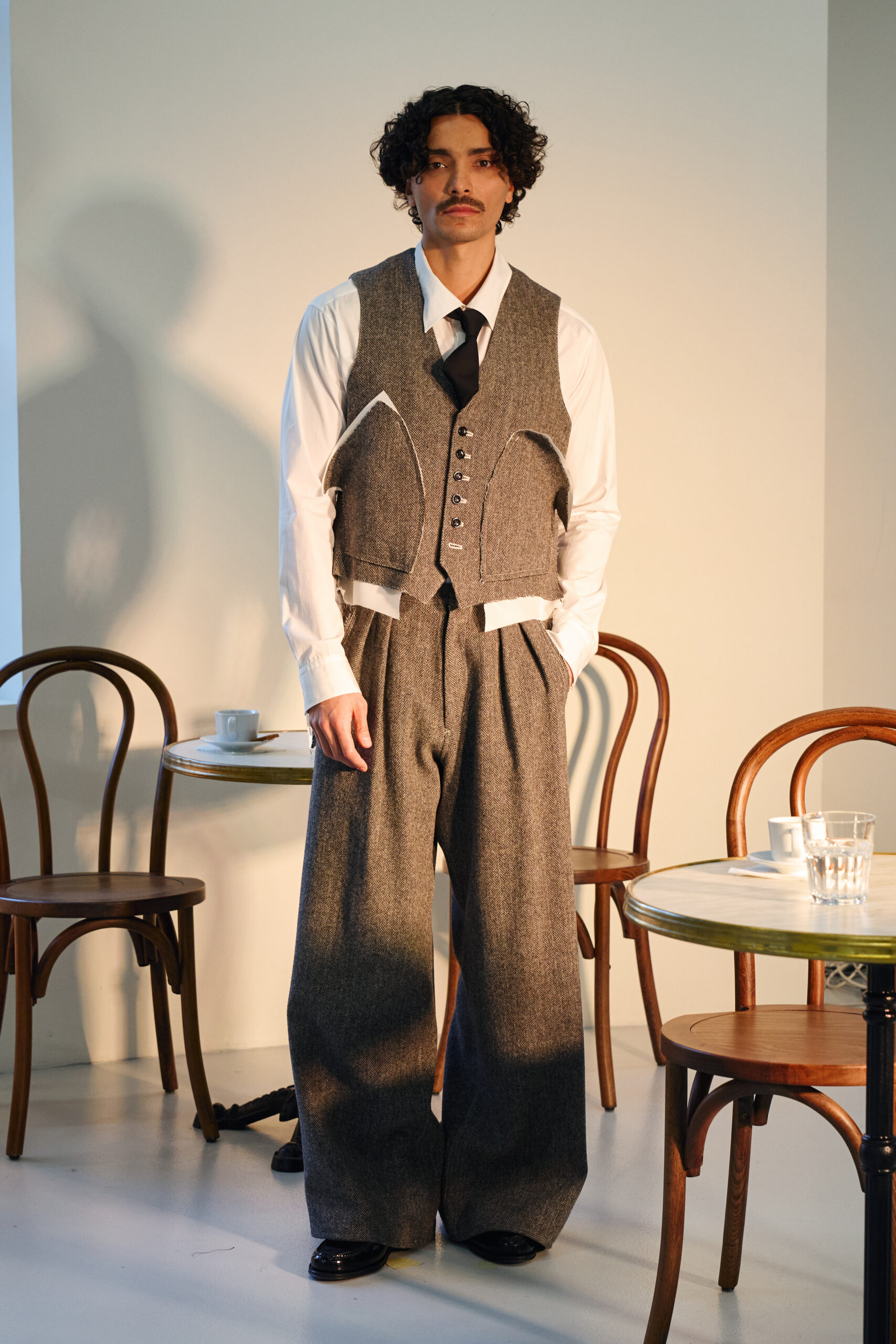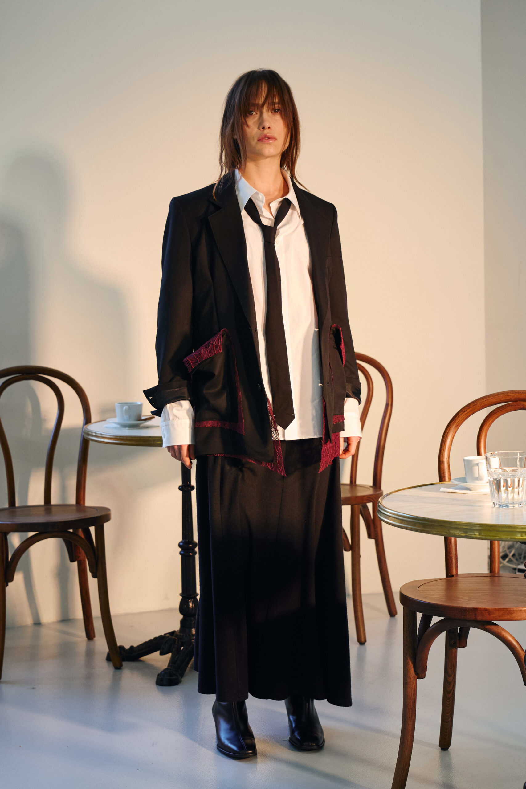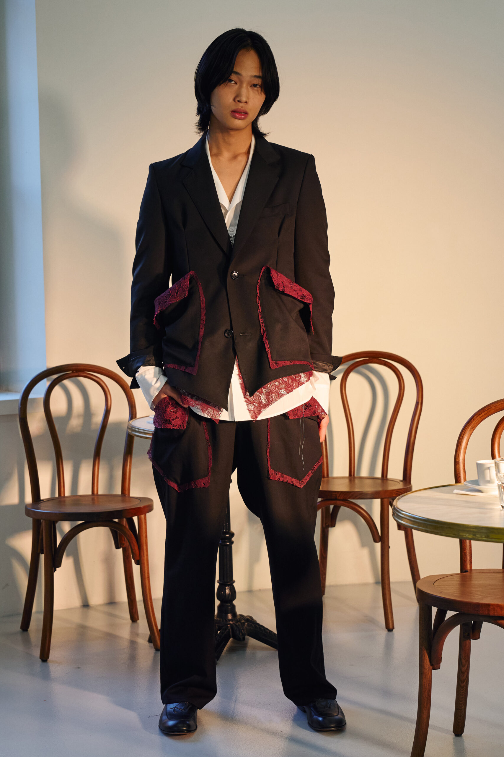 Teippei Fujita, en choisissant des tissus classiques plutôt que des tendances éphémères, illustre une approche de la mode qui privilégie la durabilité et la qualité. Chaque pièce de cette collection est conçue pour être non seulement belle mais aussi durable, incarnant un luxe responsable et conscient.