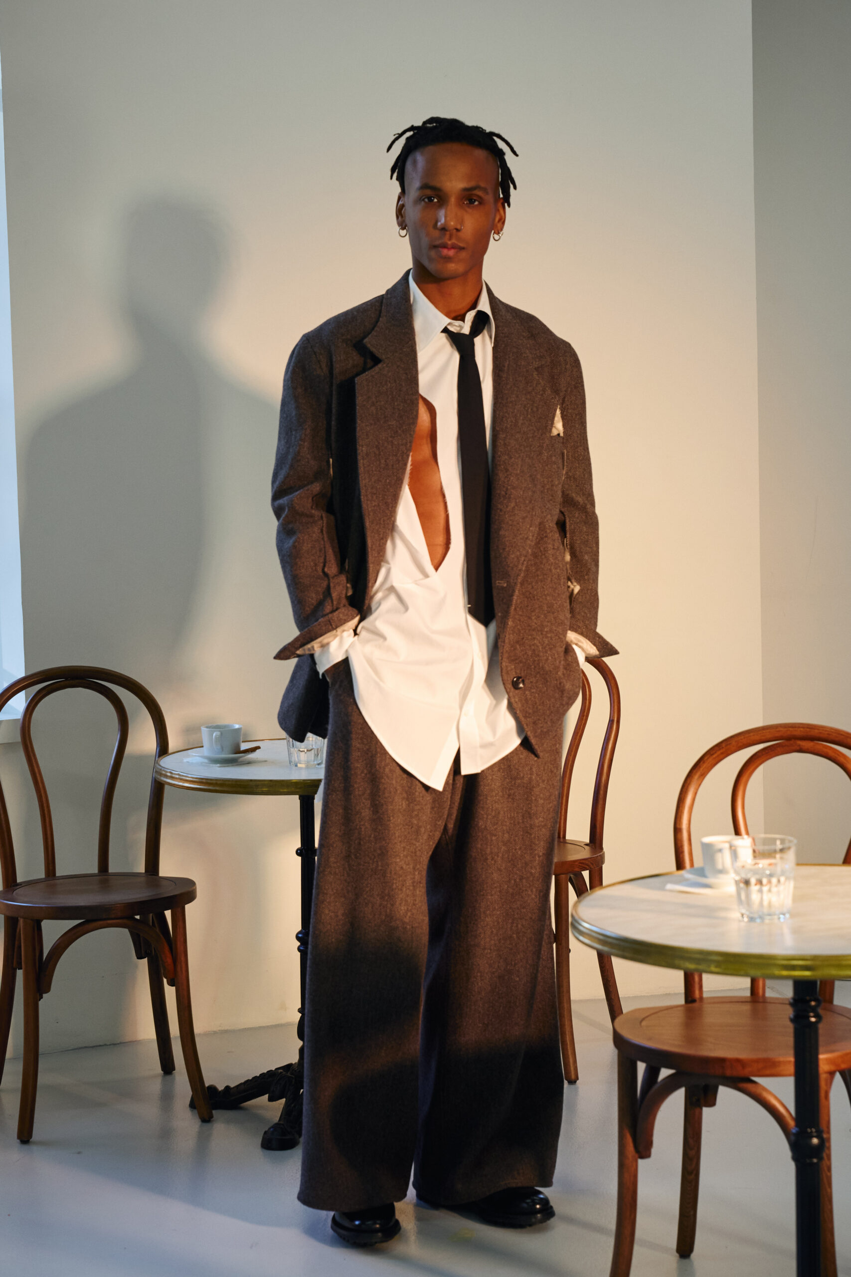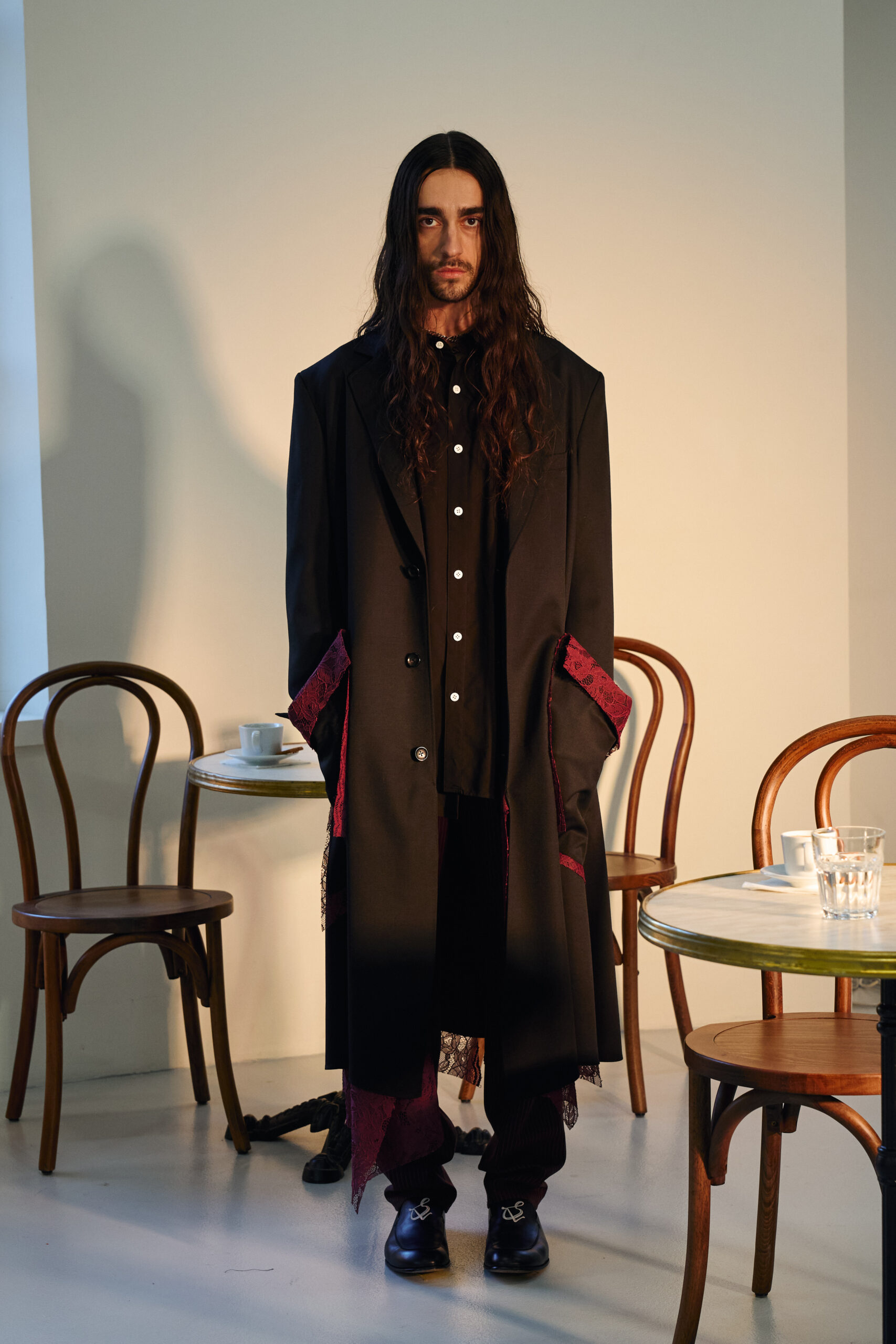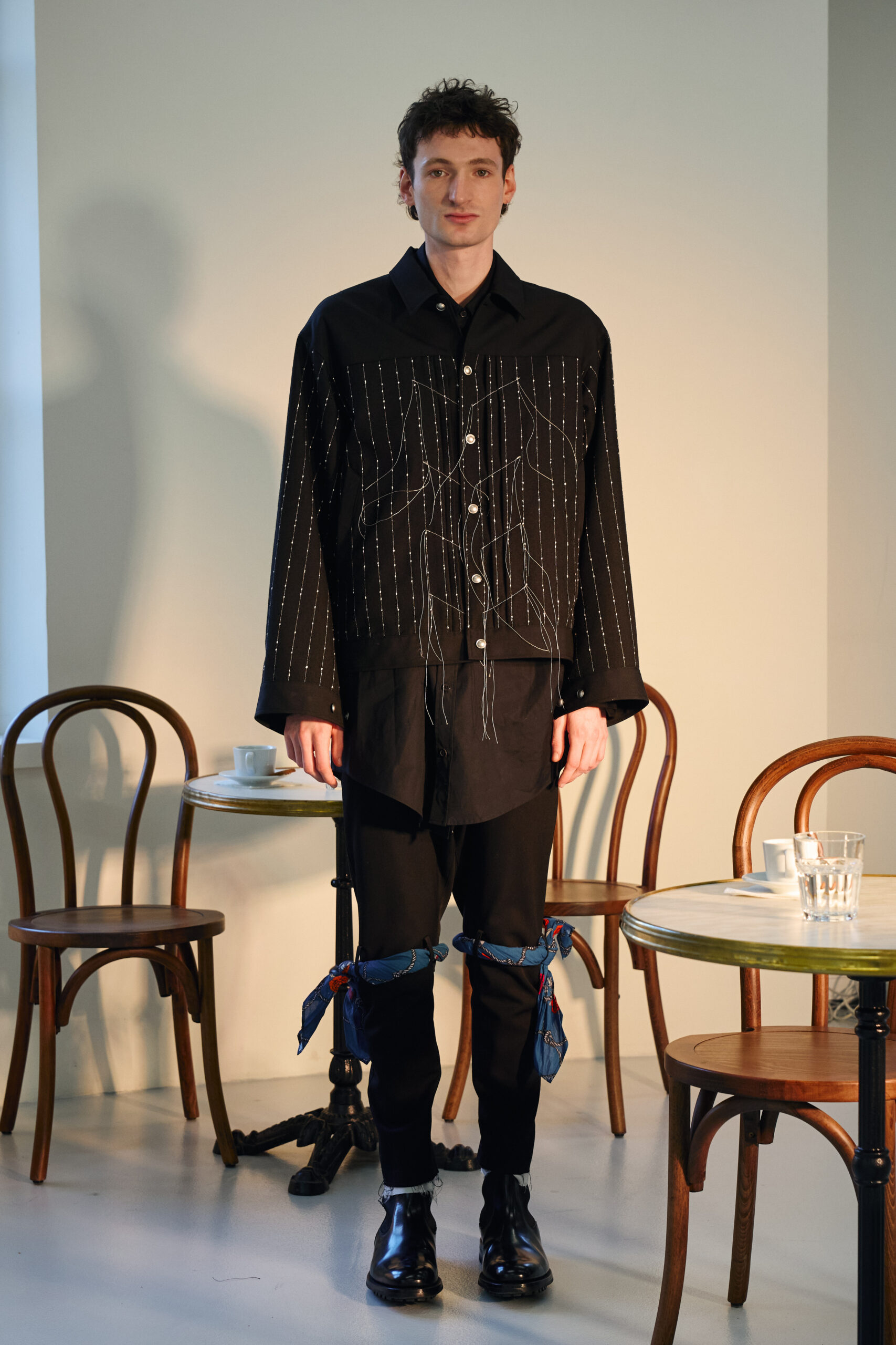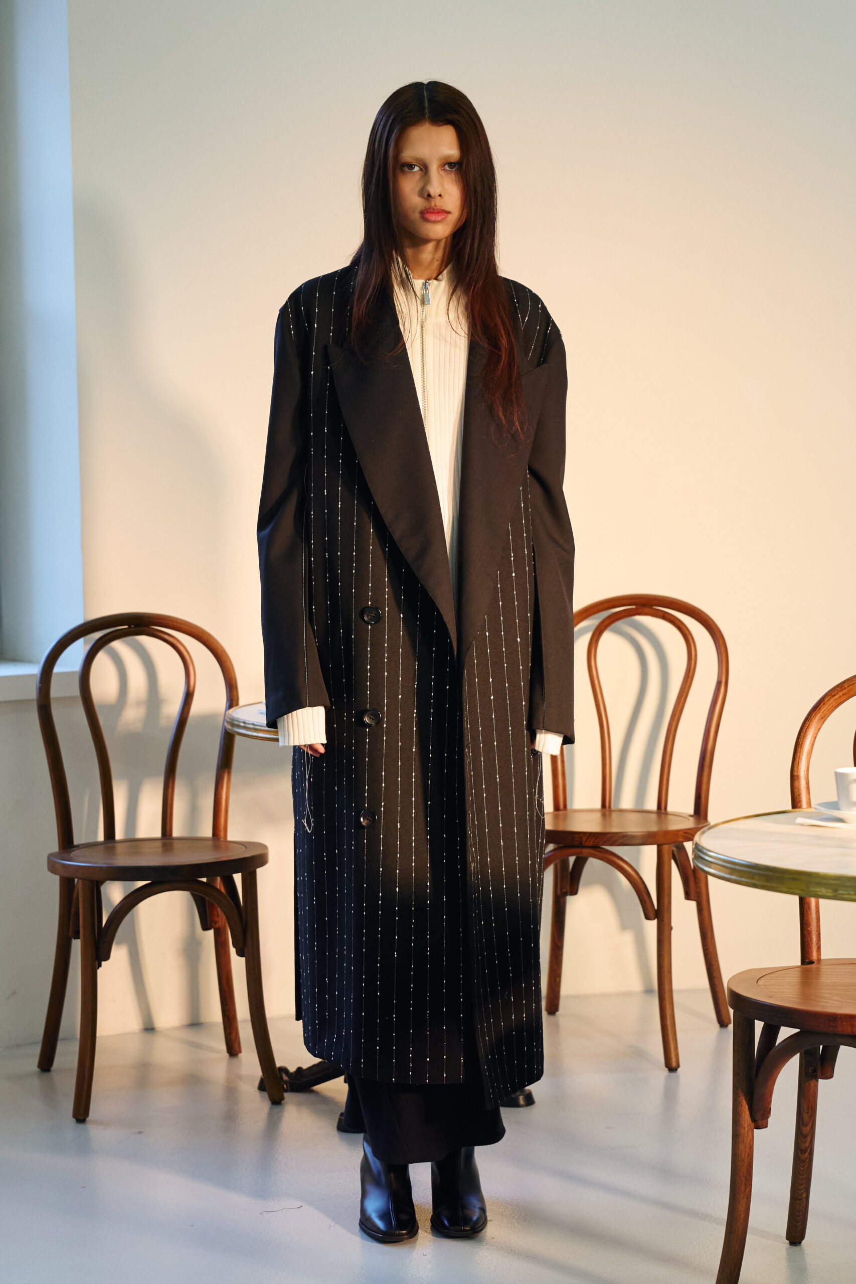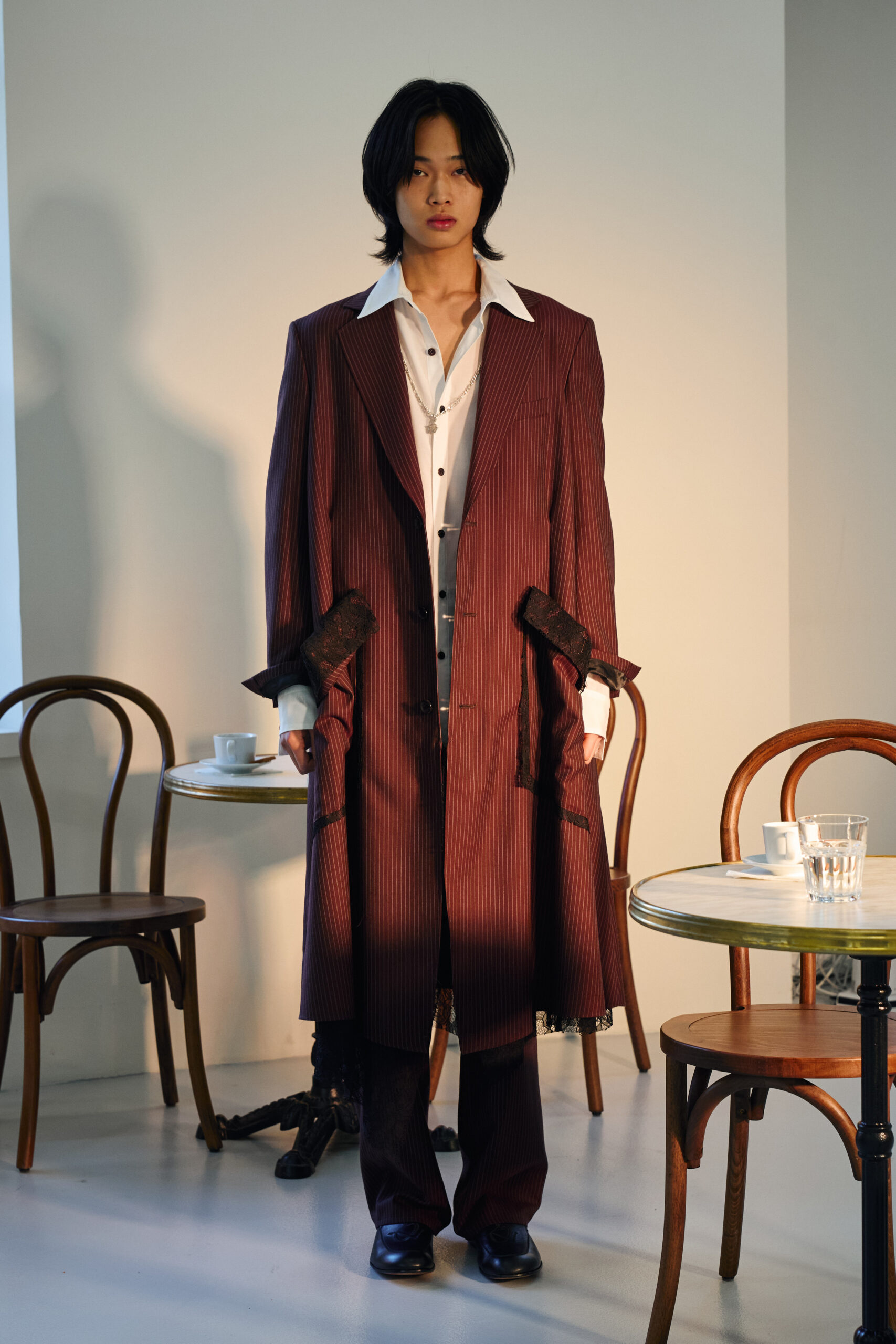 Teippei Fujita, en choisissant des tissus classiques plutôt que des tendances éphémères, illustre une approche de la mode qui privilégie la durabilité et la qualité. Chaque pièce de cette collection est conçue pour être non seulement belle mais aussi durable, incarnant un luxe responsable et conscient.