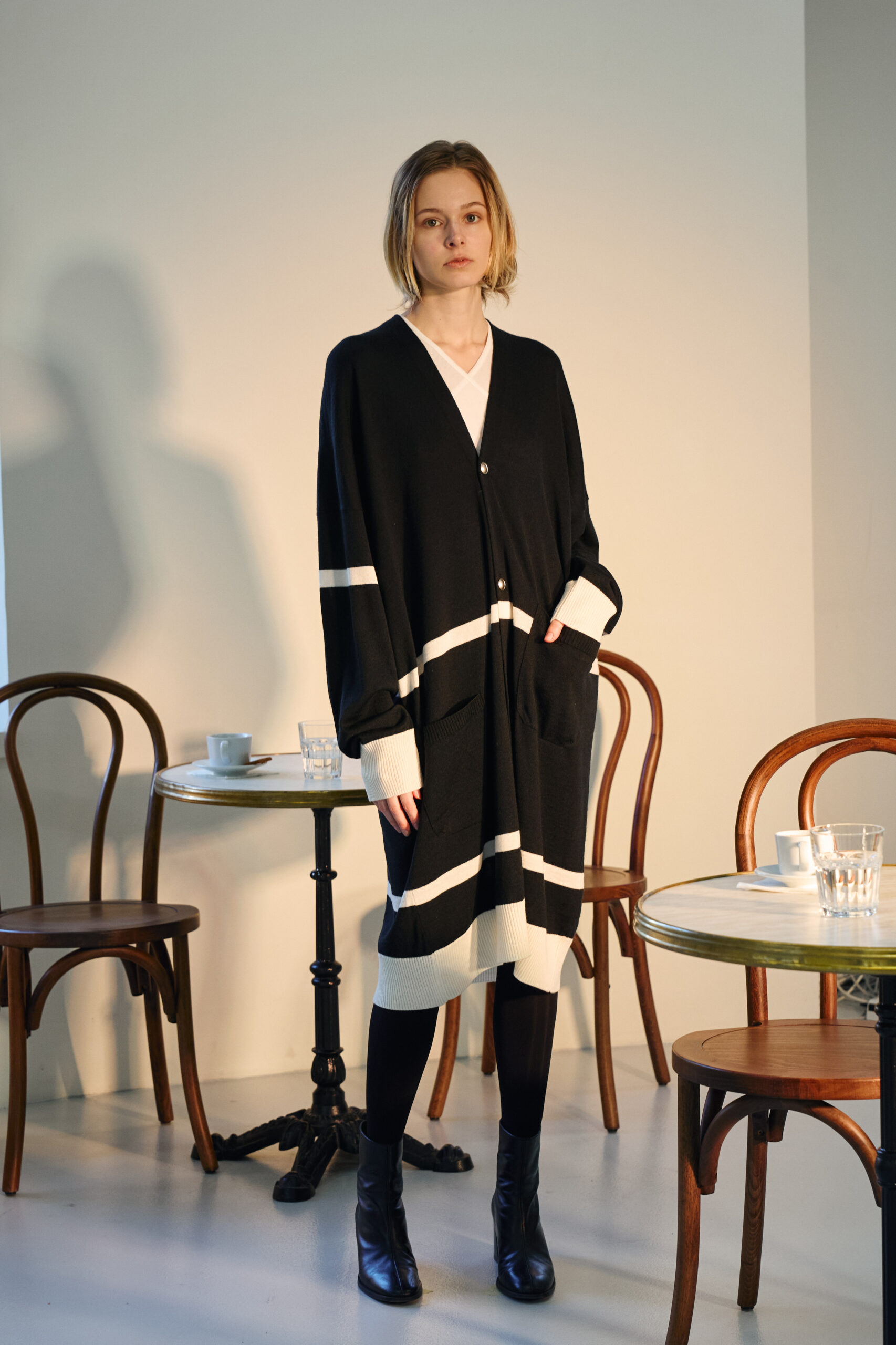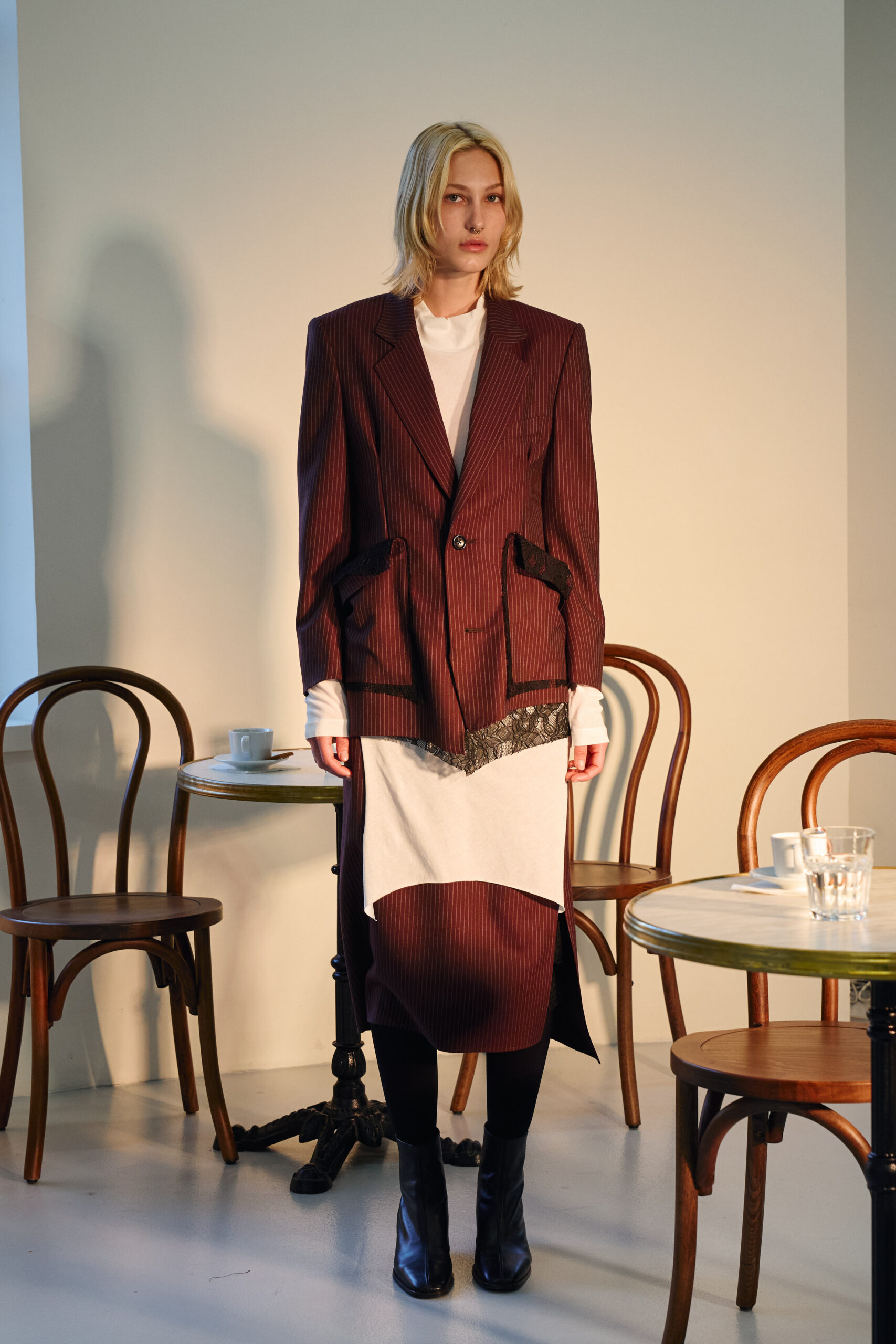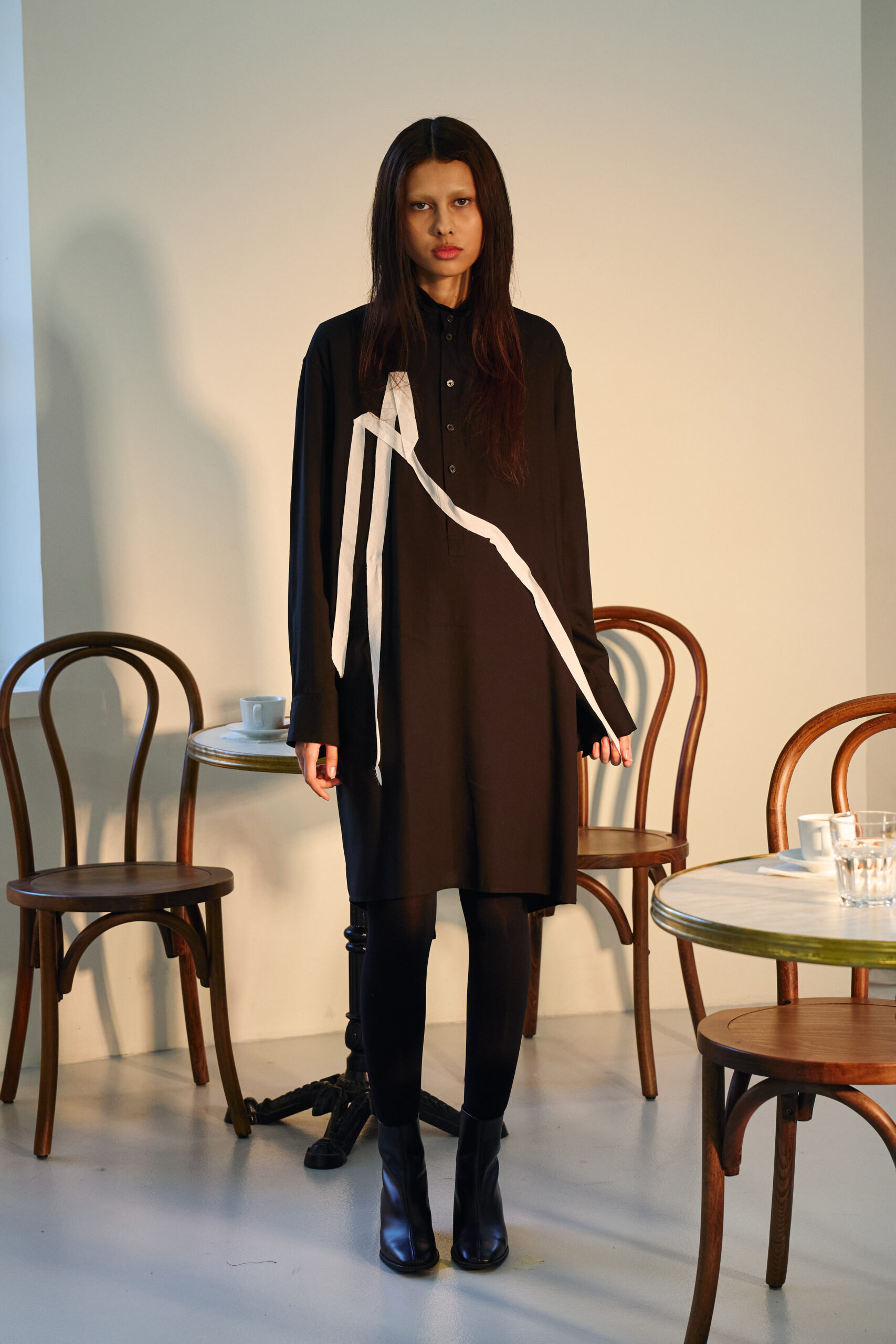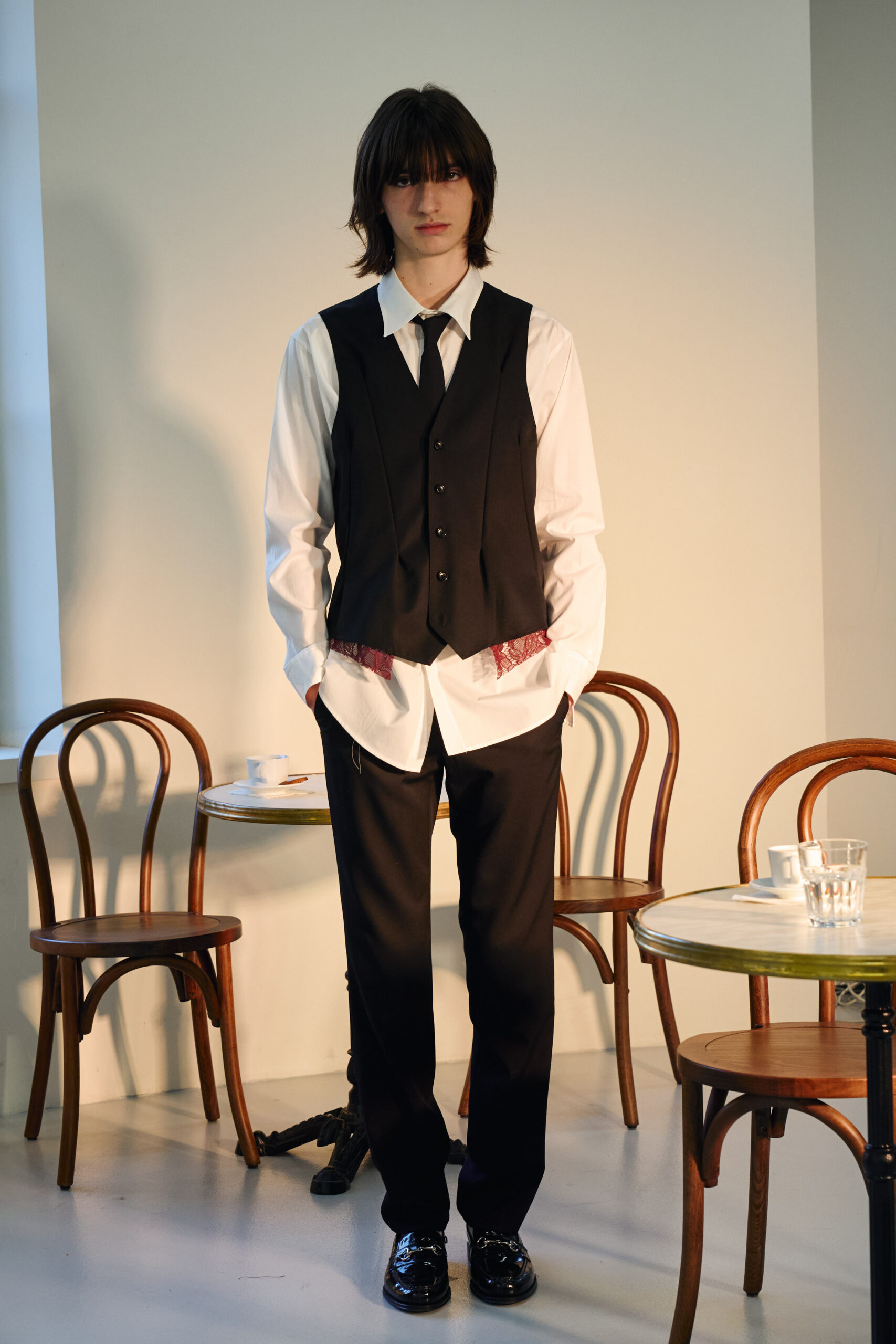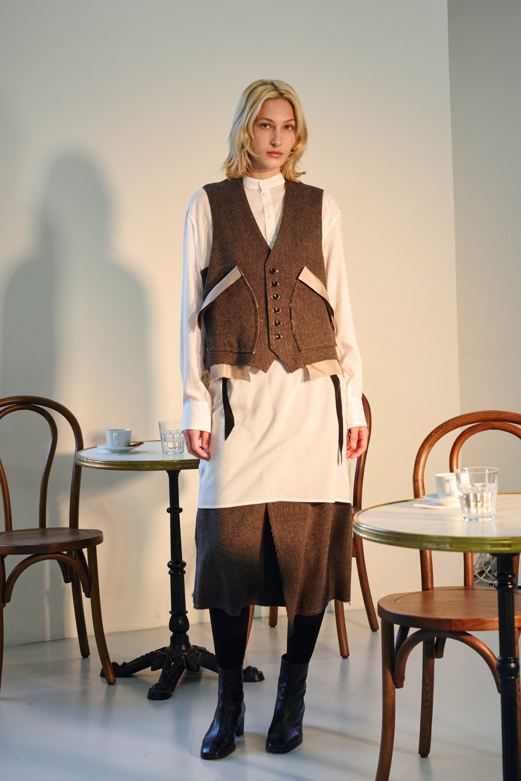 Teippei Fujita, en choisissant des tissus classiques plutôt que des tendances éphémères, illustre une approche de la mode qui privilégie la durabilité et la qualité. Chaque pièce de cette collection est conçue pour être non seulement belle mais aussi durable, incarnant un luxe responsable et conscient.