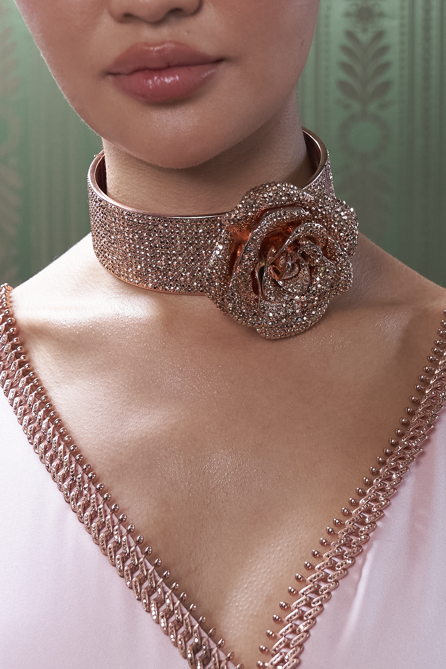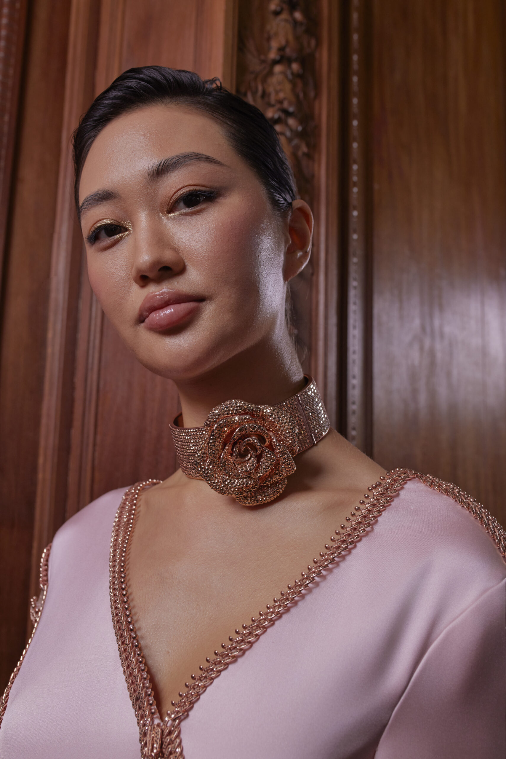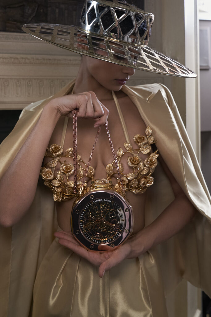 La collection met en avant la force féminine à travers des designs métalliques sculpturaux, de la haute horlogerie et des accessoires qui incarnent la résilience, la grâce et le savoir-faire ultime. Chaque création permet à la muse de surmonter les obstacles avec une confiance inébranlable, façonnée avec précision par des artisans talentueux et ornée de détails dignes de bijoux. Des teintes pastel douces, des métalliques élégants, des rouges rayonnants, des rosettes emblématiques et des corsets ornés convergent dans une œuvre qui célèbre la force cachée de la féminité. Cette collection incarne une évolution audacieuse pour Tamara Ralph, une vision de l’avenir empreinte d’audace et de vigueur.