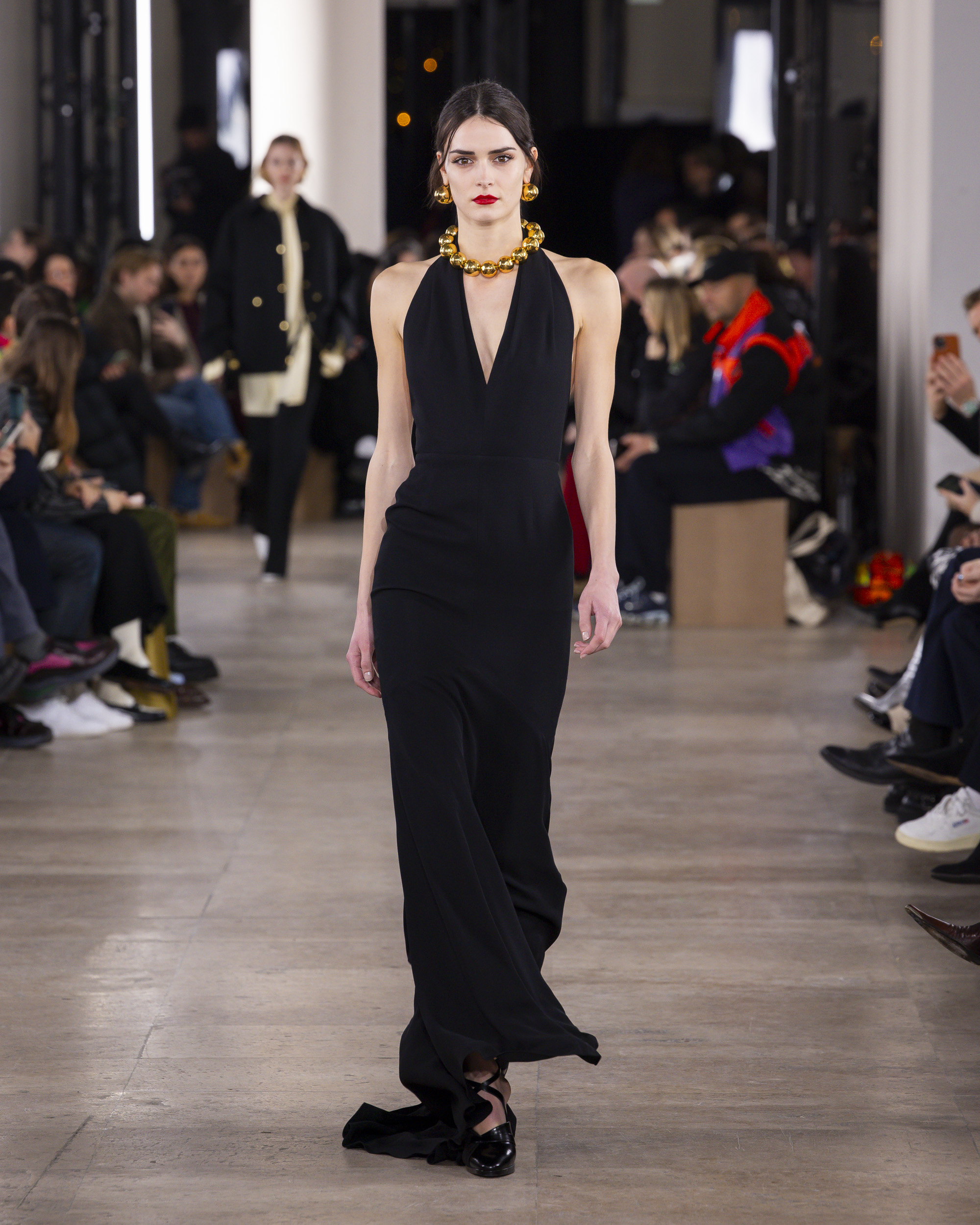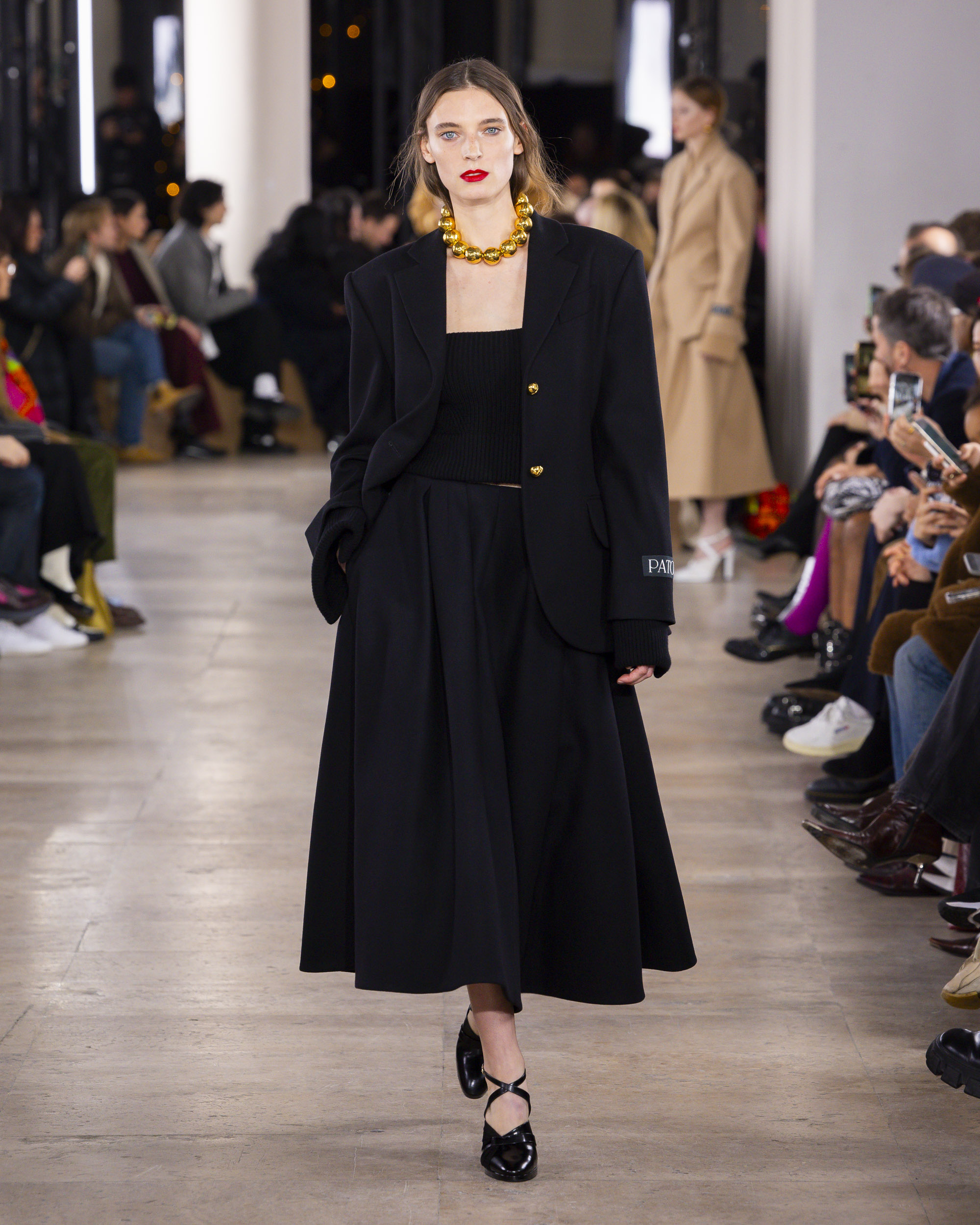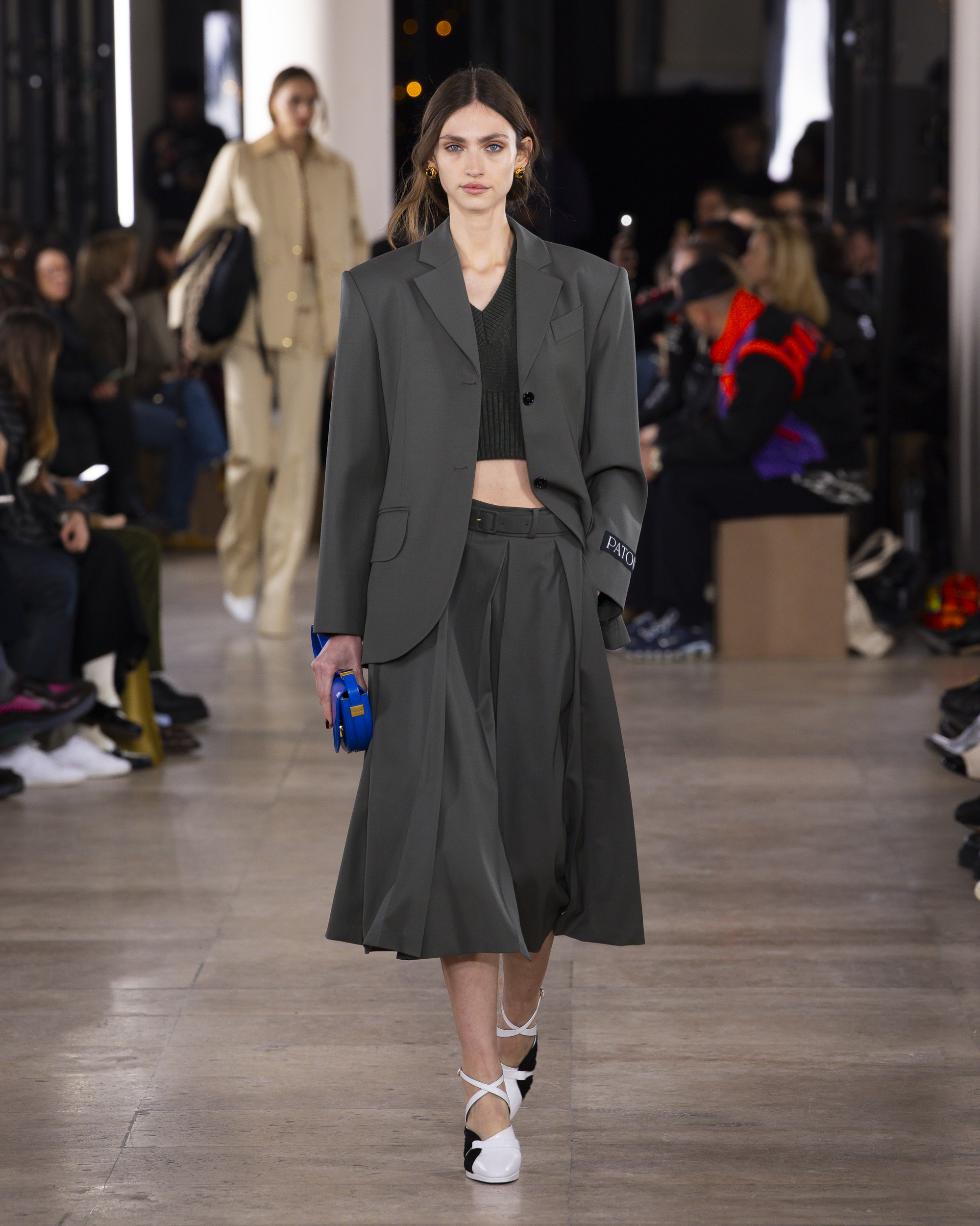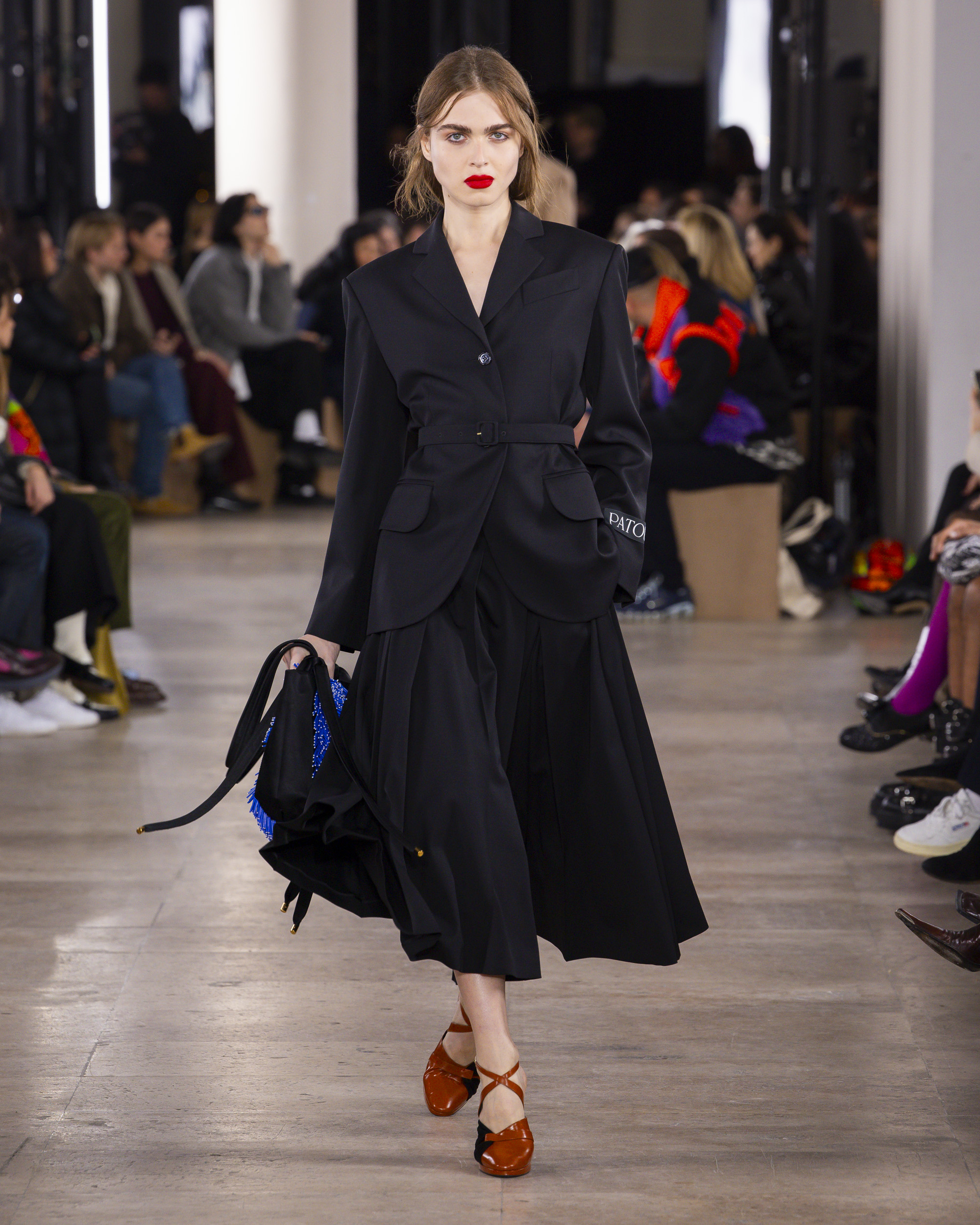 « Hiver 24 » se veut le reflet d’une époque historique, où le vêtement devient un repère essentiel, un uniforme digne et rassurant pour une femme qui avance avec détermination. Les créations de PATOU, dans leur pureté formelle, enveloppent et complètent la silhouette de manière intemporelle, offrant à la fois confort et assurance.
