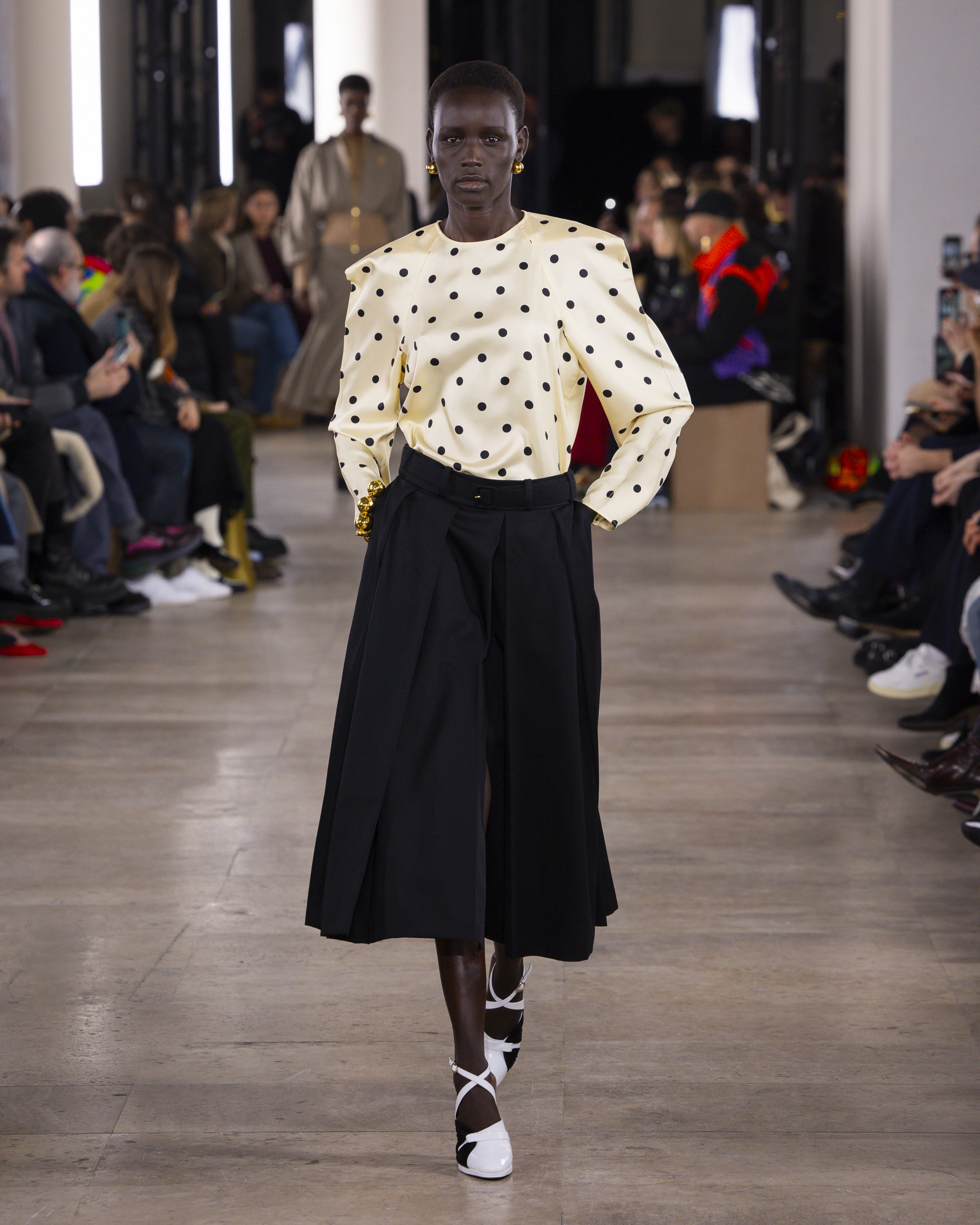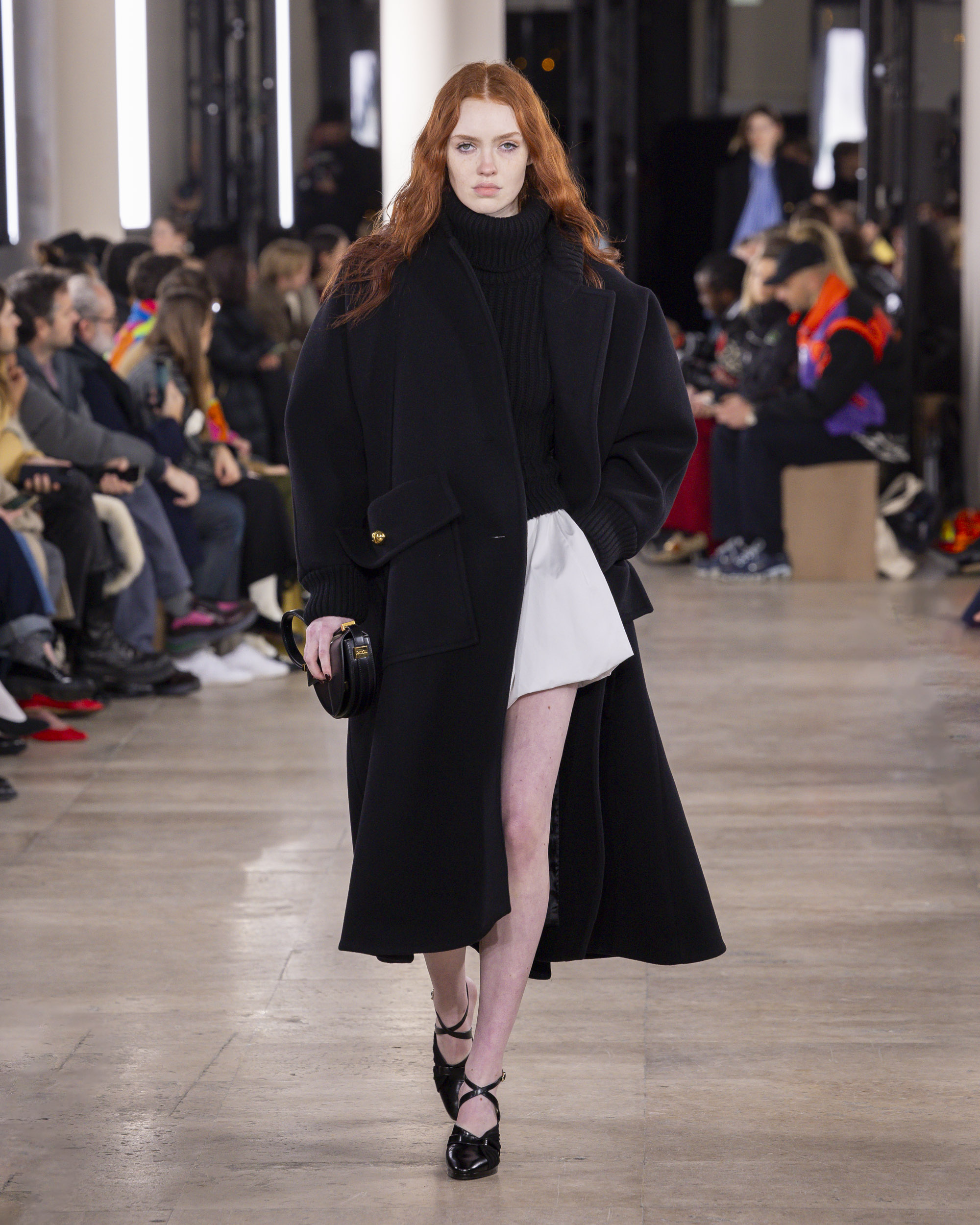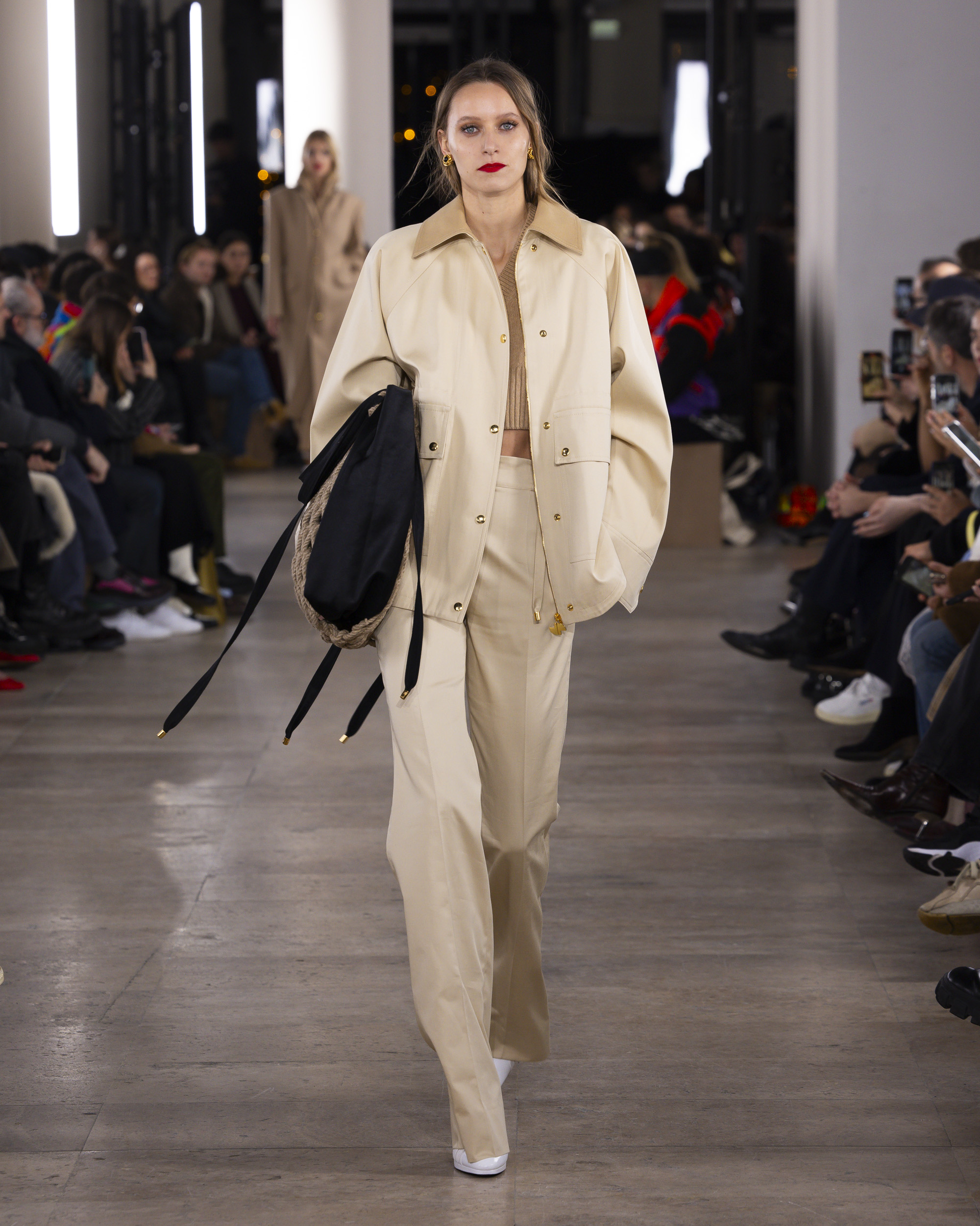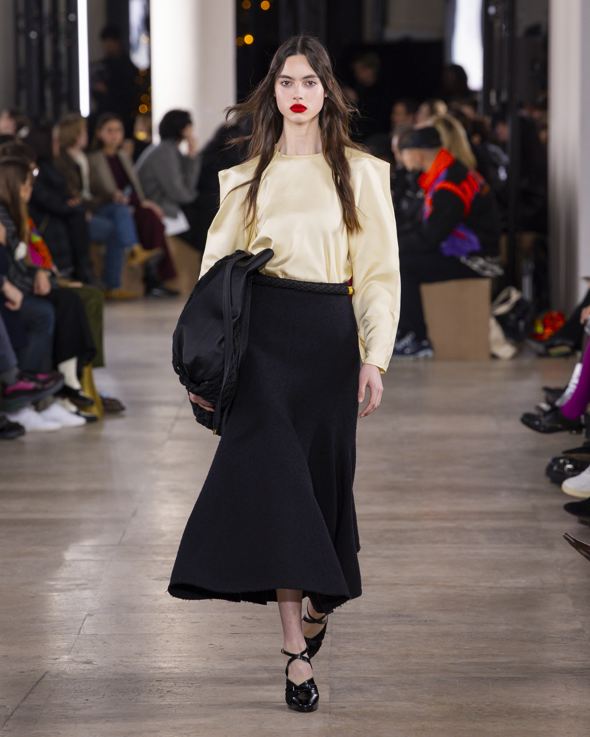« Hiver 24 » se veut le reflet d’une époque historique, où le vêtement devient un repère essentiel, un uniforme digne et rassurant pour une femme qui avance avec détermination. Les créations de PATOU, dans leur pureté formelle, enveloppent et complètent la silhouette de manière intemporelle, offrant à la fois confort et assurance.