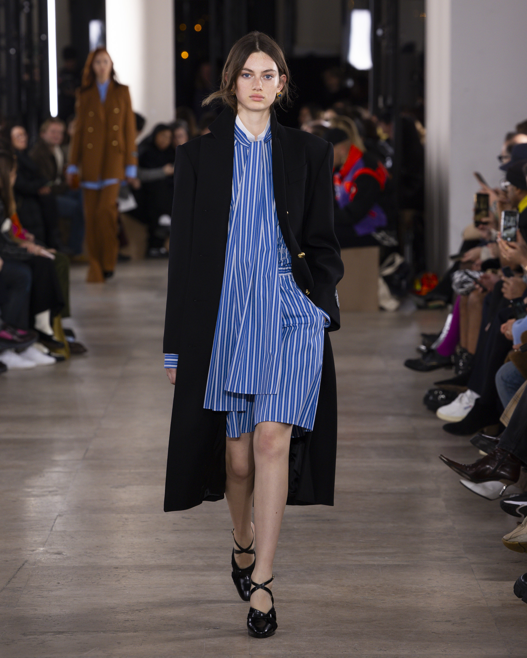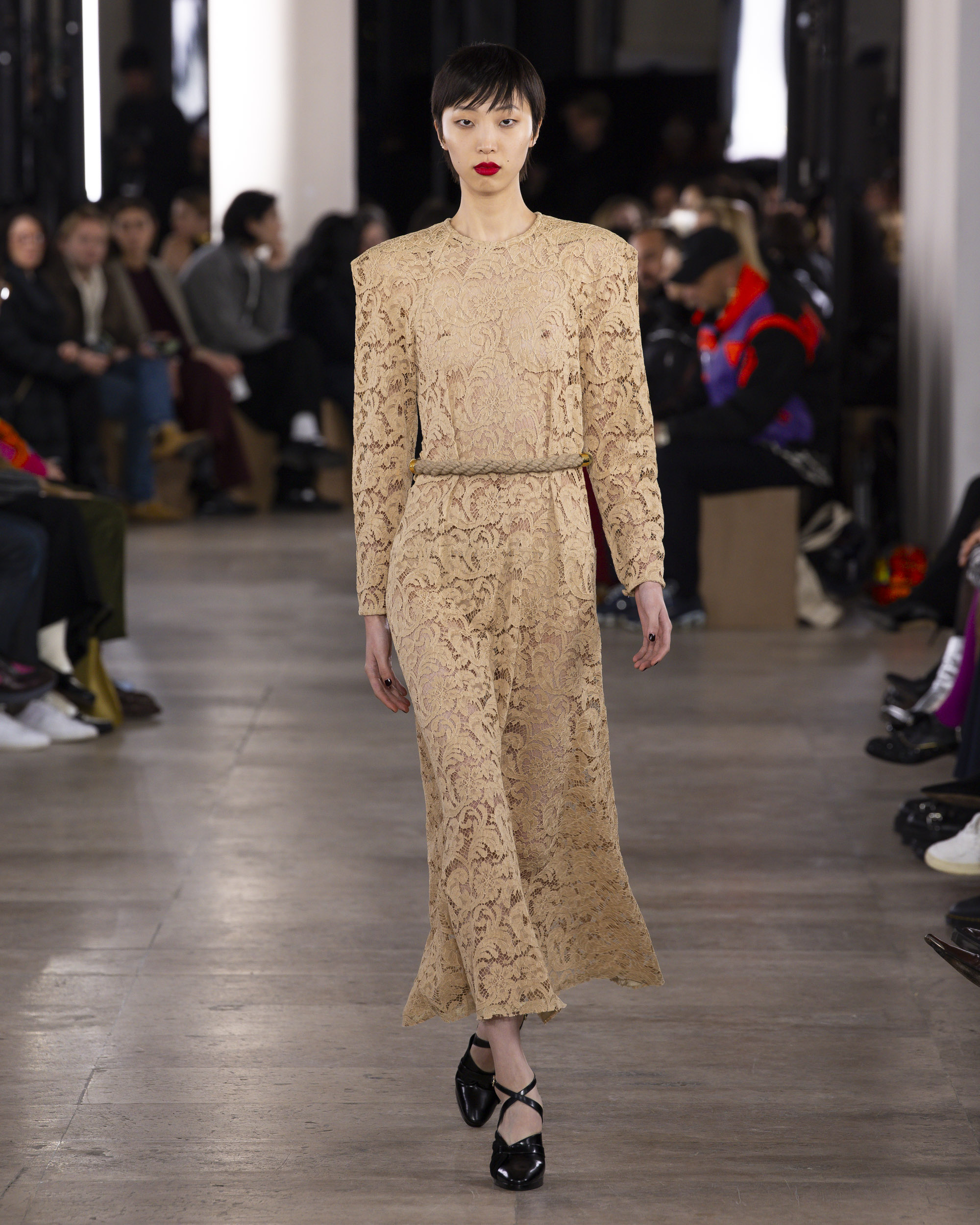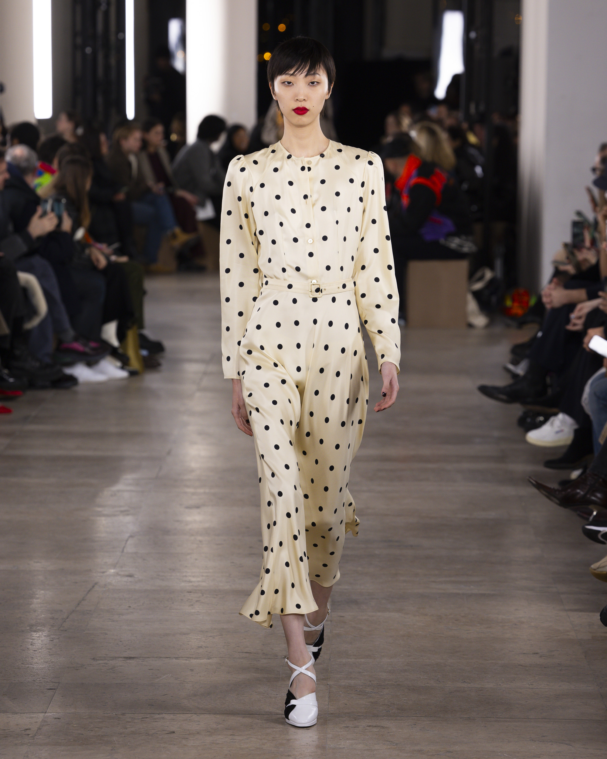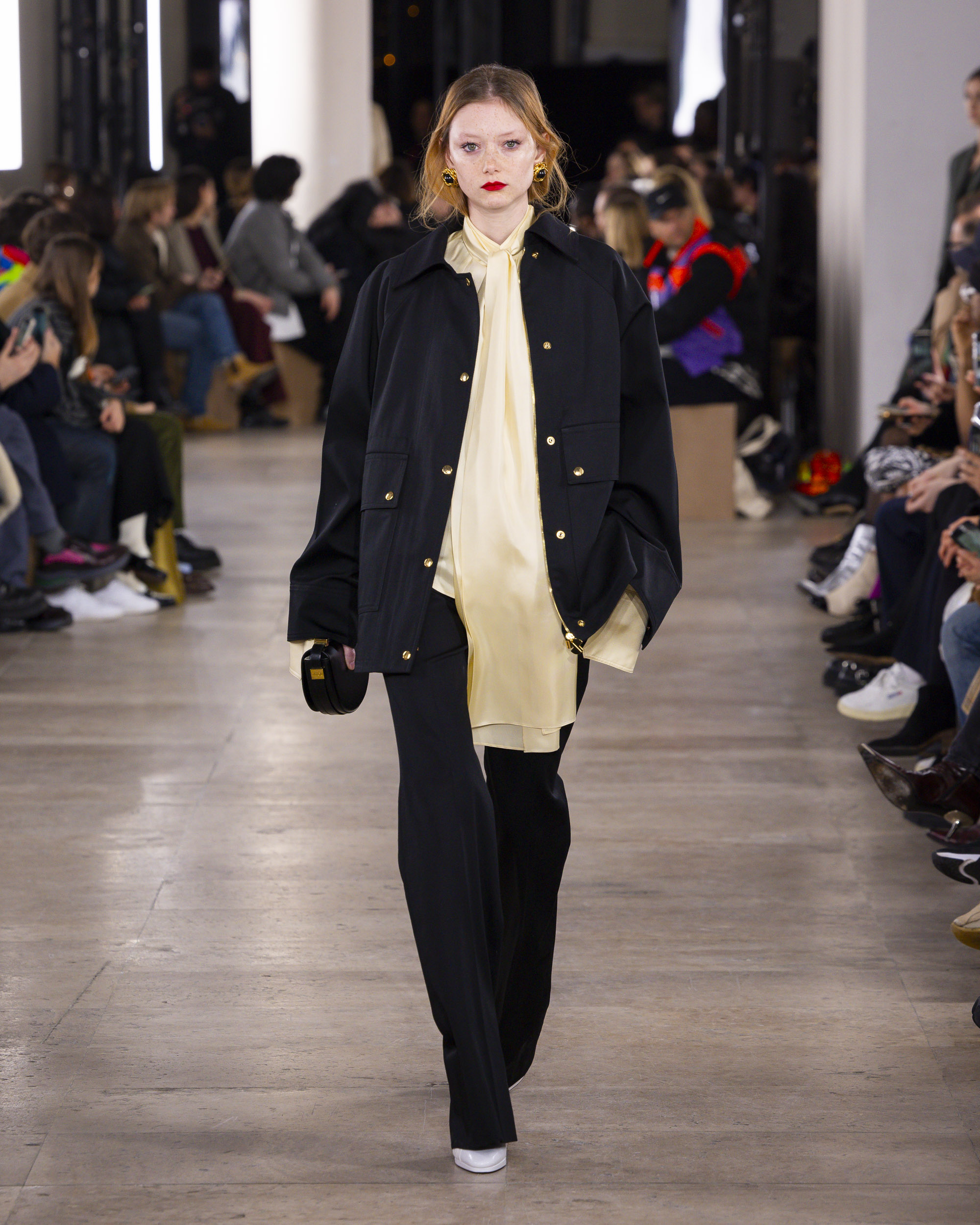 « Hiver 24 » se veut le reflet d’une époque historique, où le vêtement devient un repère essentiel, un uniforme digne et rassurant pour une femme qui avance avec détermination. Les créations de PATOU, dans leur pureté formelle, enveloppent et complètent la silhouette de manière intemporelle, offrant à la fois confort et assurance.