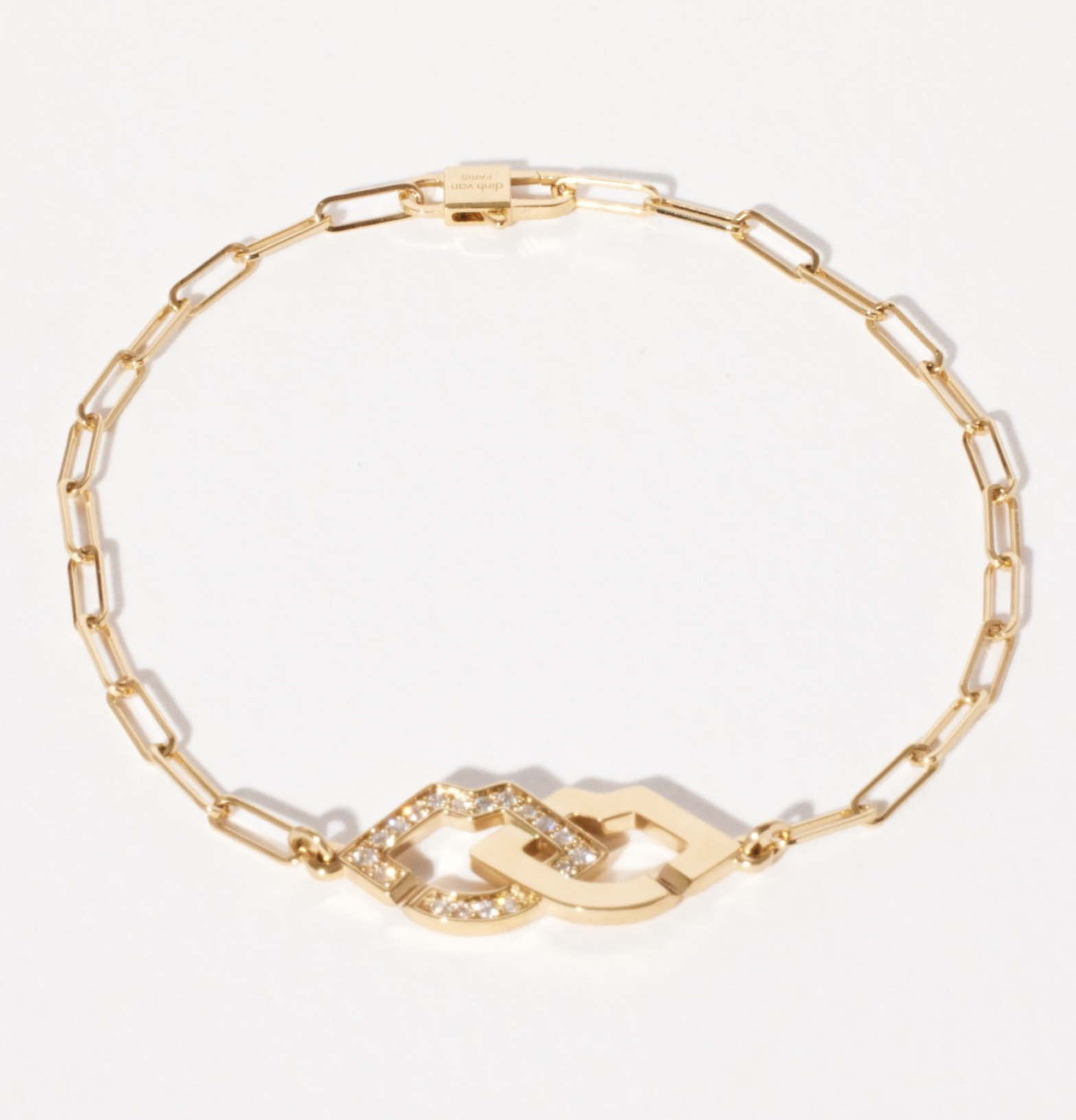 - Bracelet 2 Lips : Or jaune et diamants sur chaîne dinh van S. Prix : 1 650€.