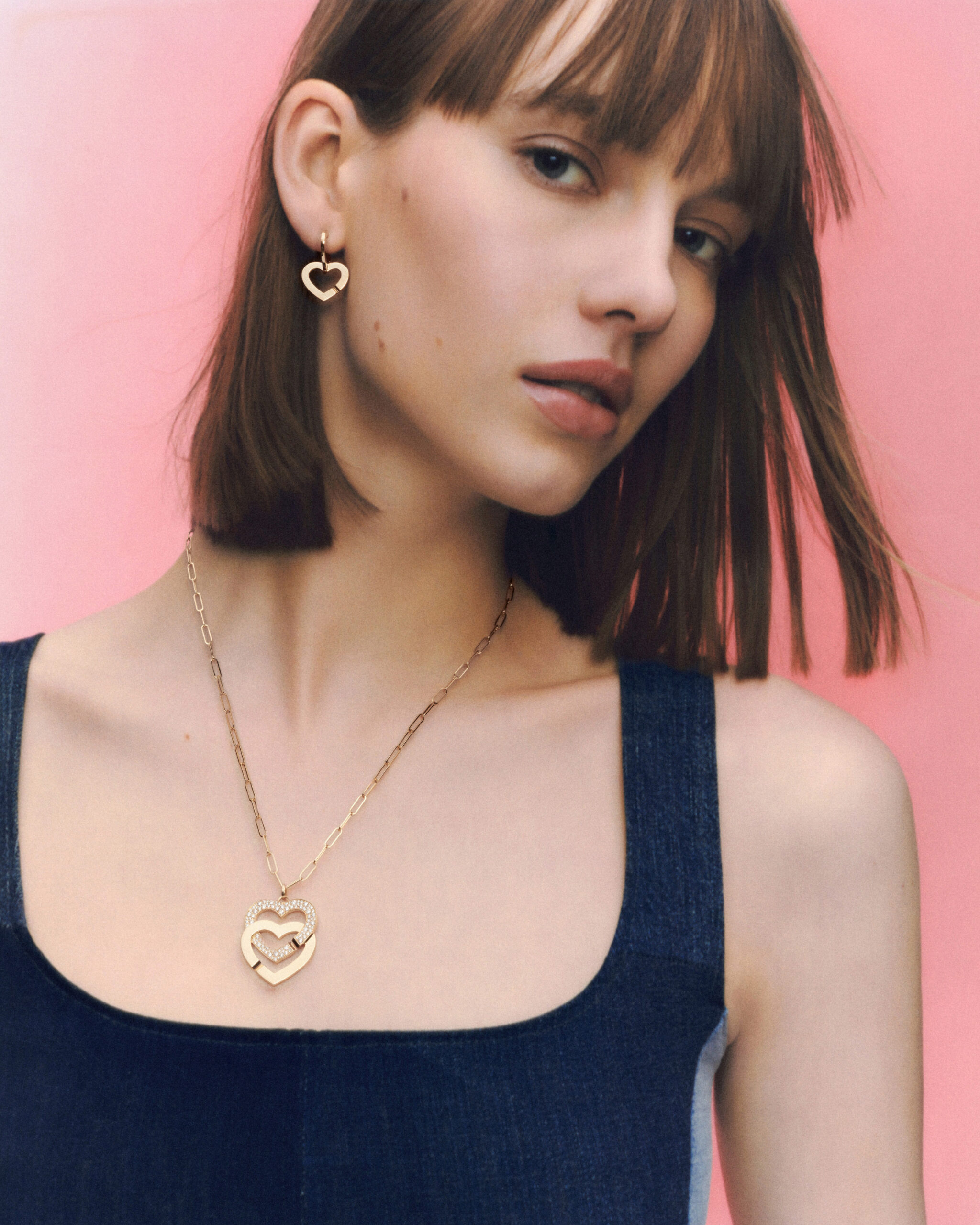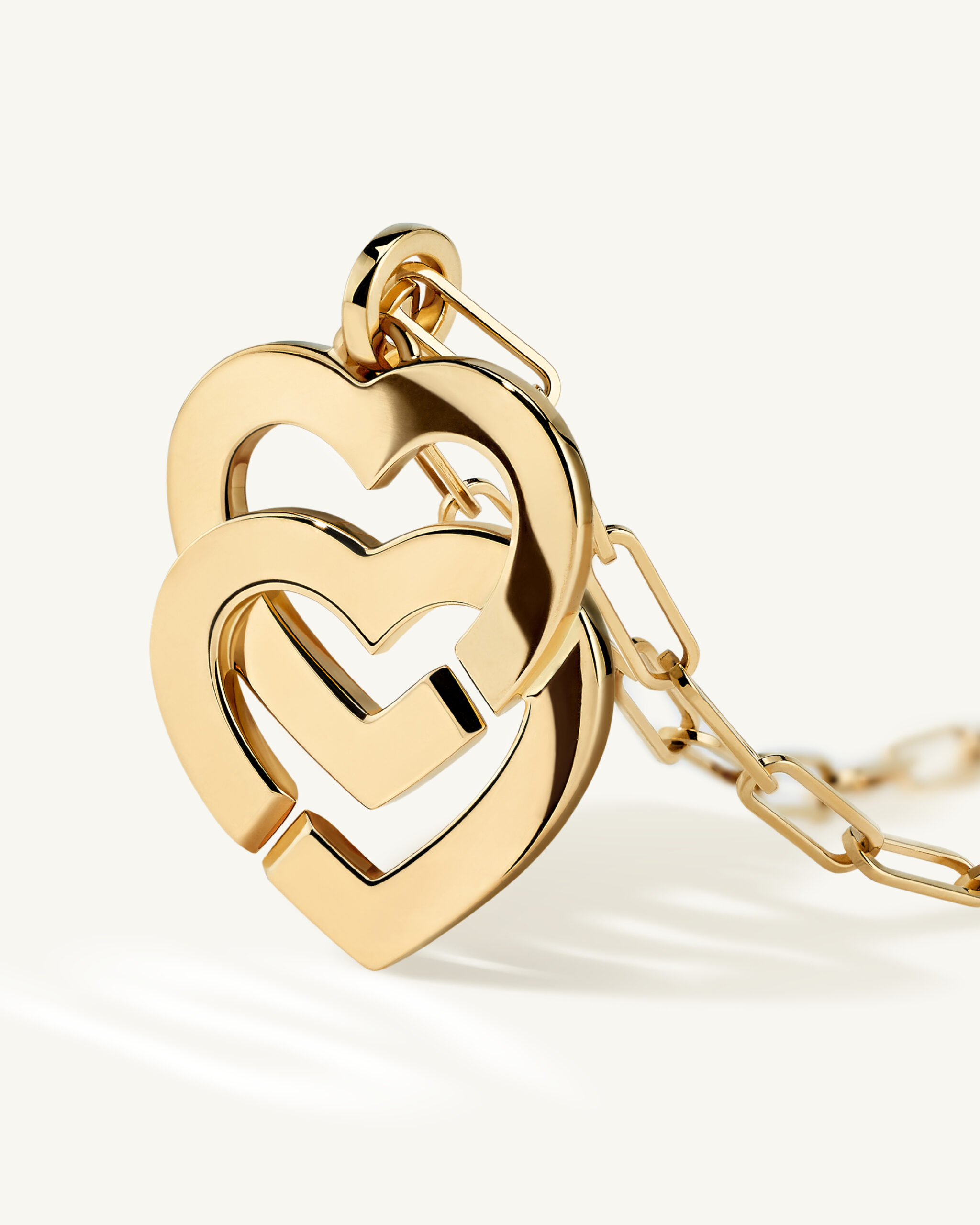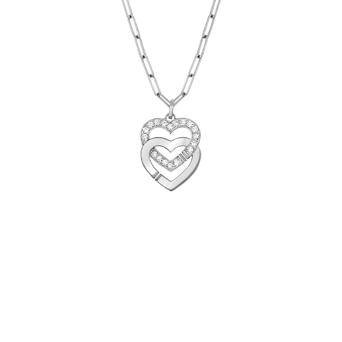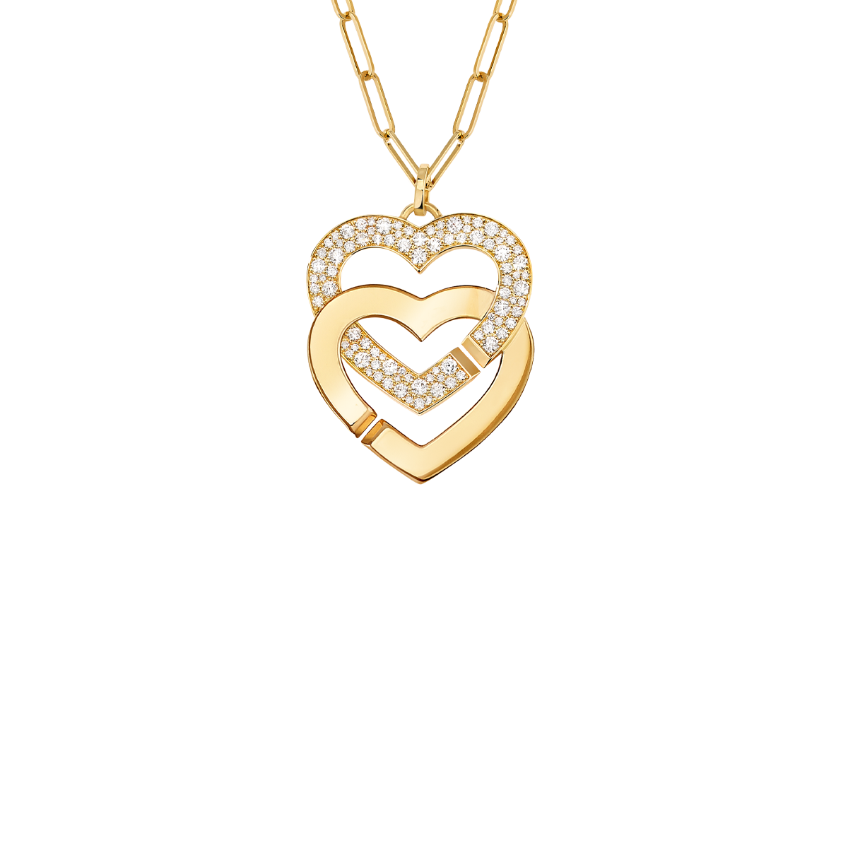 - Un pendentif Double Cœurs R27,5 en édition exclusive en or jaune avec un serti neige unique.