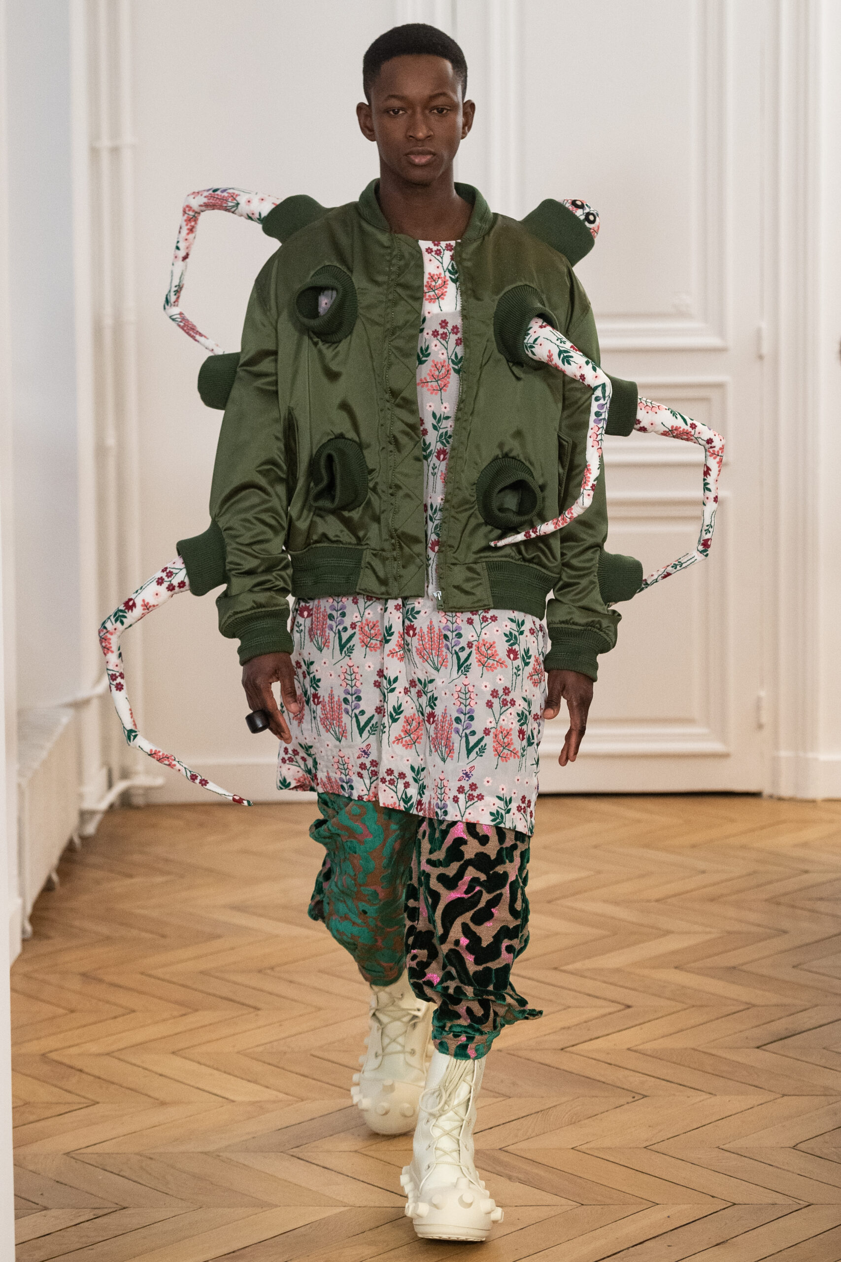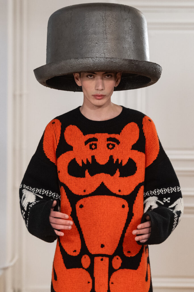 La collection Automne-Hiver 2024—2025 de Walter Van Beirendonck marque une nouvelle étape audacieuse dans le monde de la mode avant-gardiste. S’inspirant du surréalisme belge, Van Beirendonck a joué un jeu artistique ‘Frankensteinien’ avec son esprit créatif, donnant vie à une série de « monstres magnifiques » à travers une méthode de conception absurde et innovante.