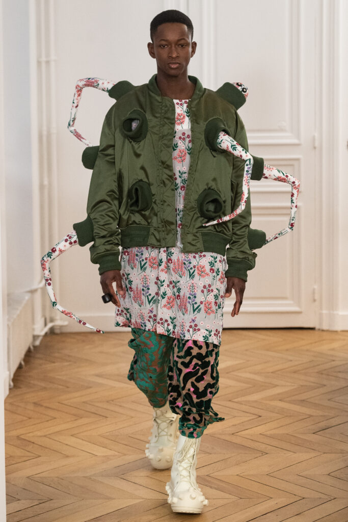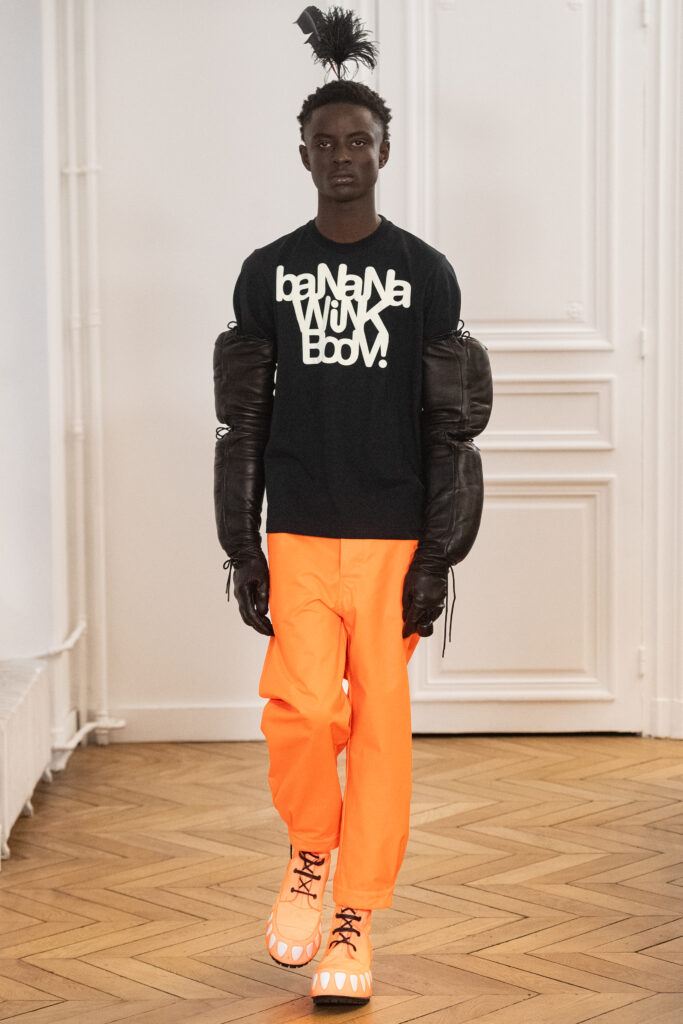 Cette collection invite à plus de liberté et moins d’automatisation dans l’expérience de la mode. Van Beirendonck encourage à se brancher sur ce « portail de plaisir », offrant une nouvelle ère de fétichisme dans la mode.