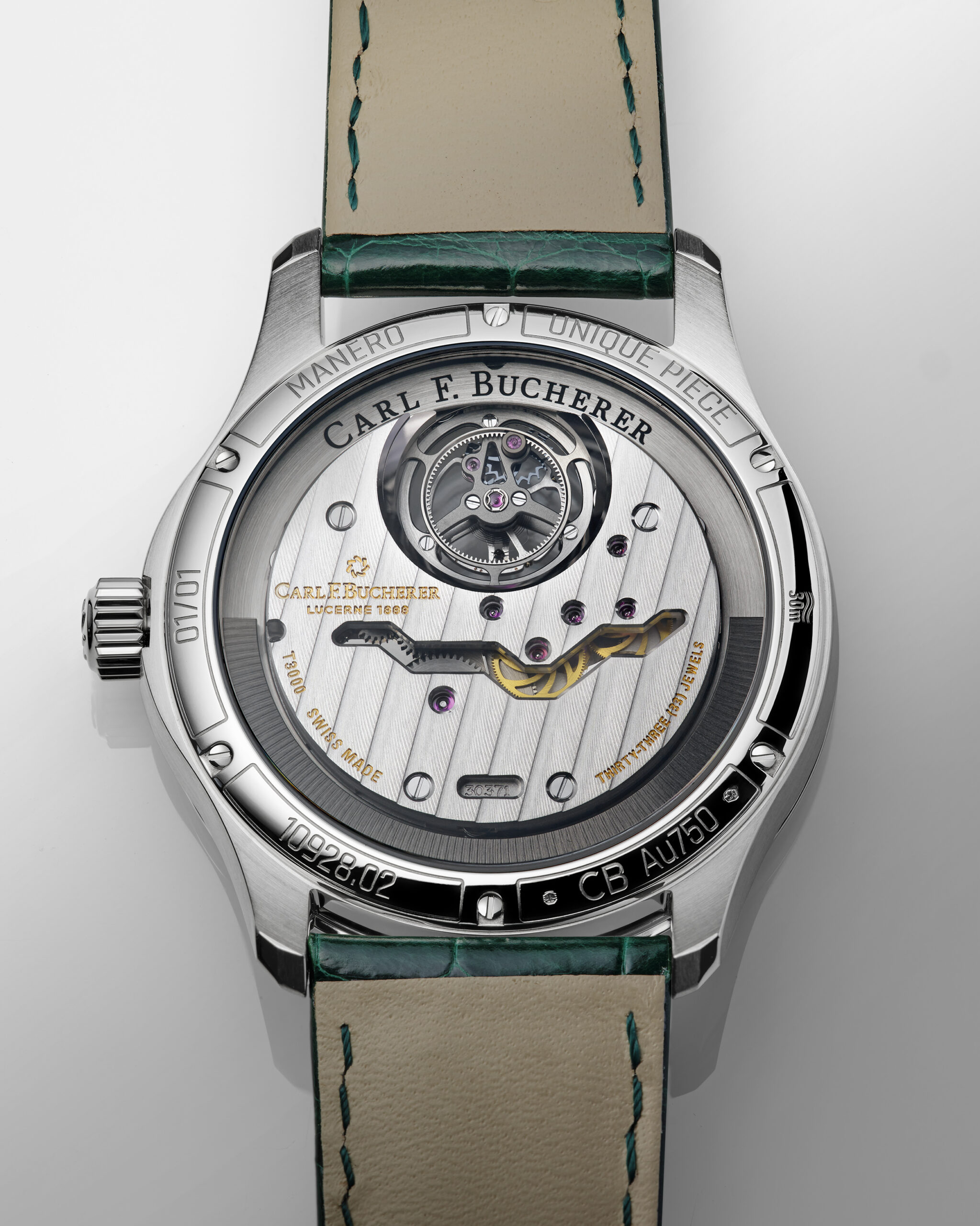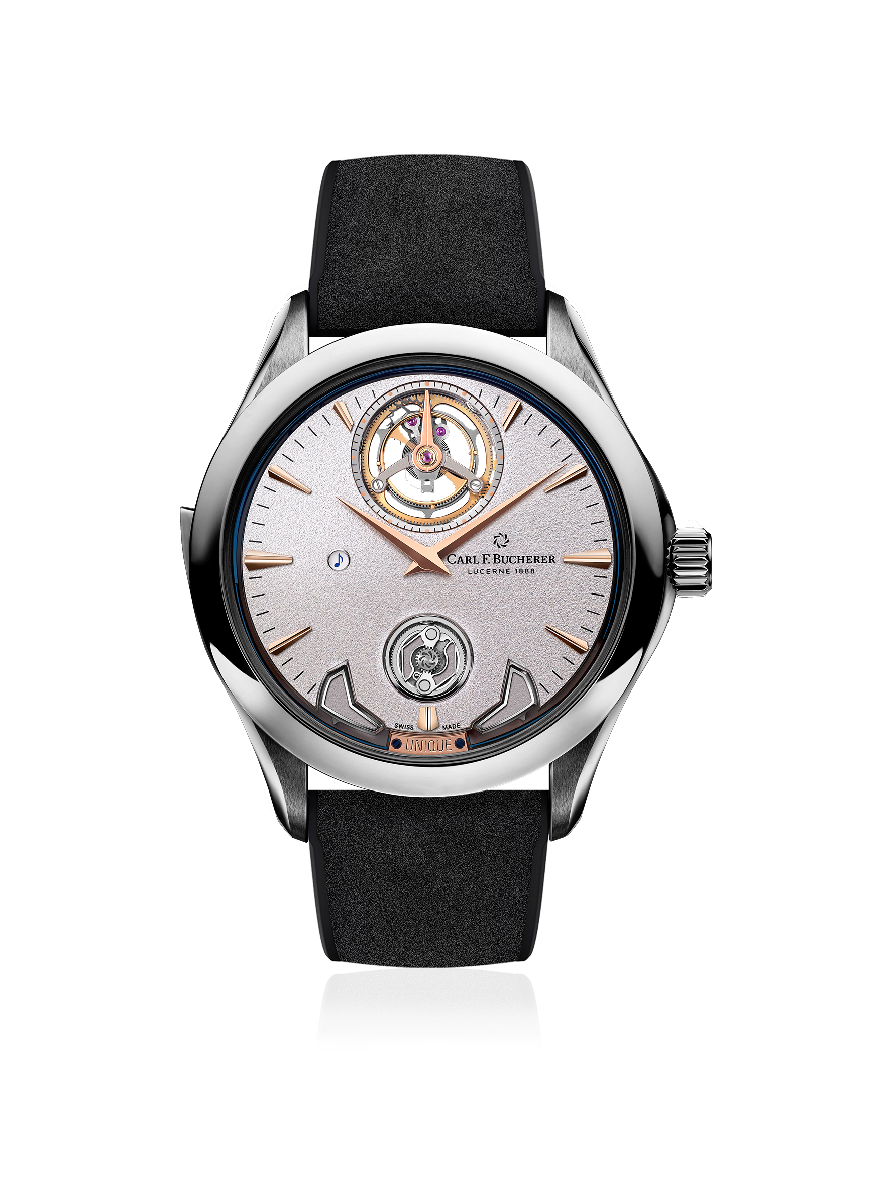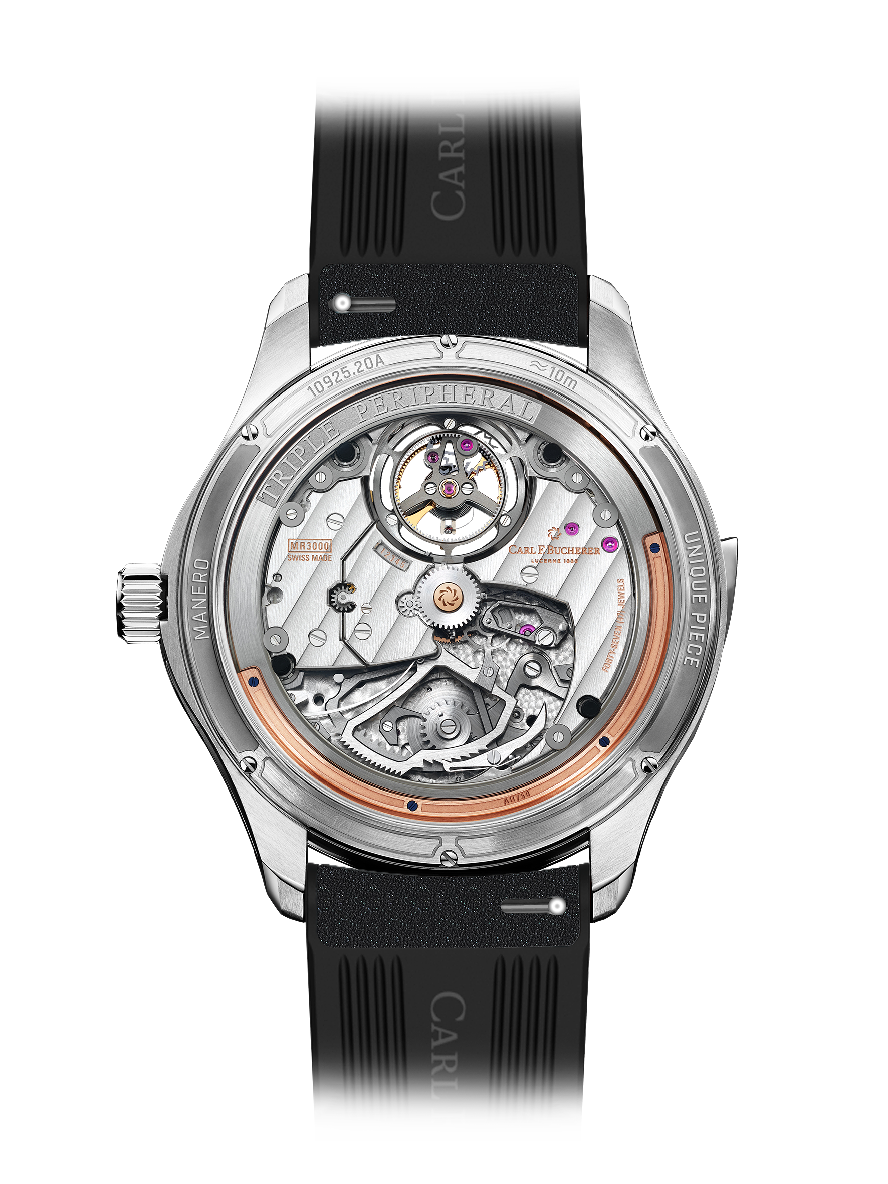 La Manero Minute Repeater en Titane : Un Chef-d’œuvre Technique La Manero Minute Repeater, présentée pour la première fois en titane, est une célébration de la finesse horlogère de Carl F. Bucherer. Avec son cadran en or gris 18 carats et ses aiguilles et index en or rose, cette montre allie élégance sobre et sophistication. La pièce se distingue par sa technologie « Triple Peripheral », y compris un mécanisme de remontage automatique périphérique, un tourbillon « suspendu » et un régulateur à répétition-minutes.