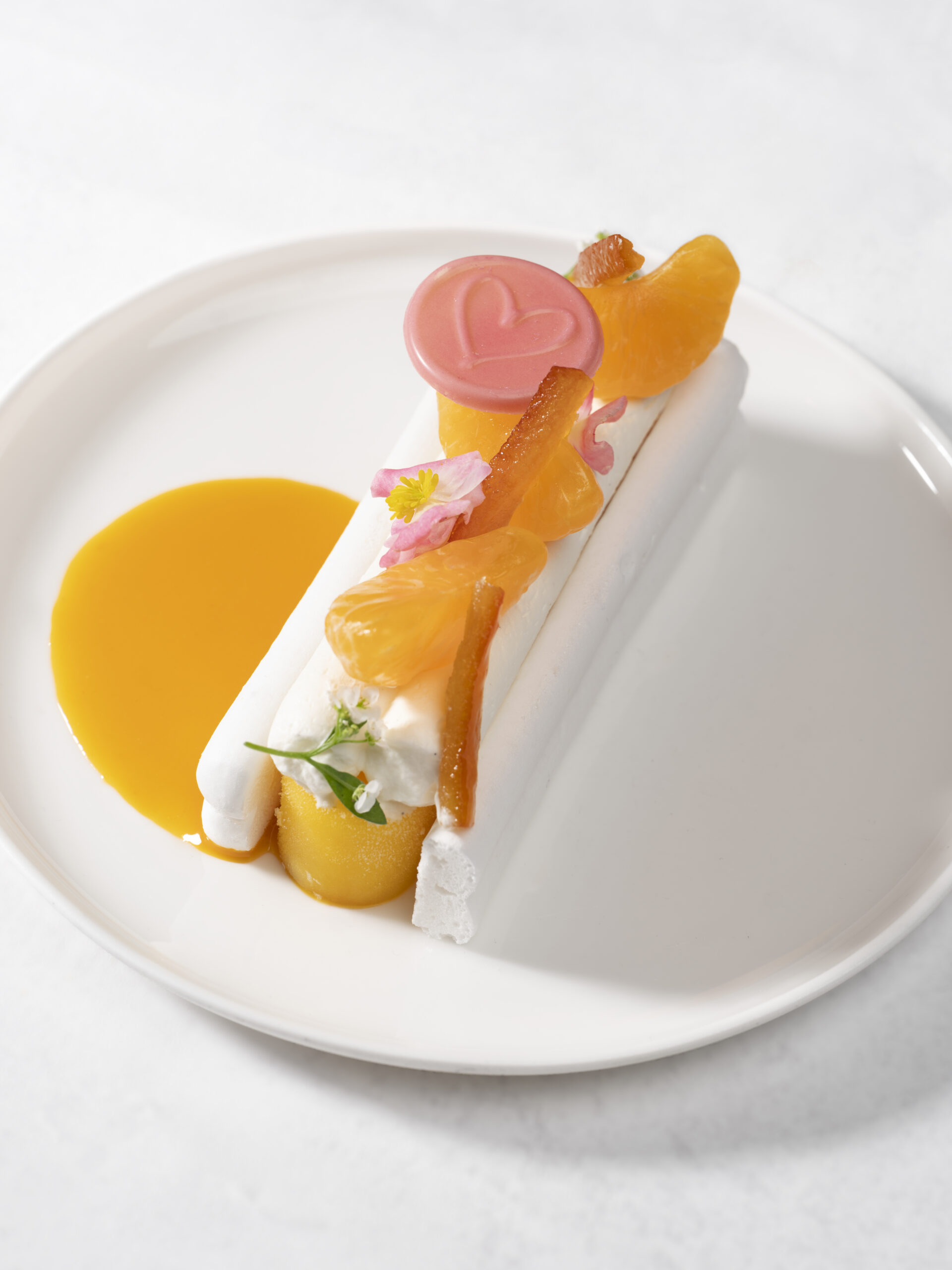 Le premier plat, une spécialité de la maison, est une tourte signée Maison VEROT accompagnée d’un jus de viande acidulé, promesse d’une explosion de saveurs. Suivra un choix entre deux plats principaux : de délicates Saint-Jacques accompagnées de semoule de courge butternut et noisettes torréfiées avec une émulsion de champagne rosé, ou un filet de canette, servi avec une mousseline de panais, poire williams rôti et sauce au vin rouge. Chacune de ces options est une célébration de la gastronomie française.