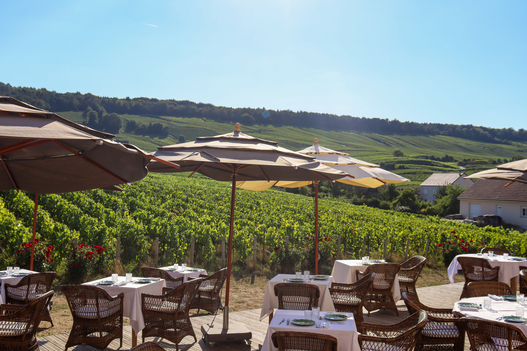 Le cadre du Château de Sacy, membre des Maisons Millésime depuis 2017, complète cette expérience culinaire exceptionnelle. Le restaurant, baptisé “Table Raffinée”, offre une vue panoramique sur les vignes, créant une atmosphère qui allie luxe et confort. La décoration intérieure, avec ses couleurs chaudes et ses matériaux naturels, reflète l’élégance et la sophistication qui caractérisent le domaine.