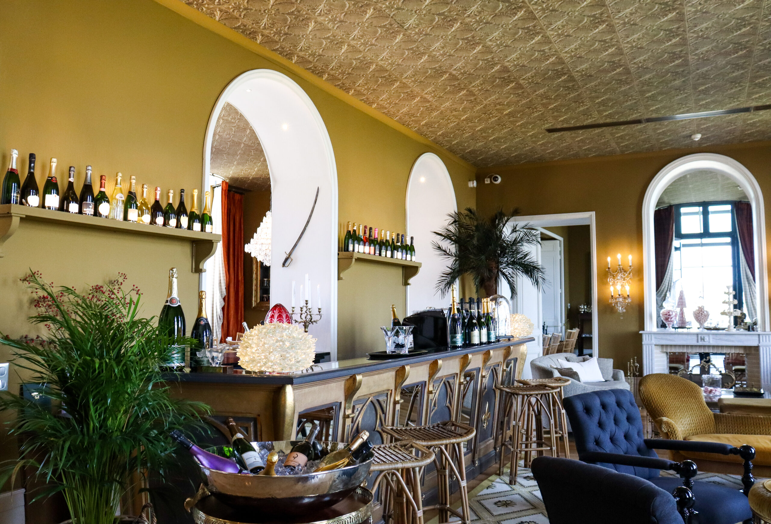 Outre la cuisine de Diether, le Château de Sacy se distingue par son bar à champagne, où une sélection méticuleuse de champagnes de prestige invite à la découverte de la richesse viticole de la région. C’est un lieu de rencontre pour les connaisseurs et les amateurs, où l’art du sabrage se mêle à l’expertise des sommeliers pour offrir une expérience sensorielle inoubliable.