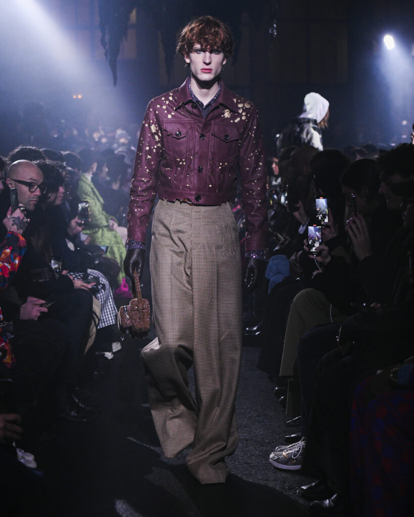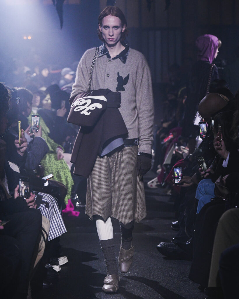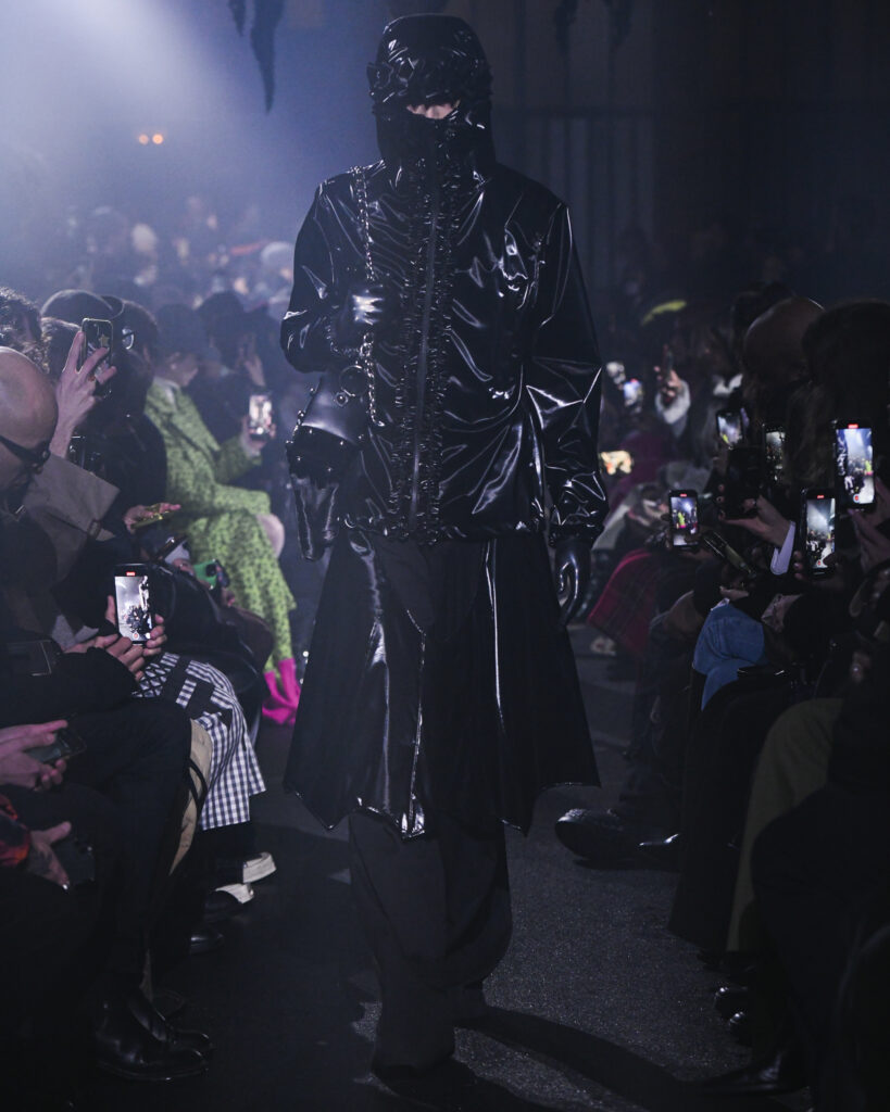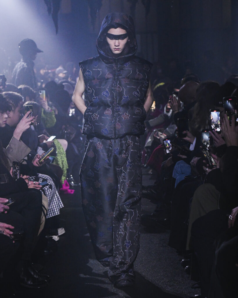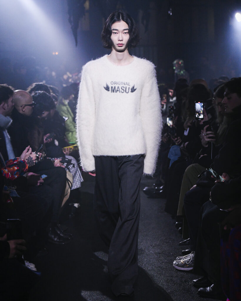 La collection FW24 de MASU se distingue par son approche artistique et imaginative, illustrée par l’exemple de Goto qui voit un ange dans les ailes d’une chauve-souris et trouve une beauté unique dans les restes d’un gâteau. Ces métaphores illustrent le thème central de la collection : trouver la beauté dans l’ordinaire et le négligé, une notion souvent cachée ou ignorée dans la société moderne.