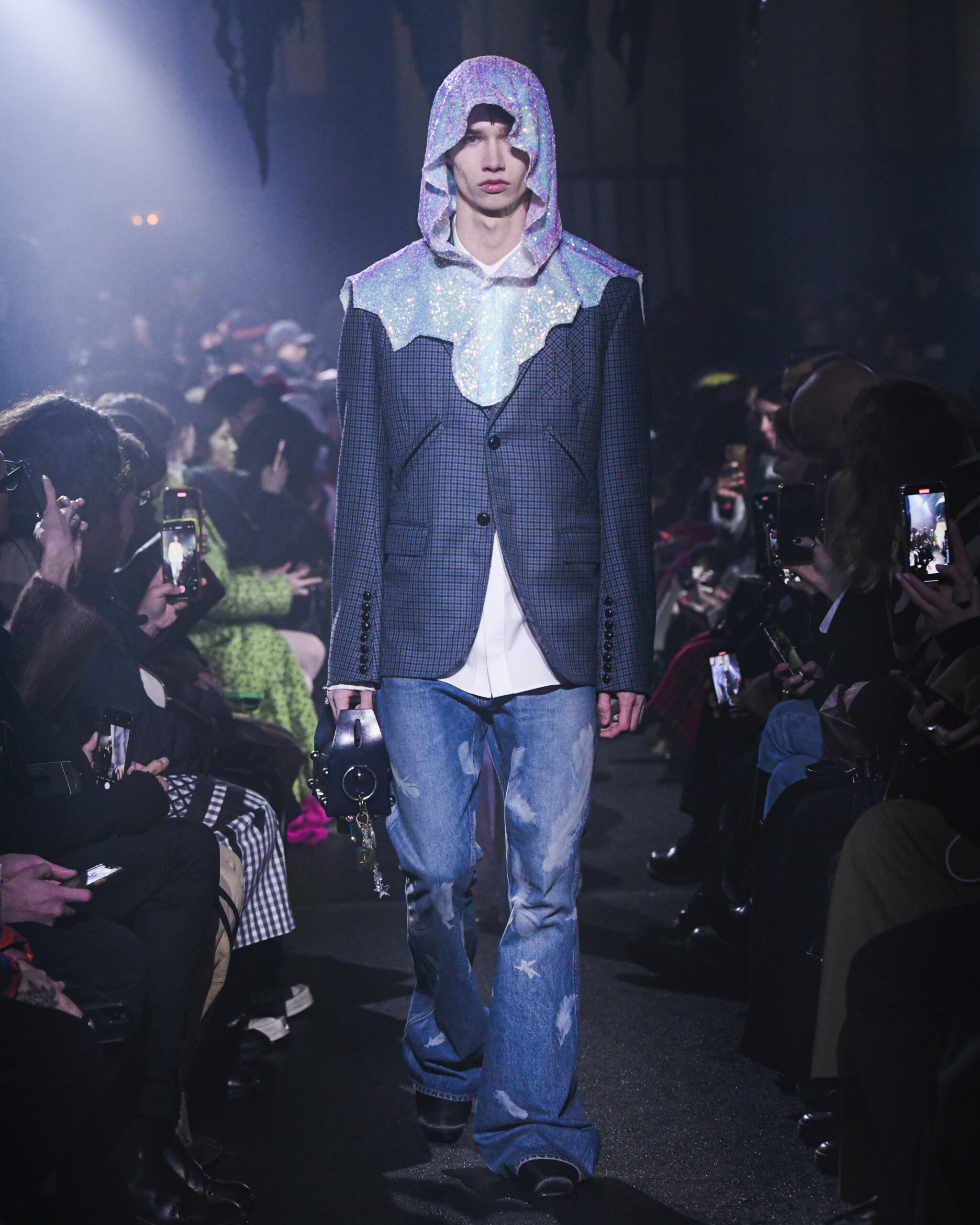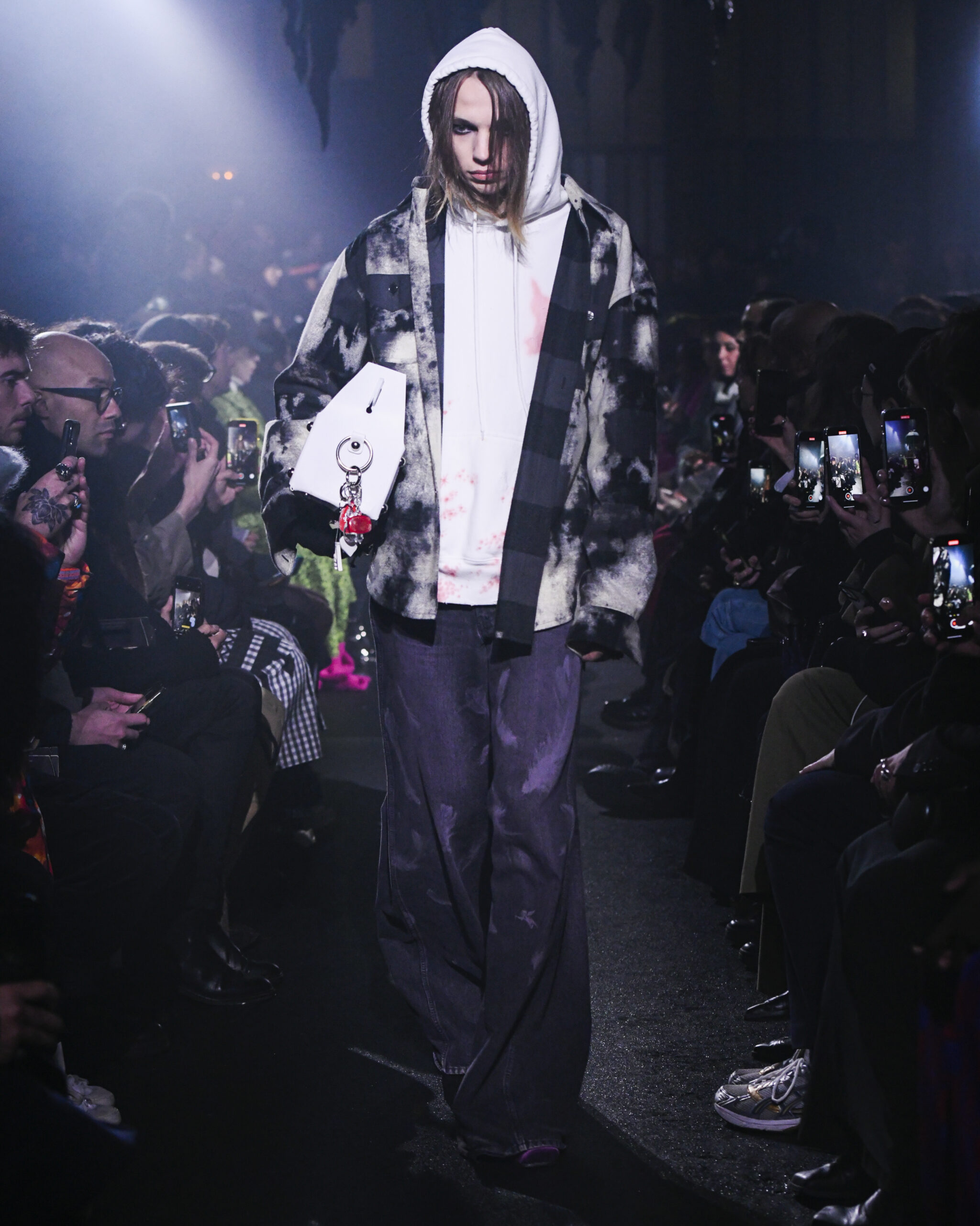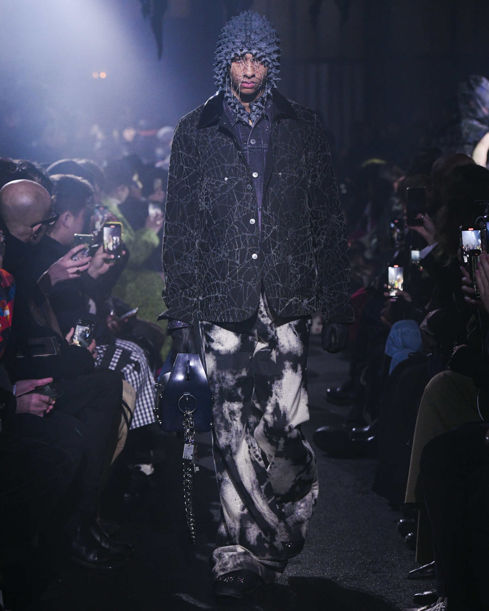 La collection FW24 de MASU se distingue par son approche artistique et imaginative, illustrée par l’exemple de Goto qui voit un ange dans les ailes d’une chauve-souris et trouve une beauté unique dans les restes d’un gâteau. Ces métaphores illustrent le thème central de la collection : trouver la beauté dans l’ordinaire et le négligé, une notion souvent cachée ou ignorée dans la société moderne.