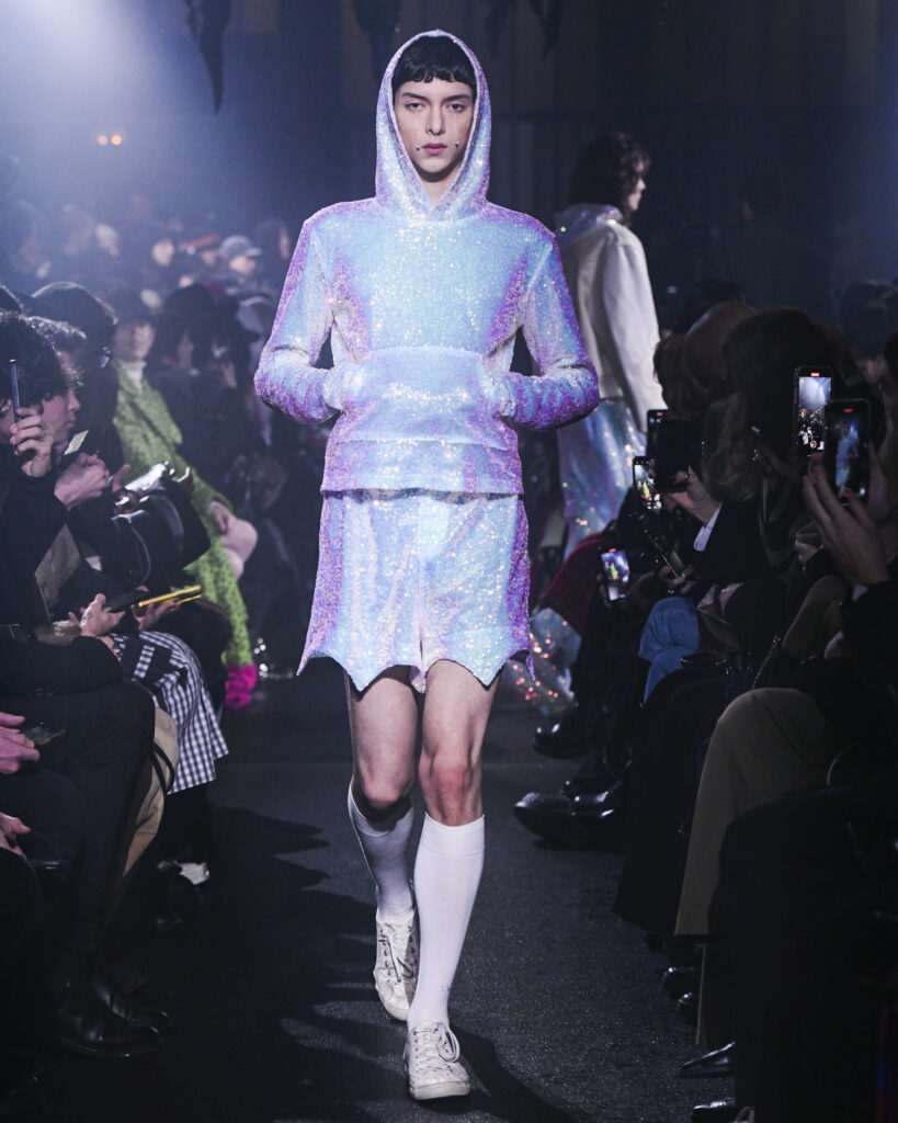 Les pièces de la collection sont imprégnées de cette vision, avec des références aux gouttelettes d’eau sur une toile d’araignée ou à la manière dont un enfant peut exprimer des sentiments purs et innocents. Goto utilise ces images pour créer une collection qui célèbre les sentiments non dits et personnels des gens, en s’appuyant sur des motifs et des designs qui reflètent la dualité et la complexité des émotions humaines.