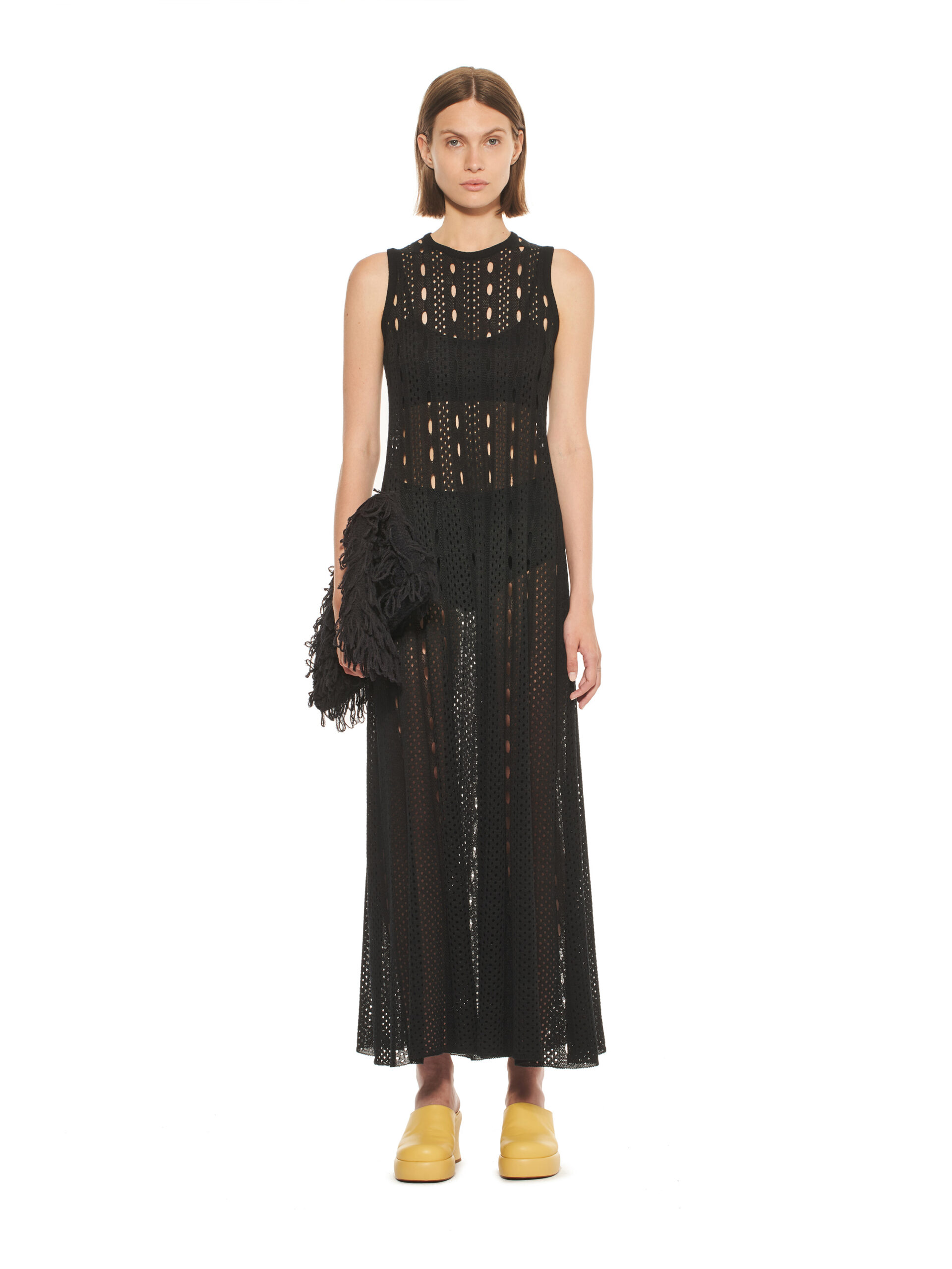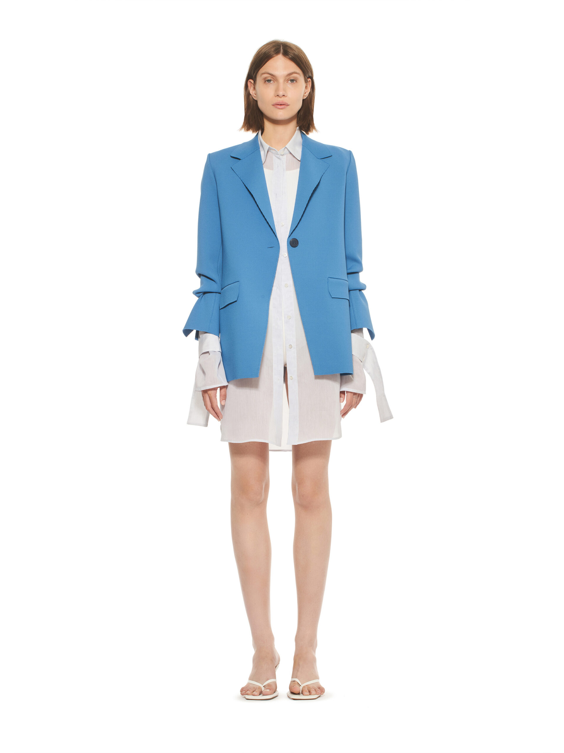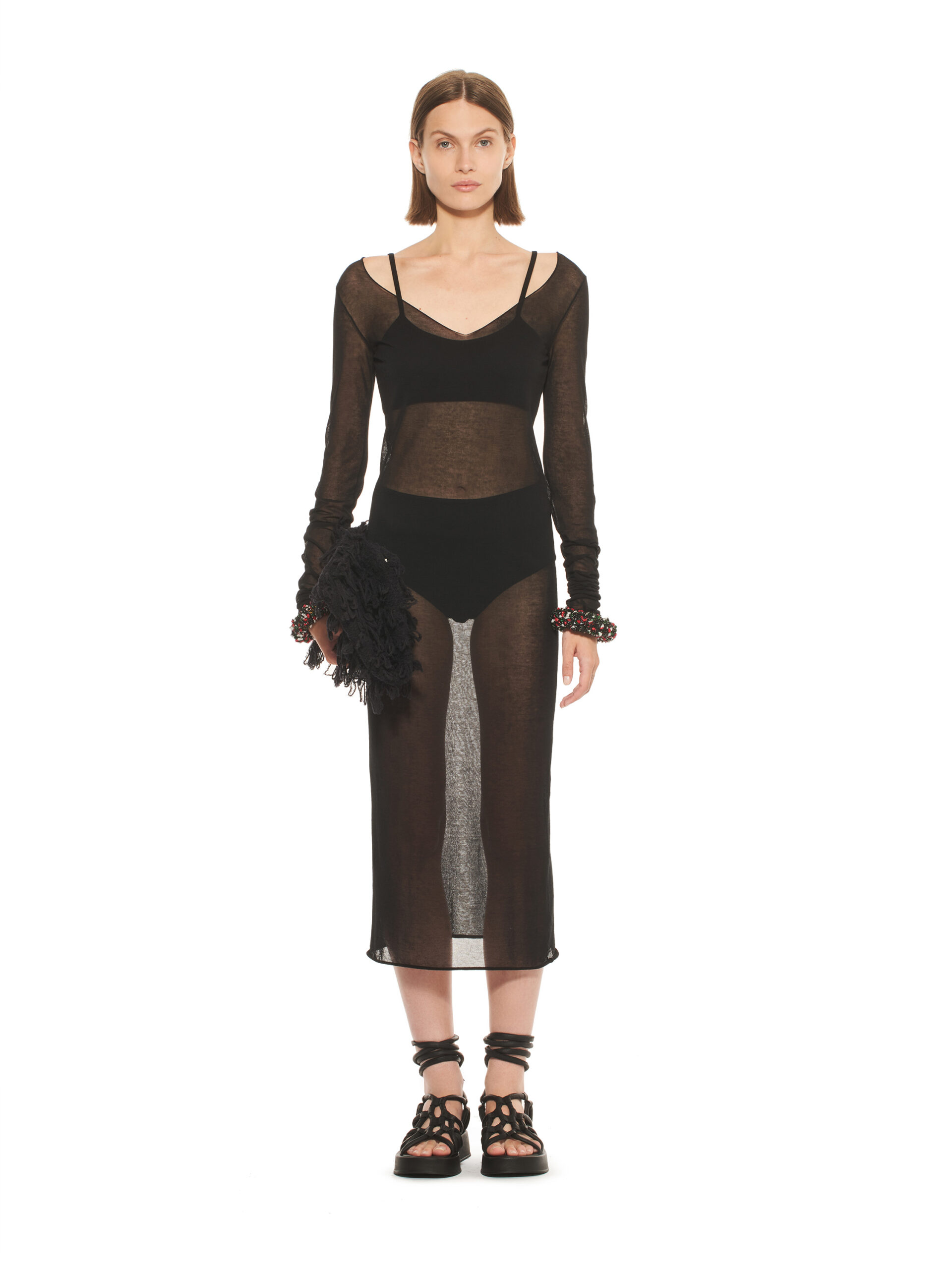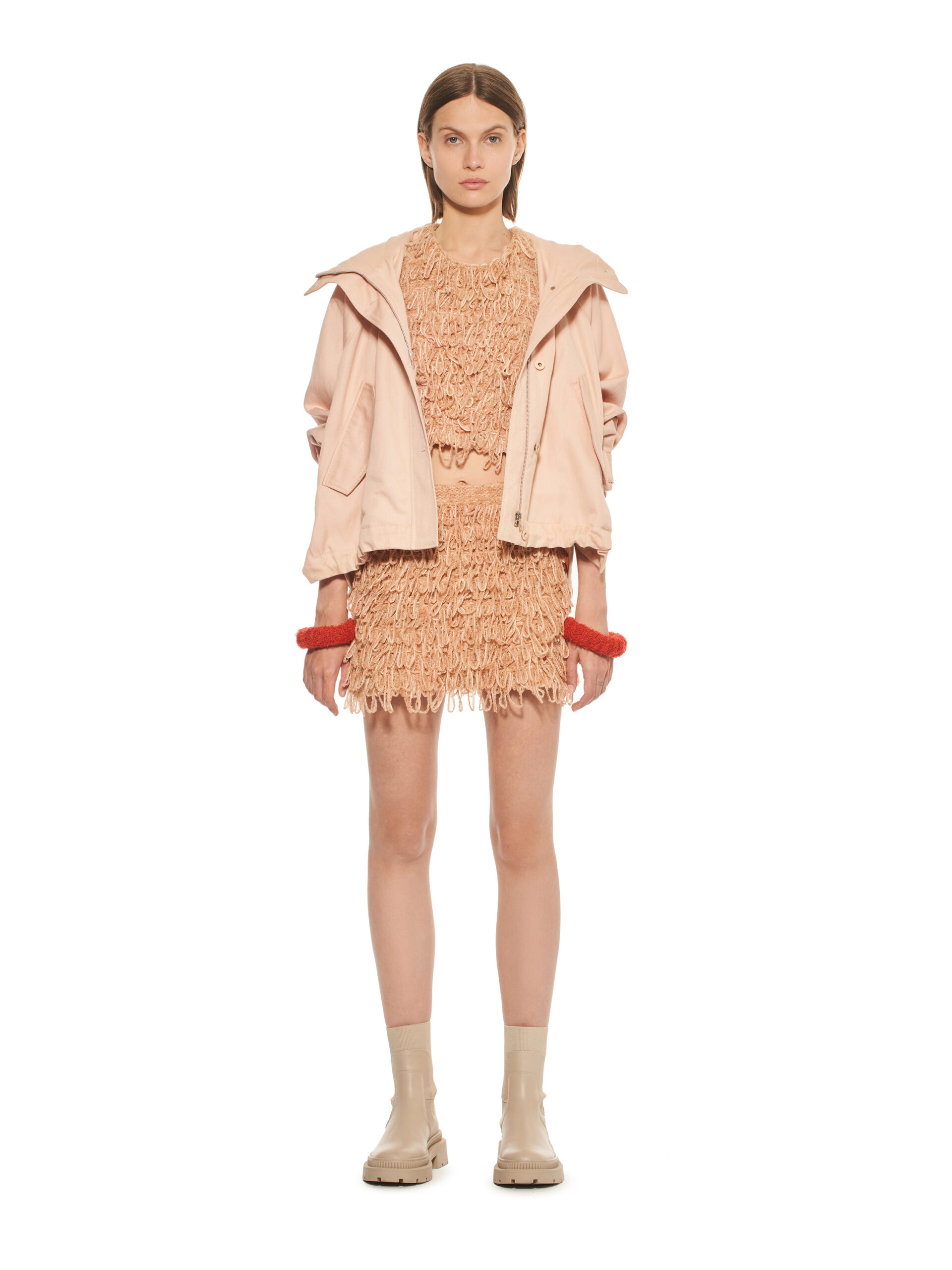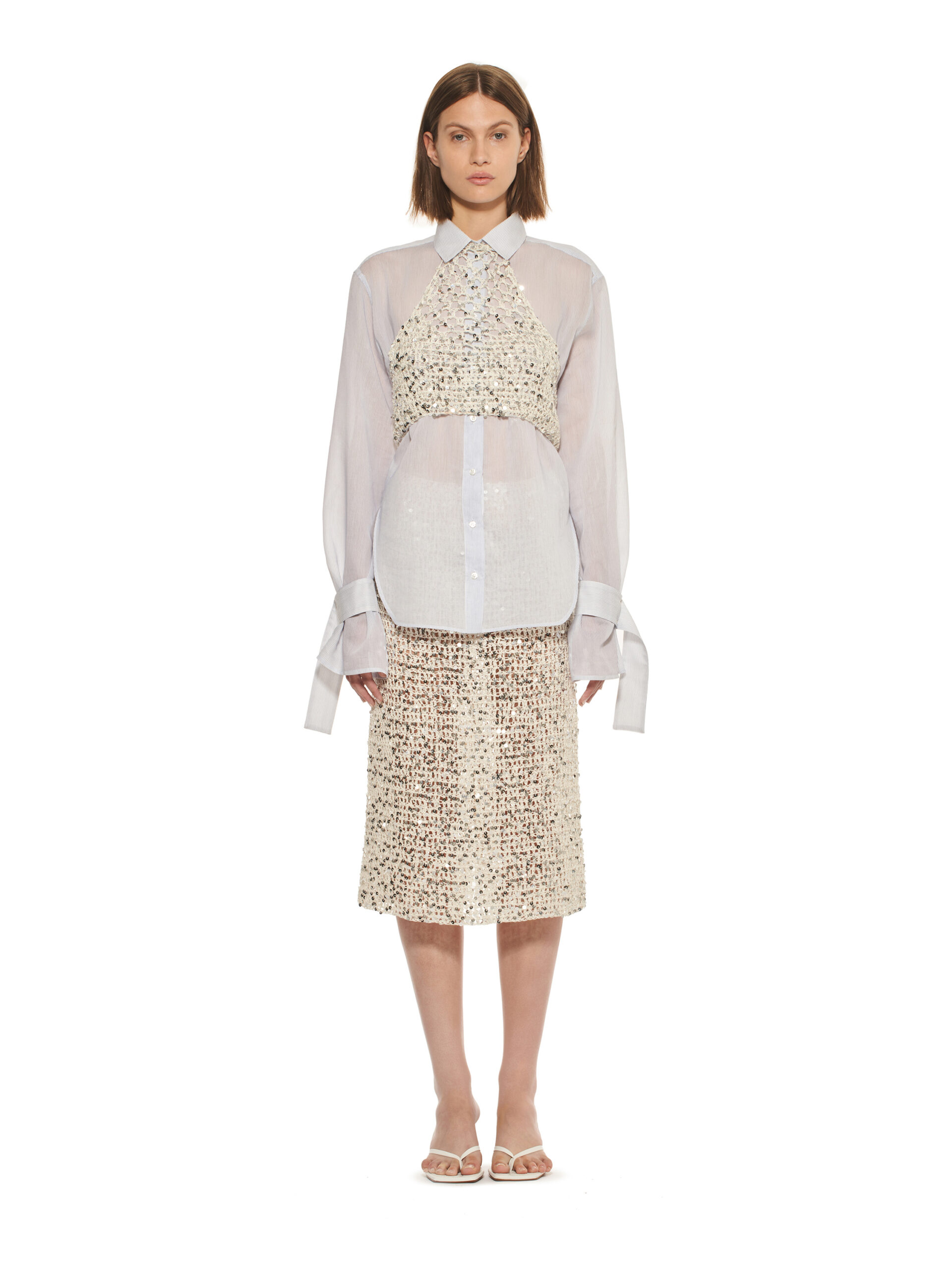 Les robes de la collection glissent sur les corps, offrant légèreté et élégance contemporaine. L’emblématique tailleur en tricot, décliné dans les couleurs de la collection, représente le binôme masculin/féminin de la marque et incarne le style de la femme MRZ. À l’opposé des tailleurs sartoriaux rigides, la collection propose une maille aux aspects matériellement expressifs, interrompant la continuité des surfaces pour créer une tridimensionnalité unique.